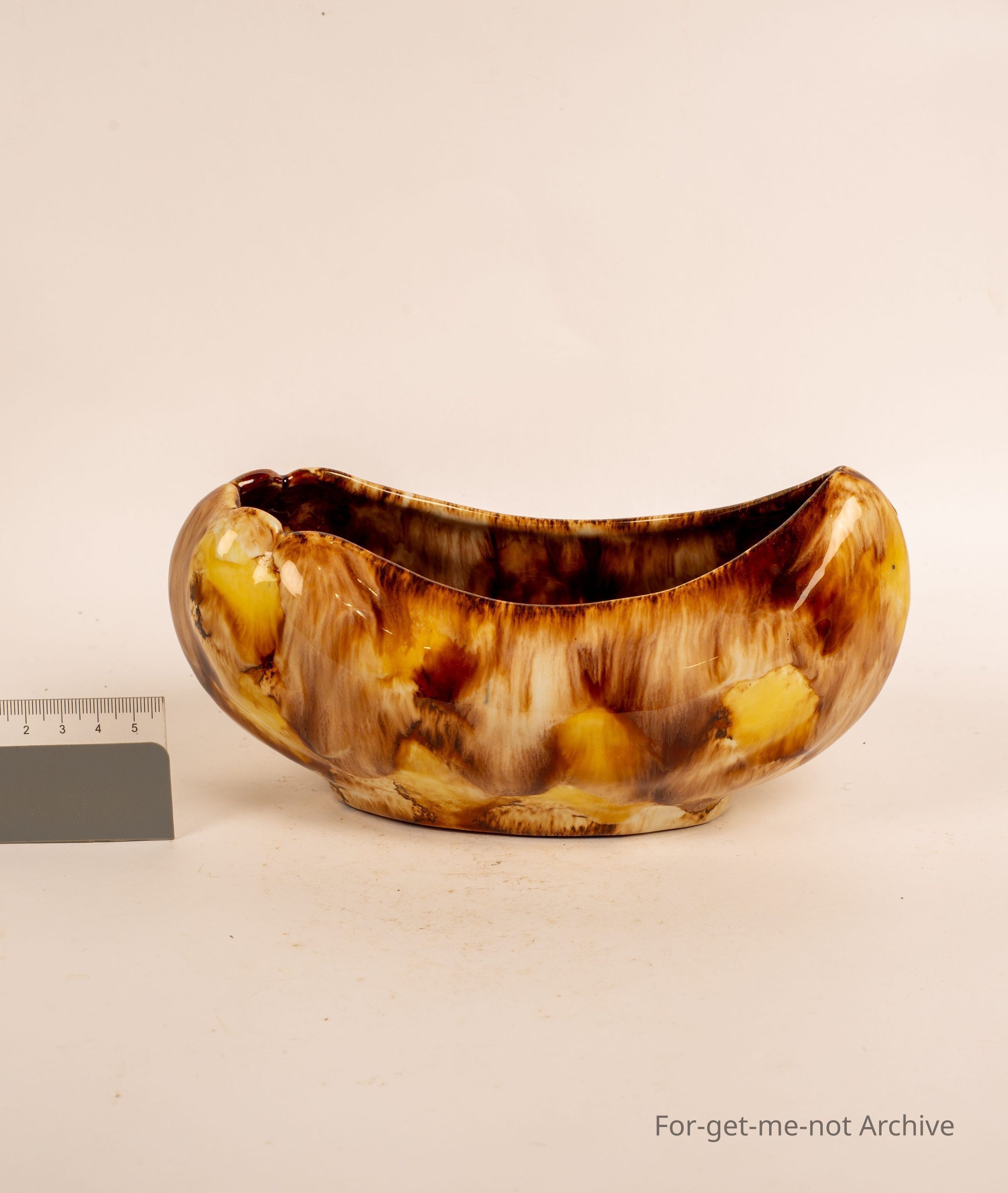 Studio pottery Vase, Boat Shaped, Stamped "A L A " on base. Beautiful grays