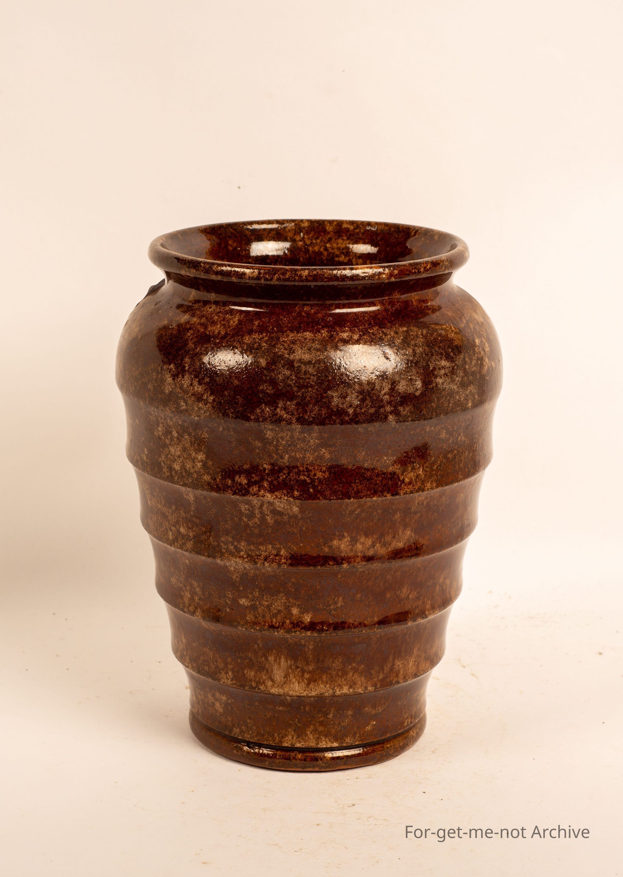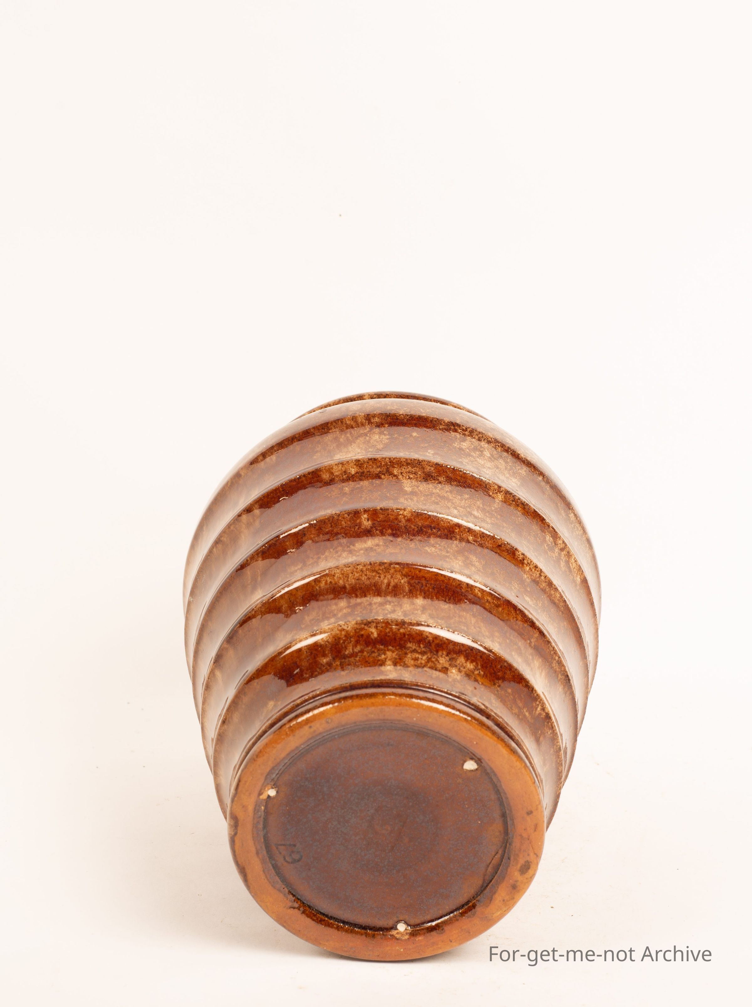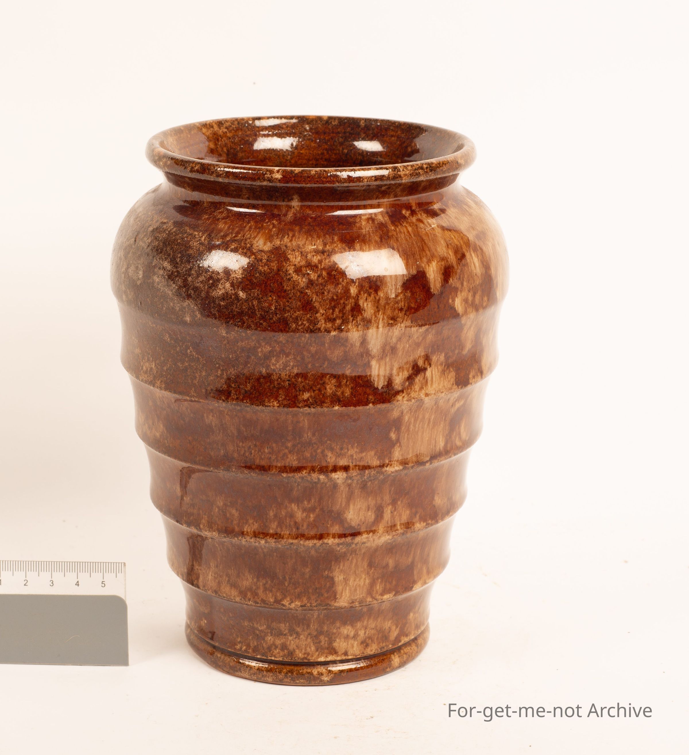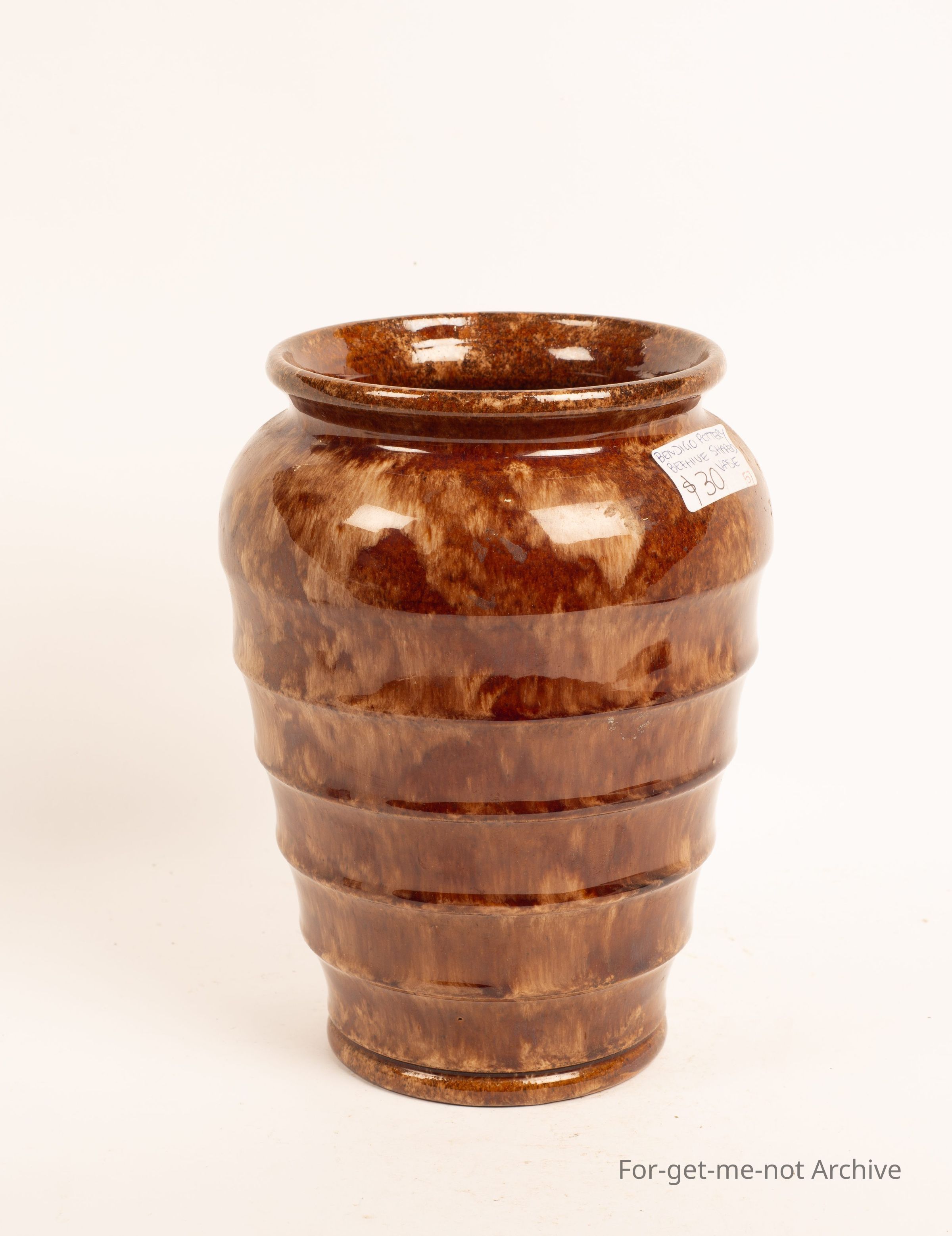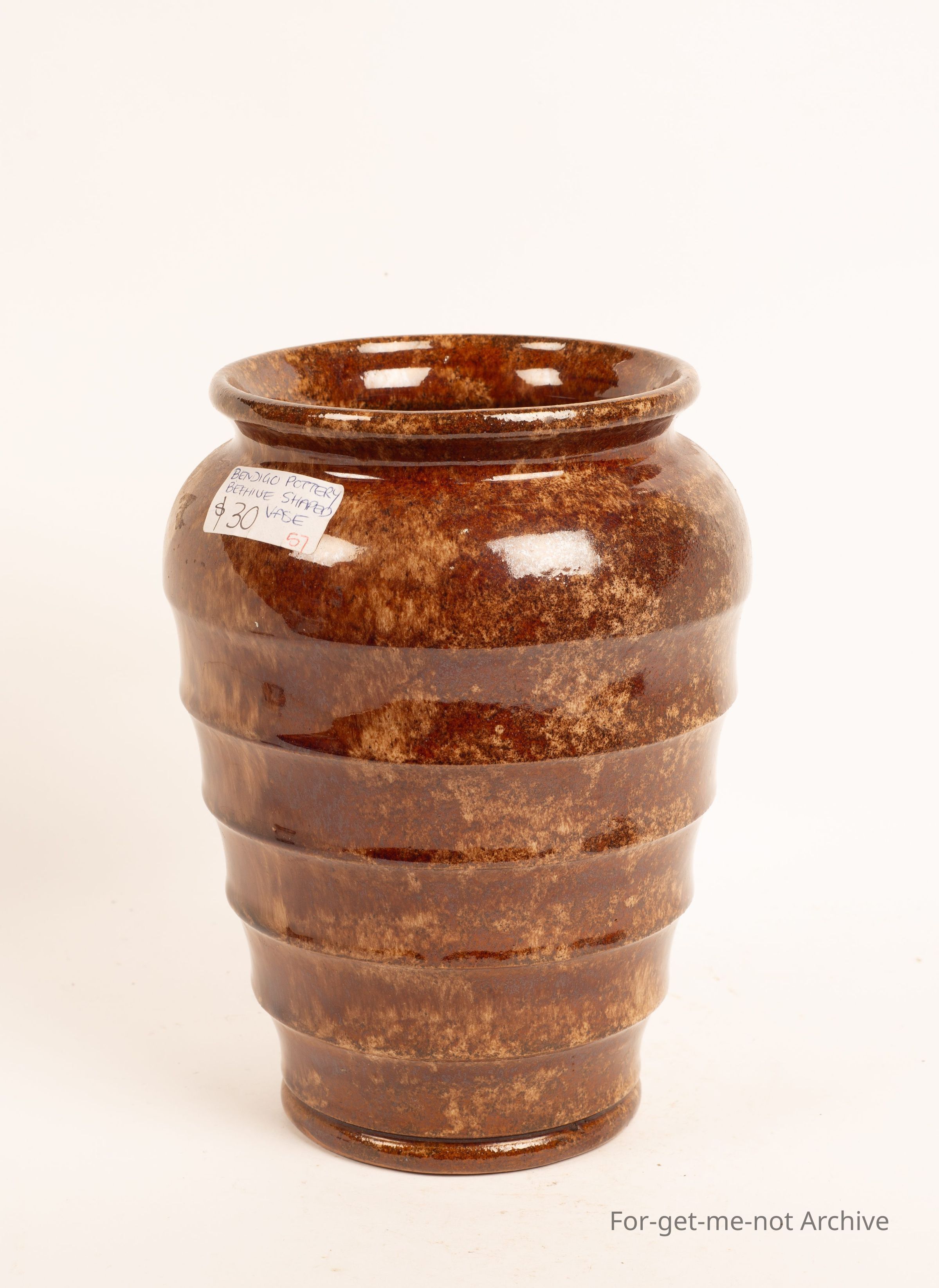 Bendigo Pottery Vase, ribbed to the base, brown glaze.