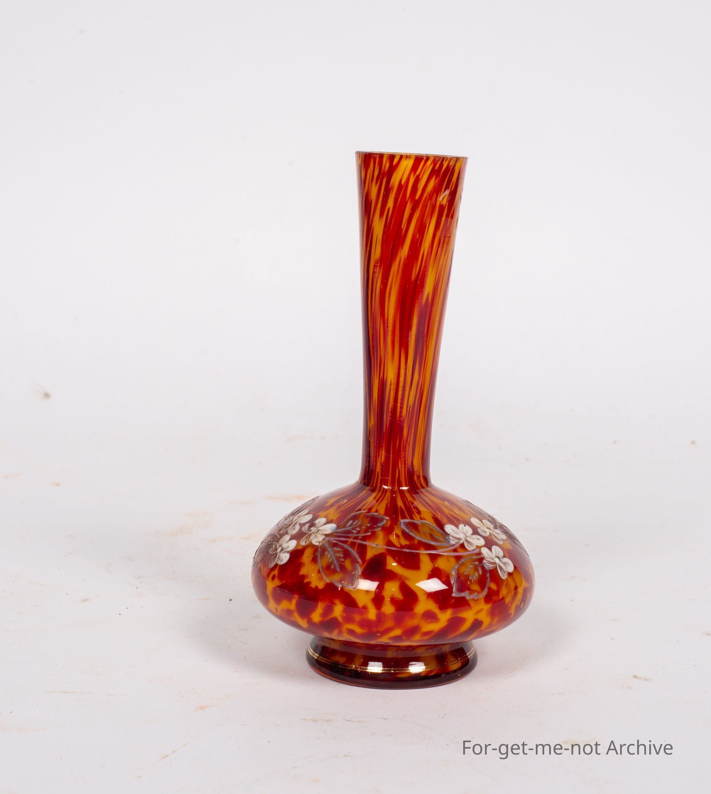 small glass vase, almost like a tortoise shell finish, hand painted, a lovely little decorative specimen,