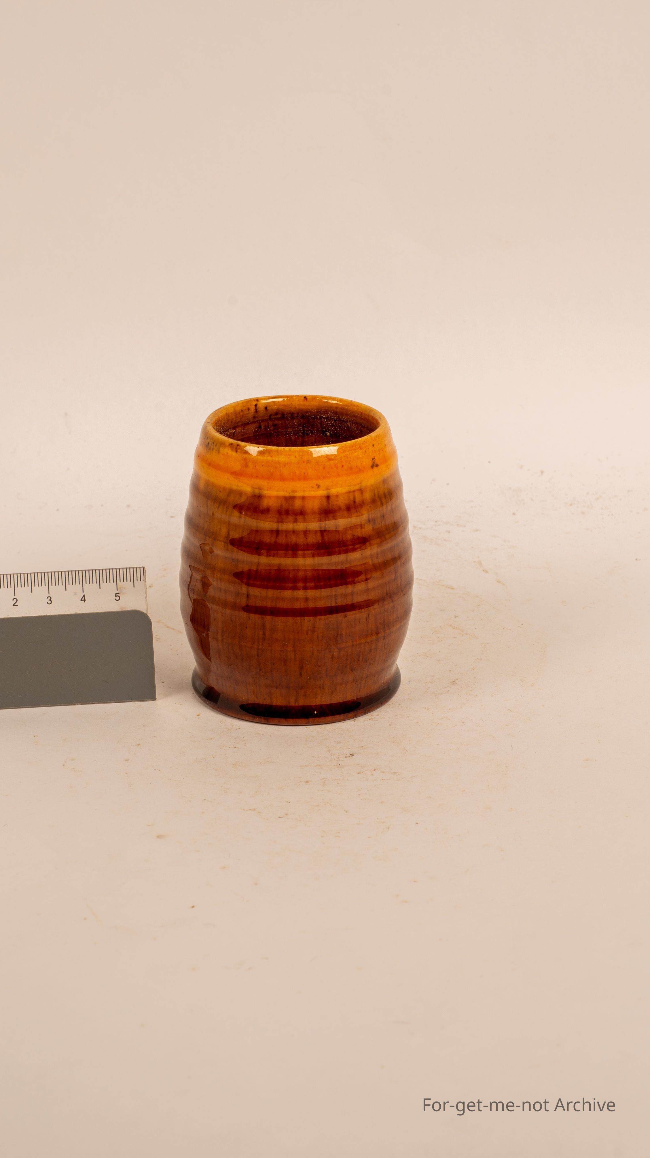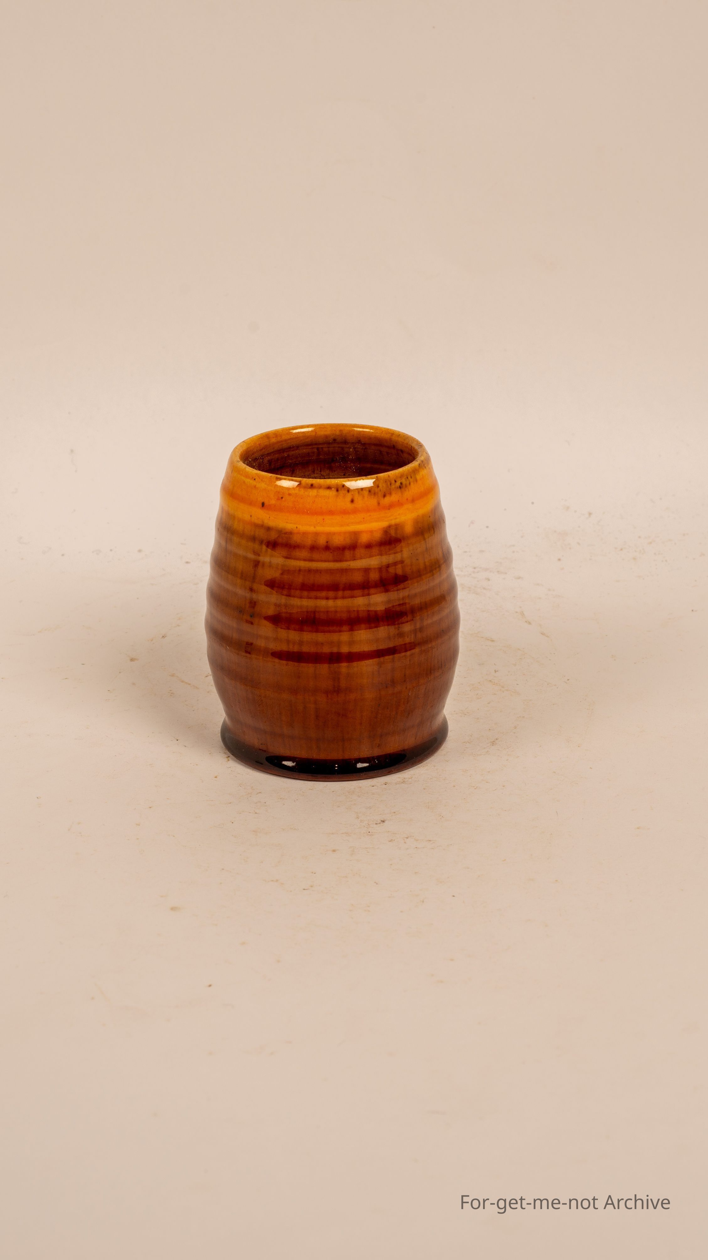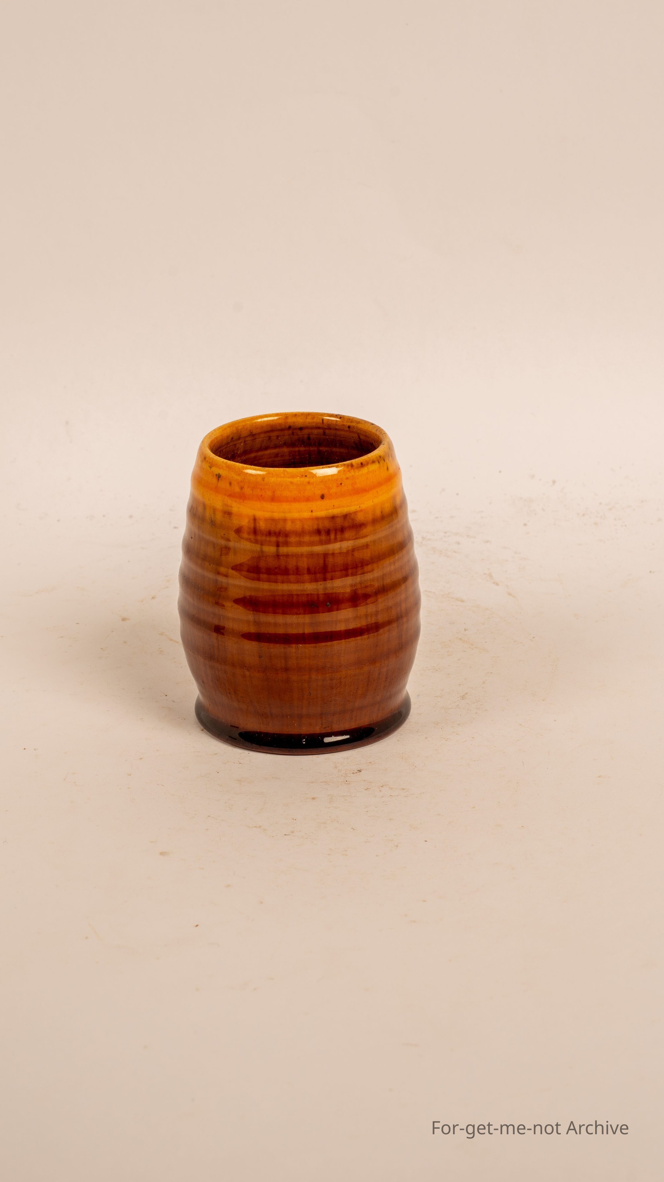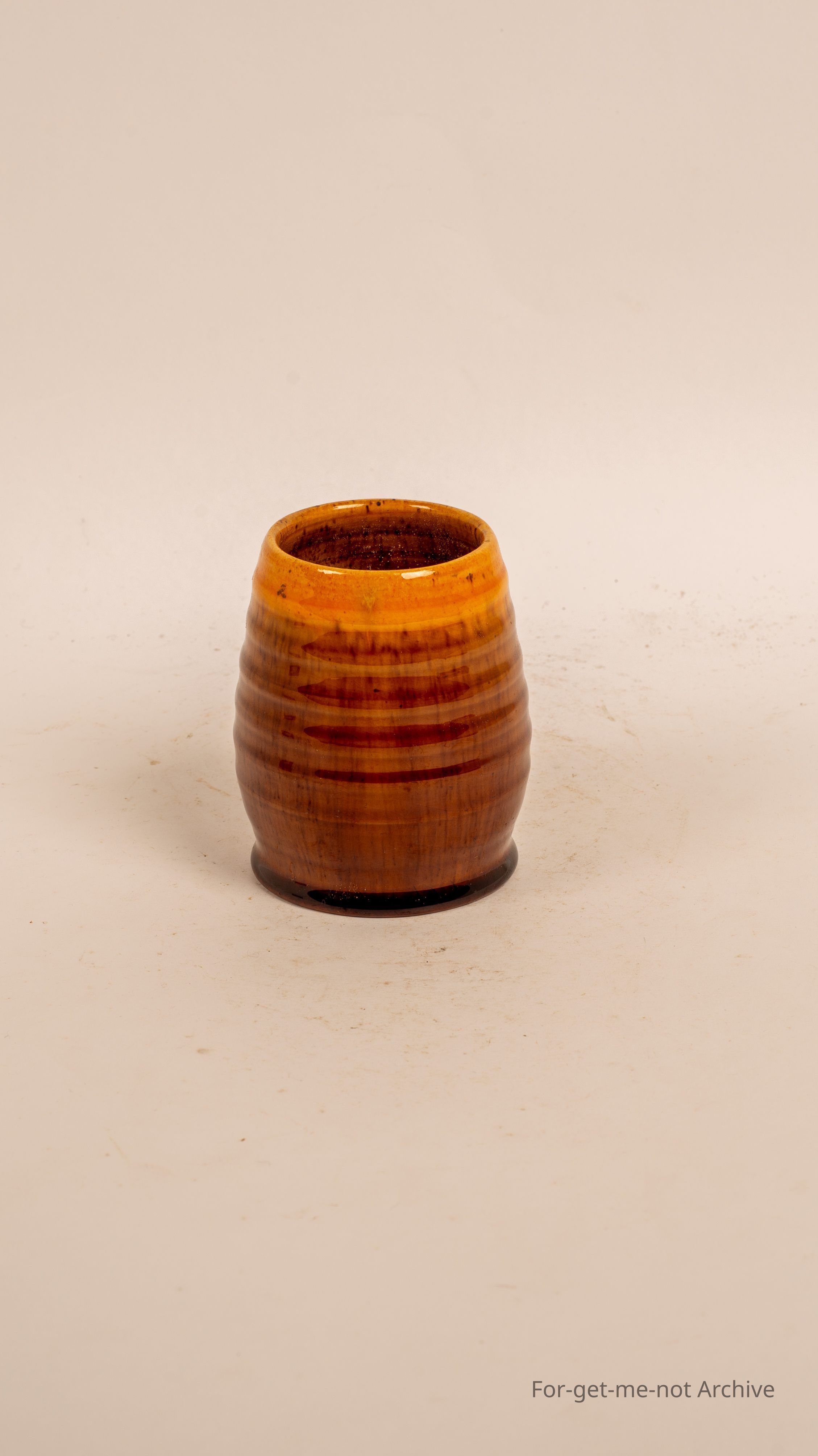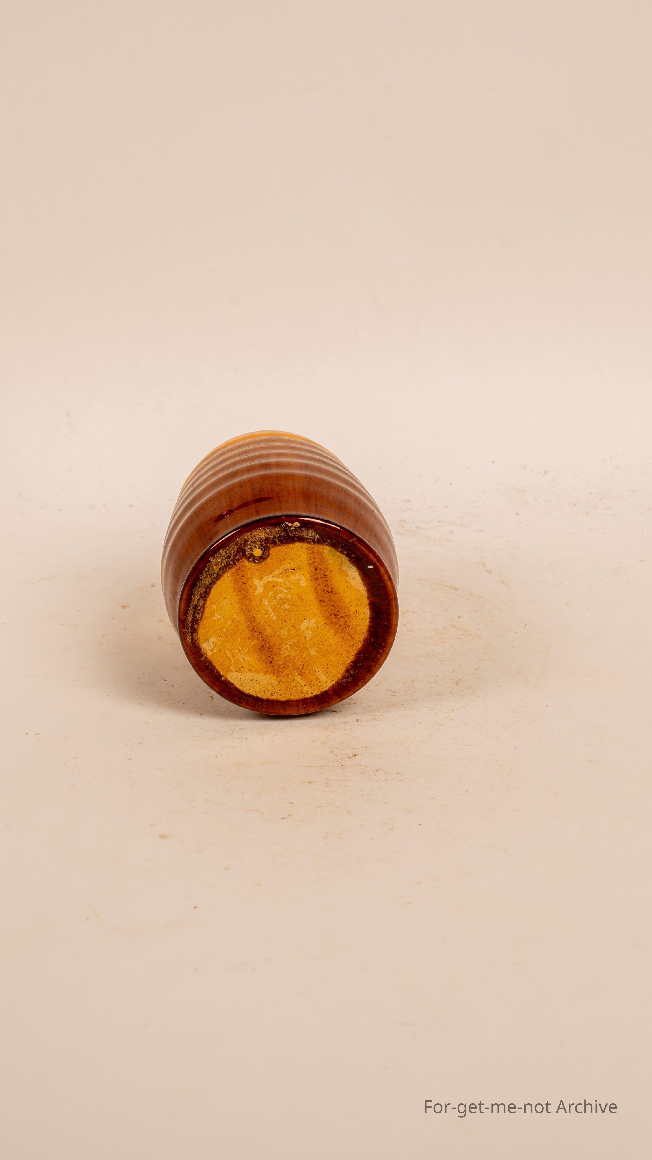 Small vase pot, beautiful glaze, ribbed body, no stamps at all. Could be attributed to Remued.