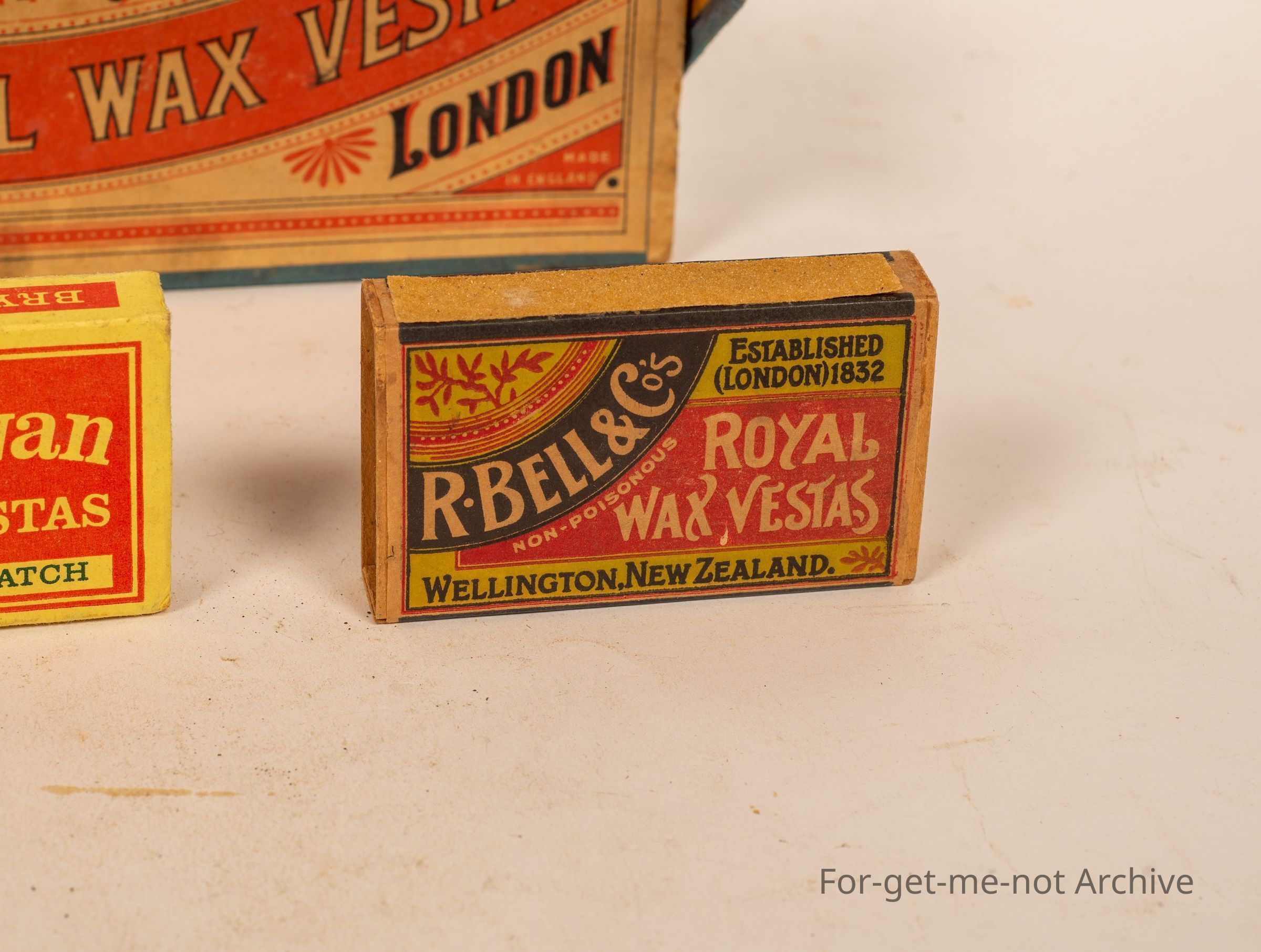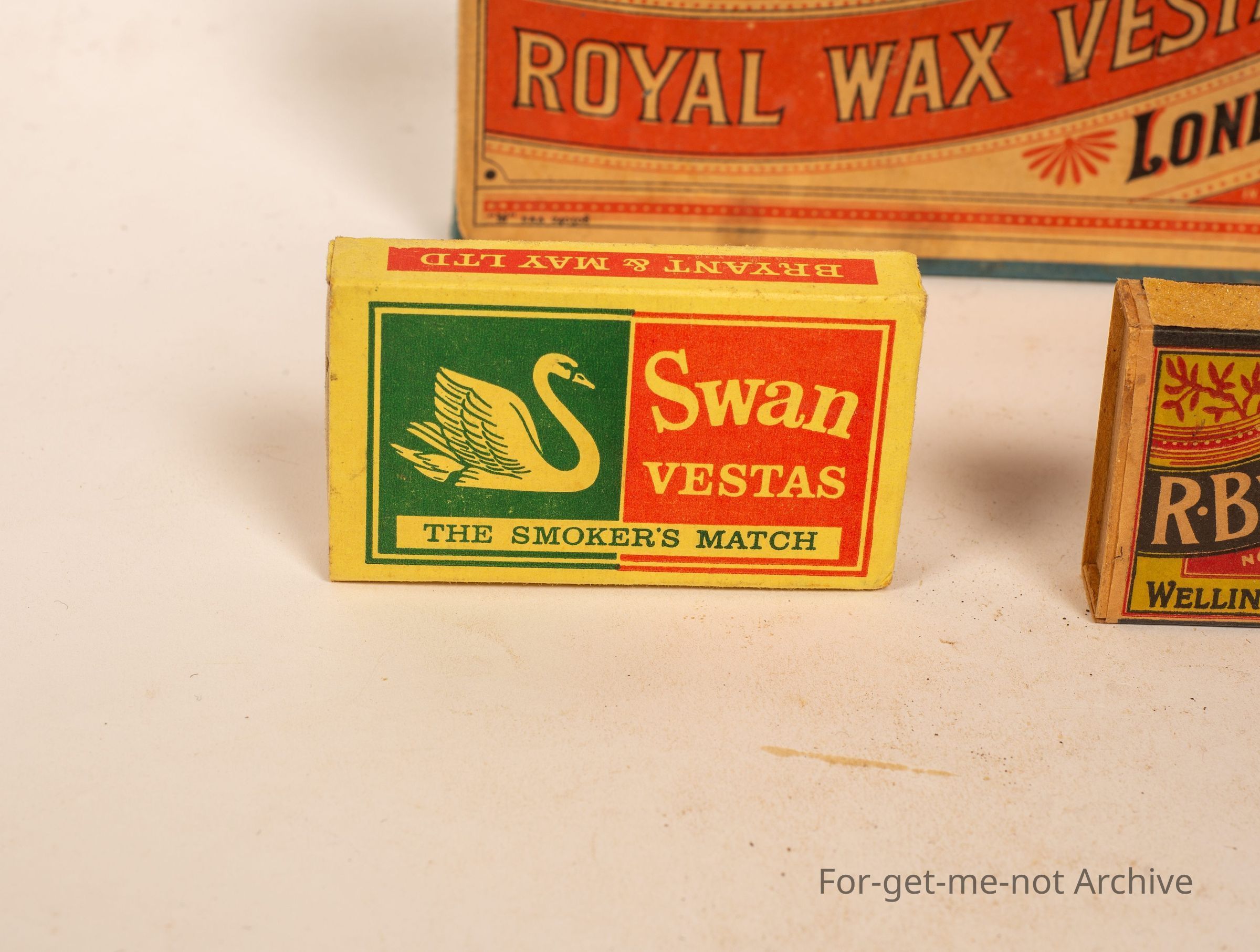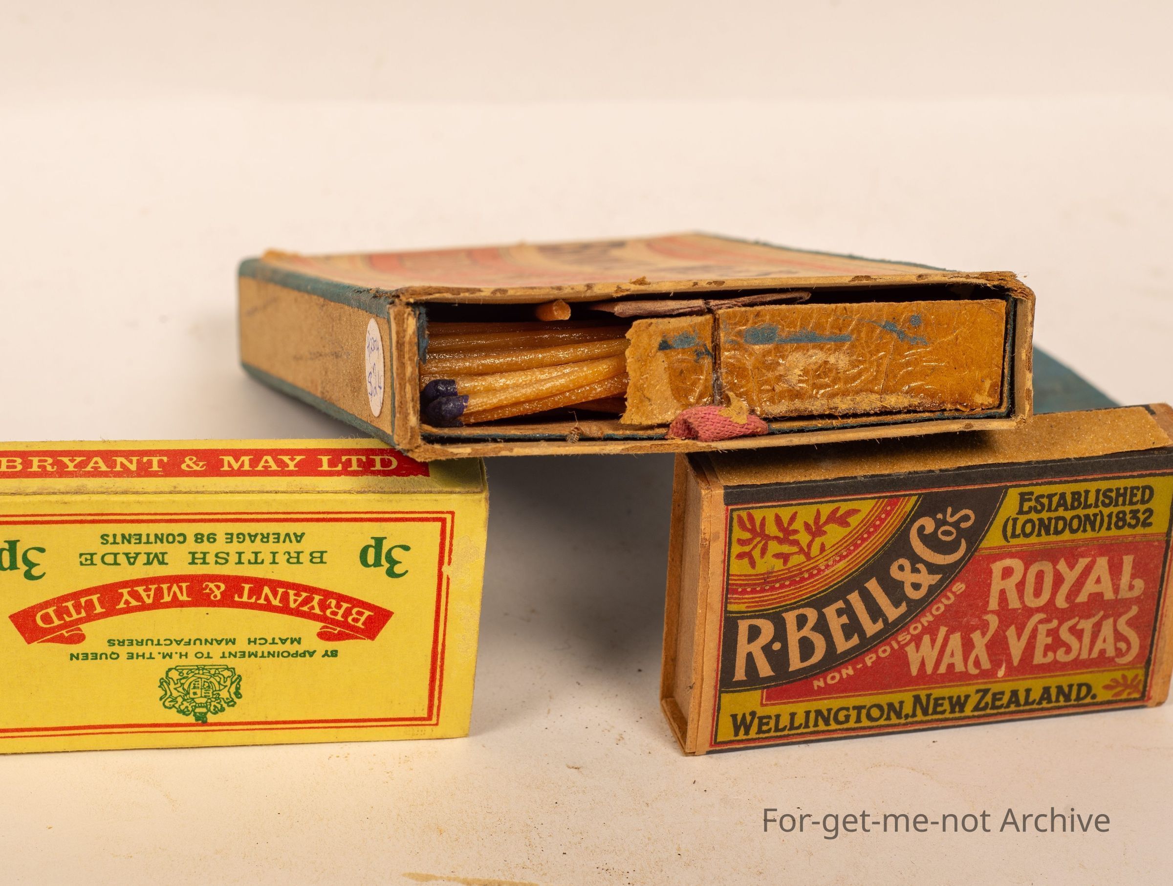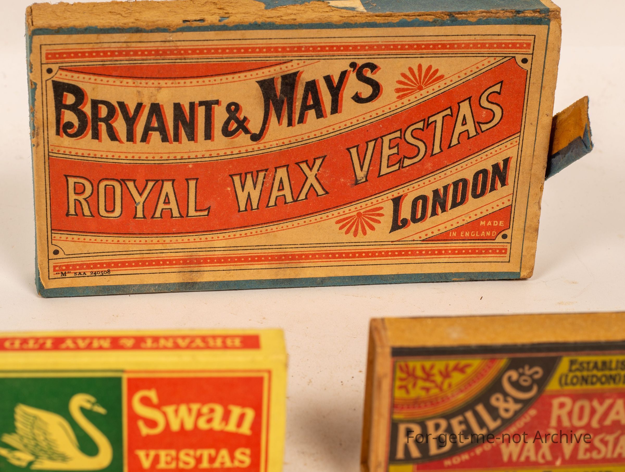 Three boxes of, Vestas. 1 Bryant and May, 2. Royal Wax Vestas London. Bryant and May, 3. Bells Royal Wax Vestas.