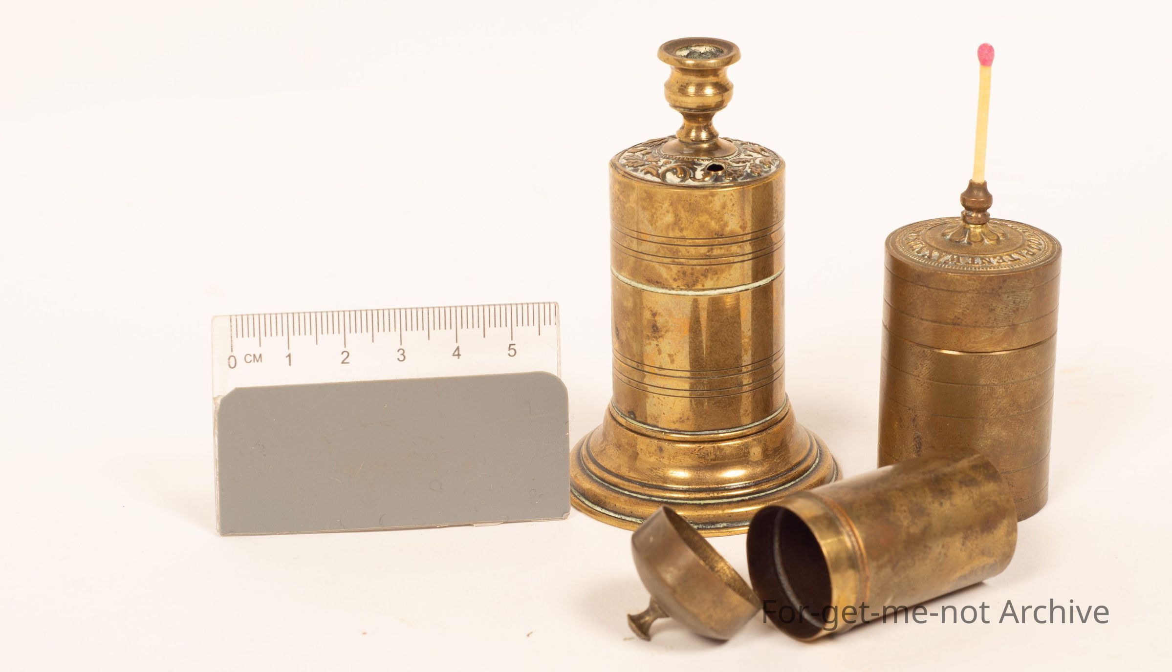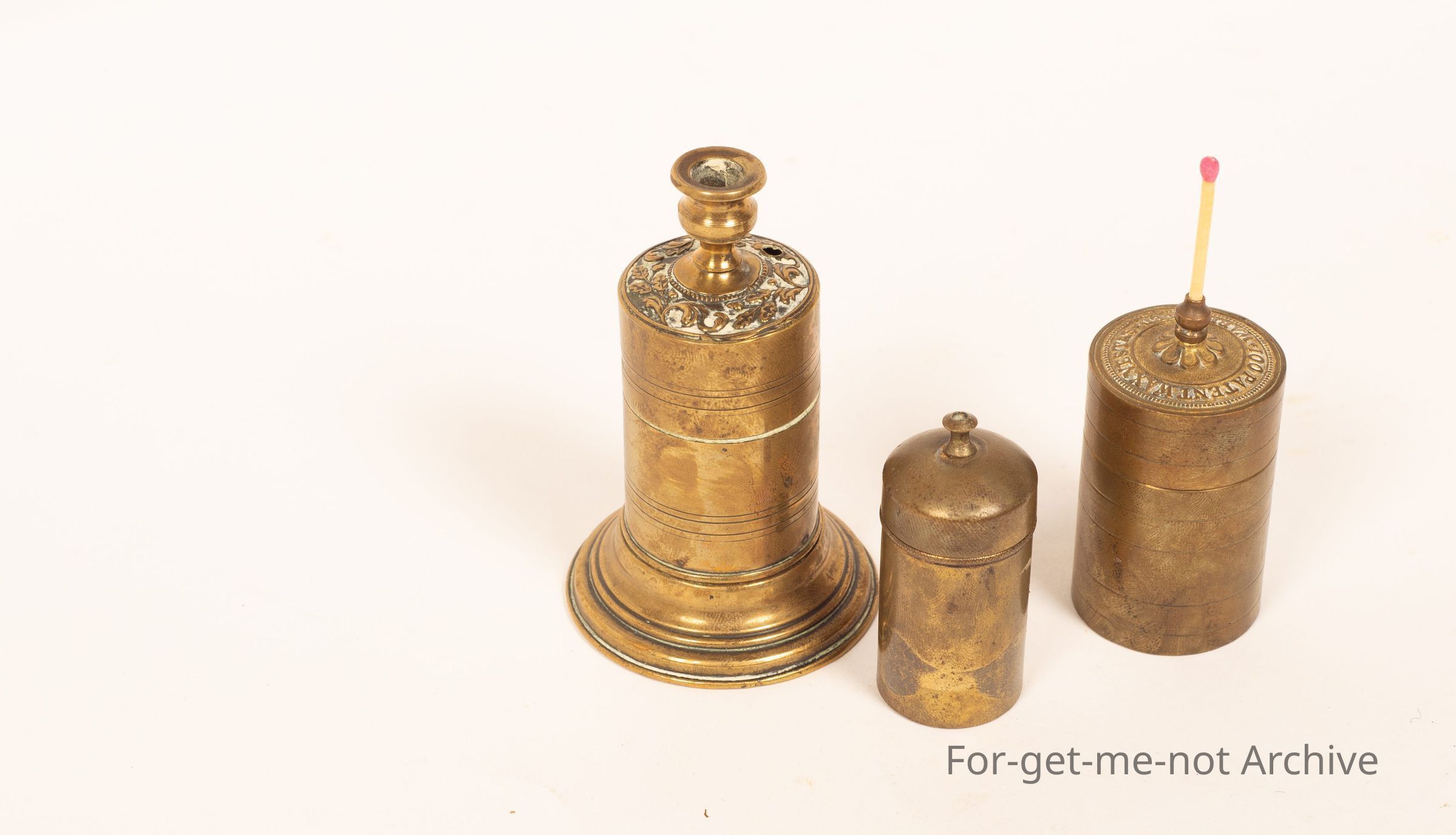 A group of 3 brass vista holders with the fitting to put a match in for getting into bed lights.