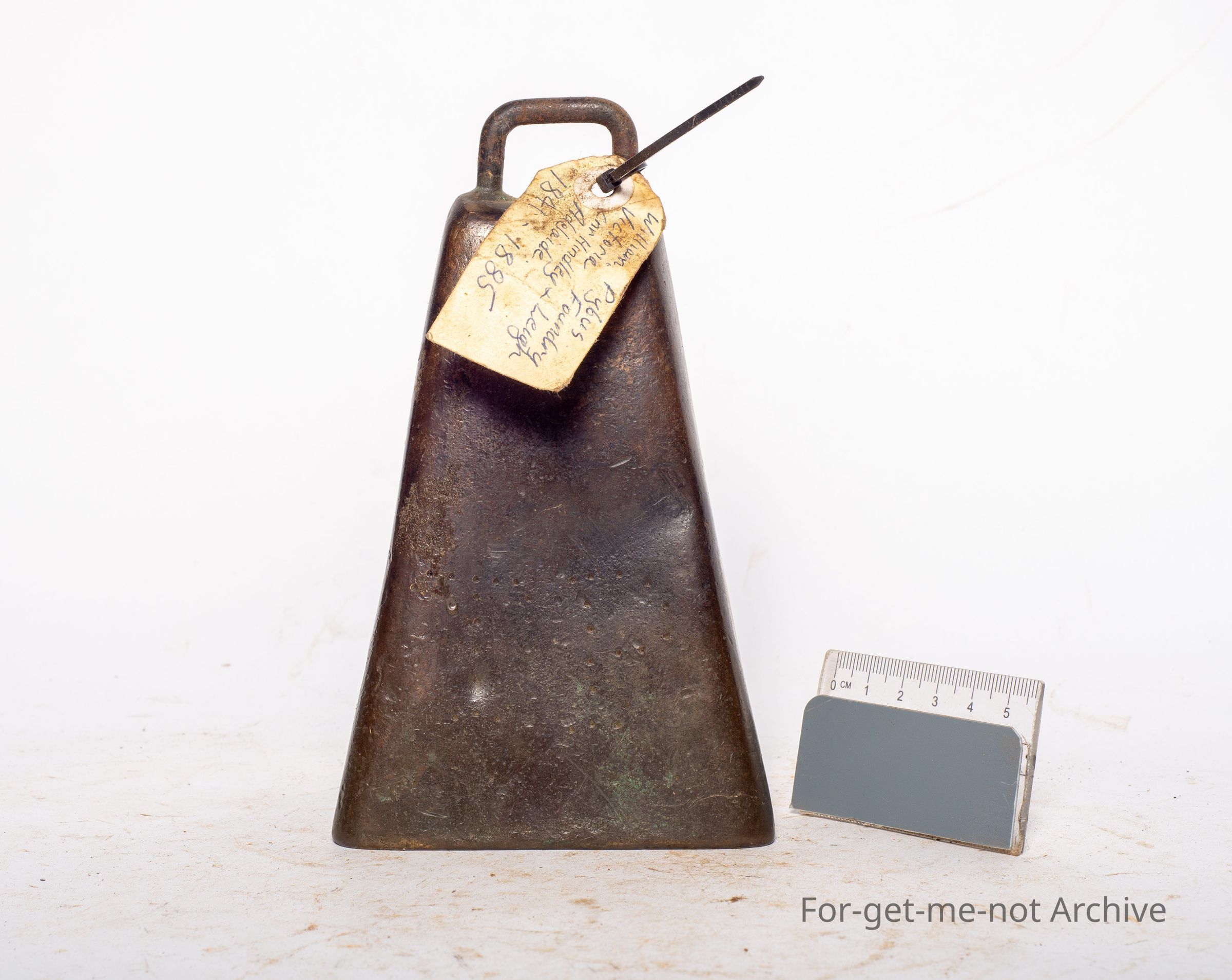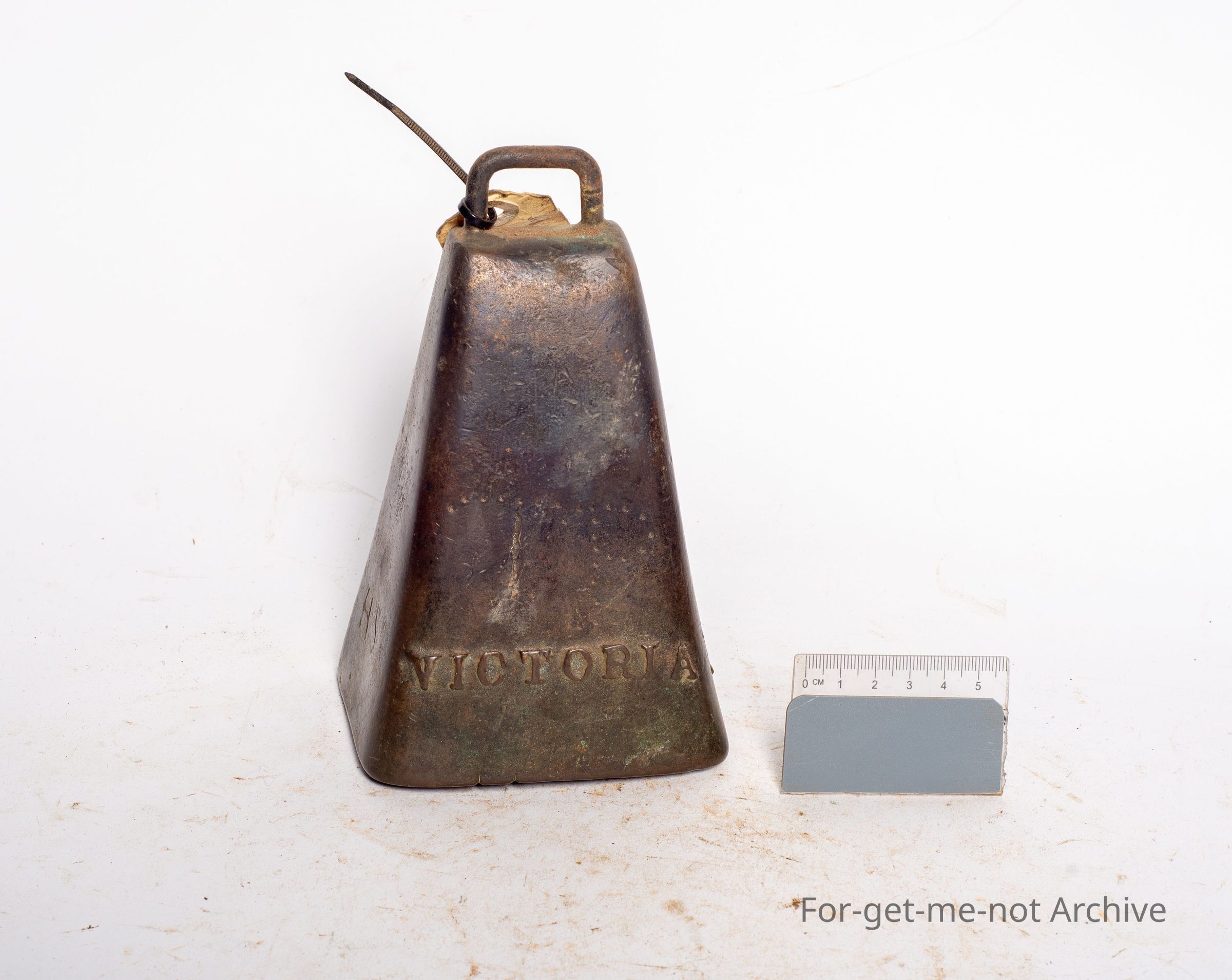 This is a very tall, slender, cast brass bell embossed with Victoria. This is another possibility that it is from the Victoria Foundry Adelaide. The William Pybus stamp was changed to Victoria Foundry when, Pybus' son took over the business. These Victoria bells are very hard to find. This is a beautiful example.Collection