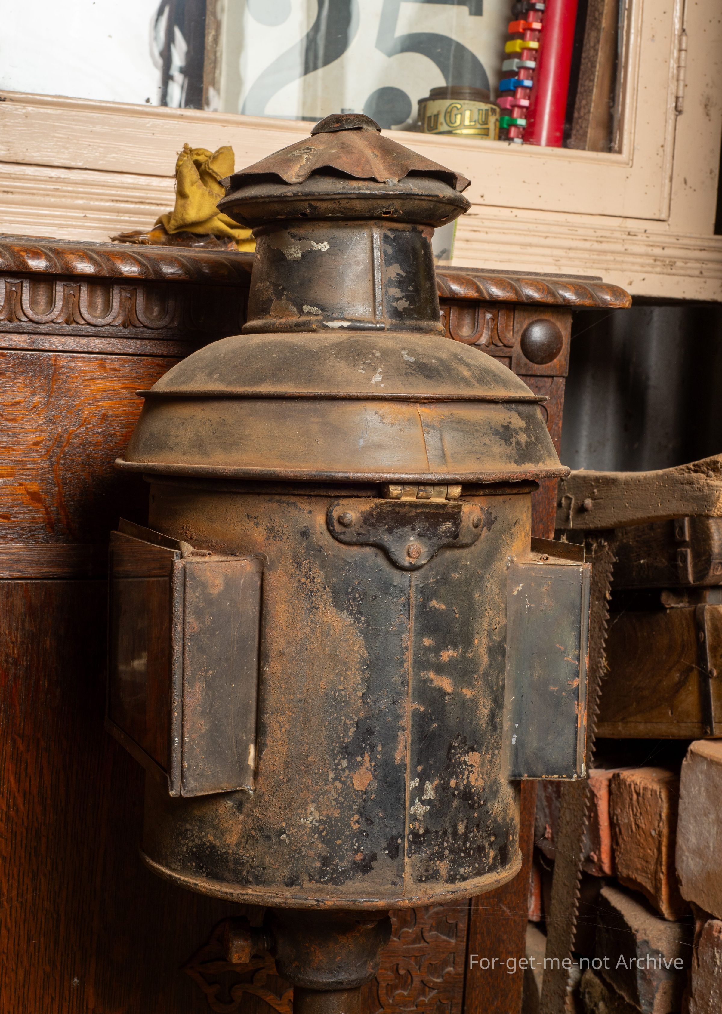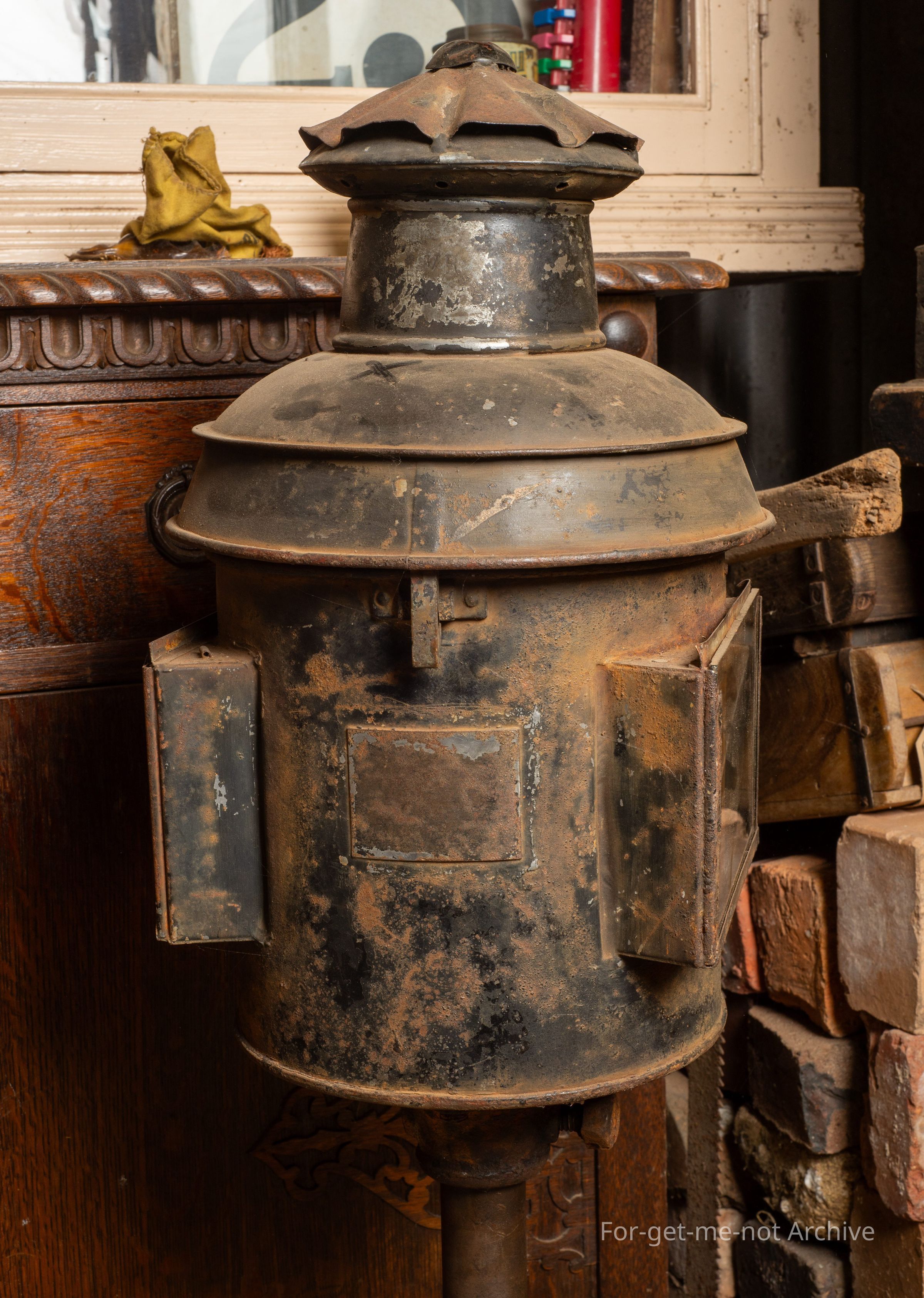 This is a very early, Victorian railways light. These were normally enclosed in a box so that the signalling from the coloured glass plates could be varied. This one is all complete with the burner and everything minus the box.Collection