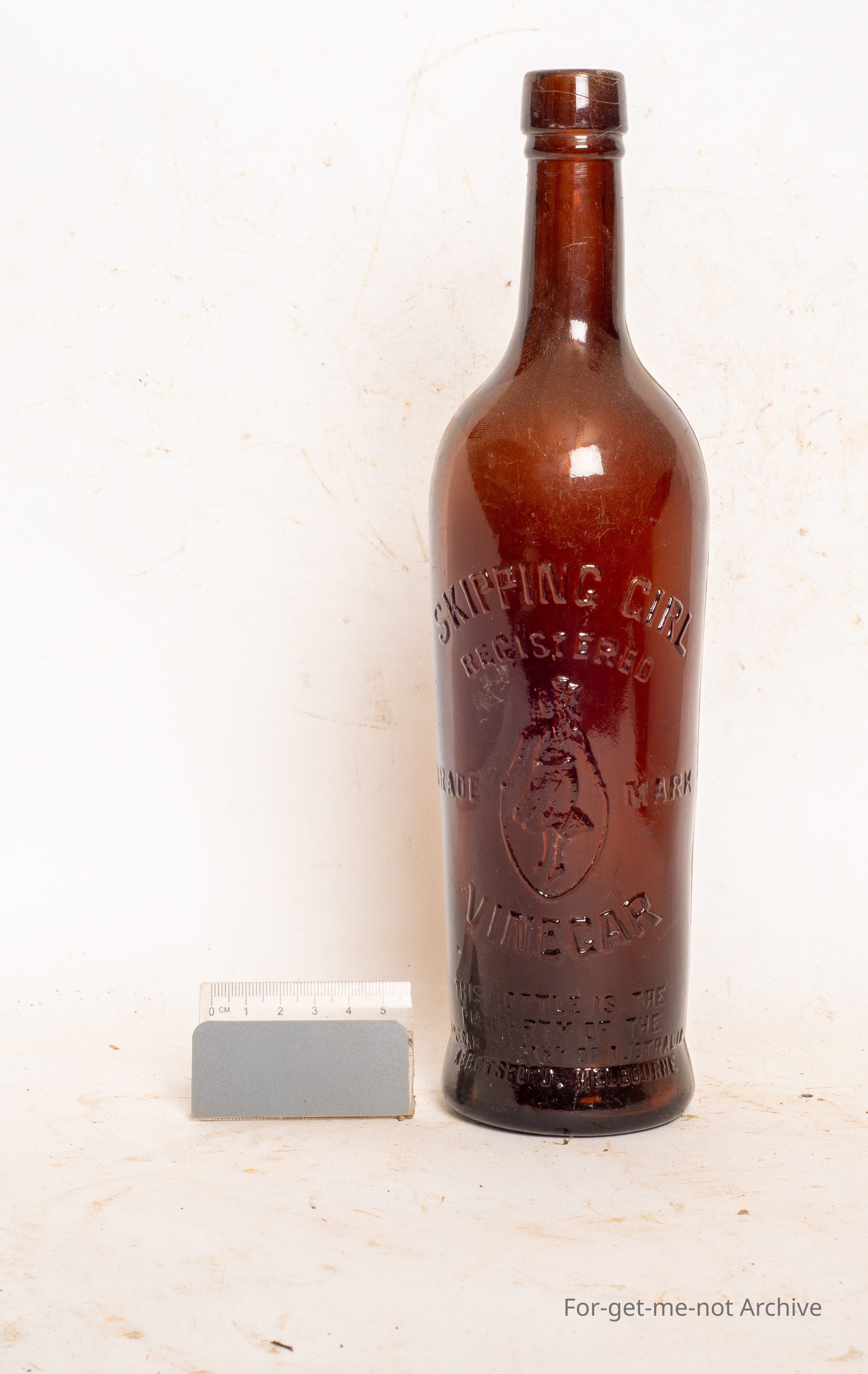 This is a brown skipping girl, vinegar bottle with the image of the girl and the skipping rope in good condition. This is the brown bottle.