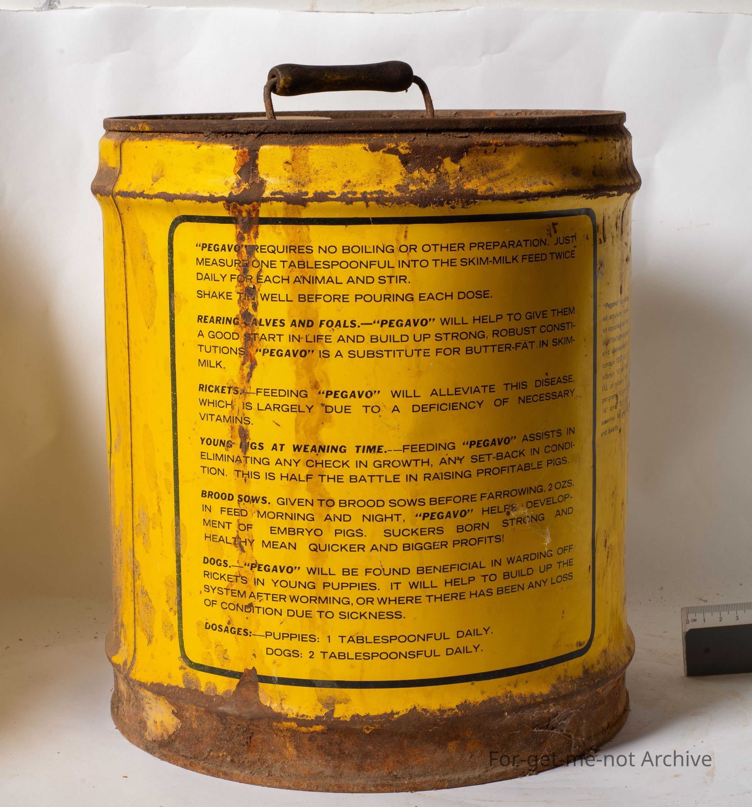 This is a vitaminic compound called Pegavo for sheep, cattle and horses. Made in Australia by Drug houses of Australia. This is a 4 gallon drum.
