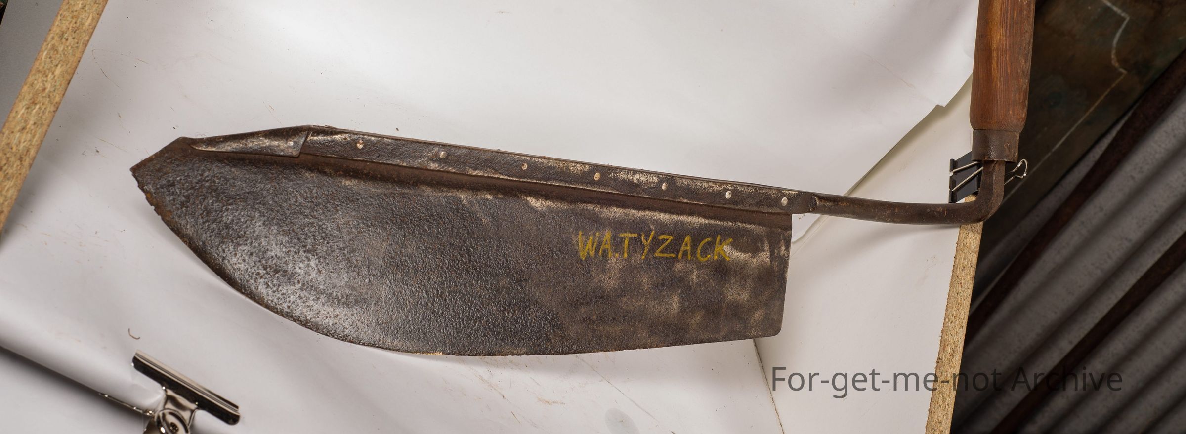 This is another hay knife. This time stamp Tyzac Sheffield. Not a common stamping to find Tyzac. Once again, in very good condition. Wooden handle.