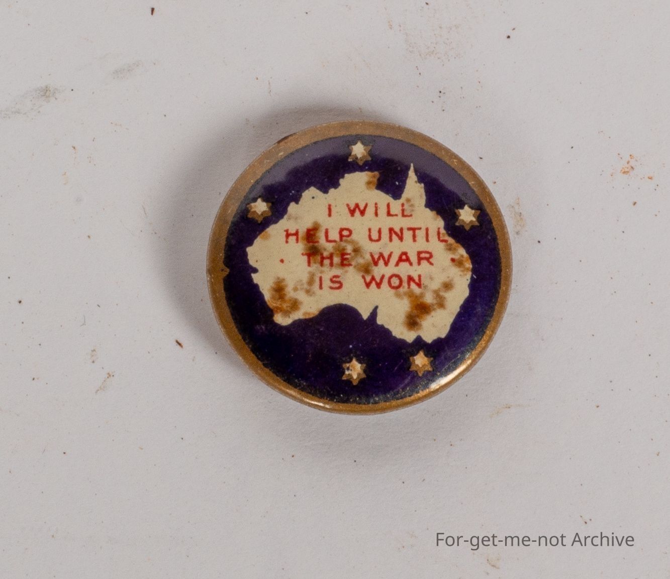 "I will help until the war is won" celluloid badge