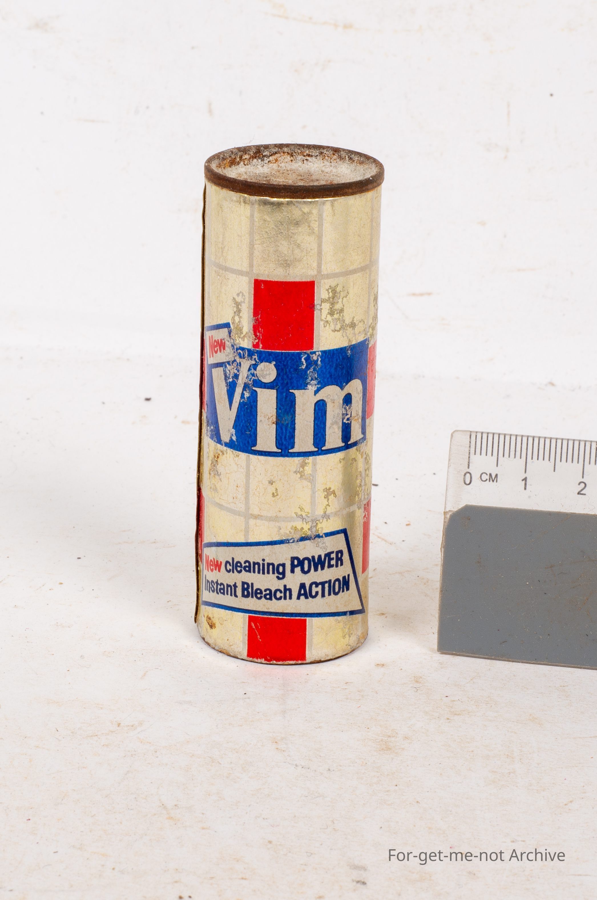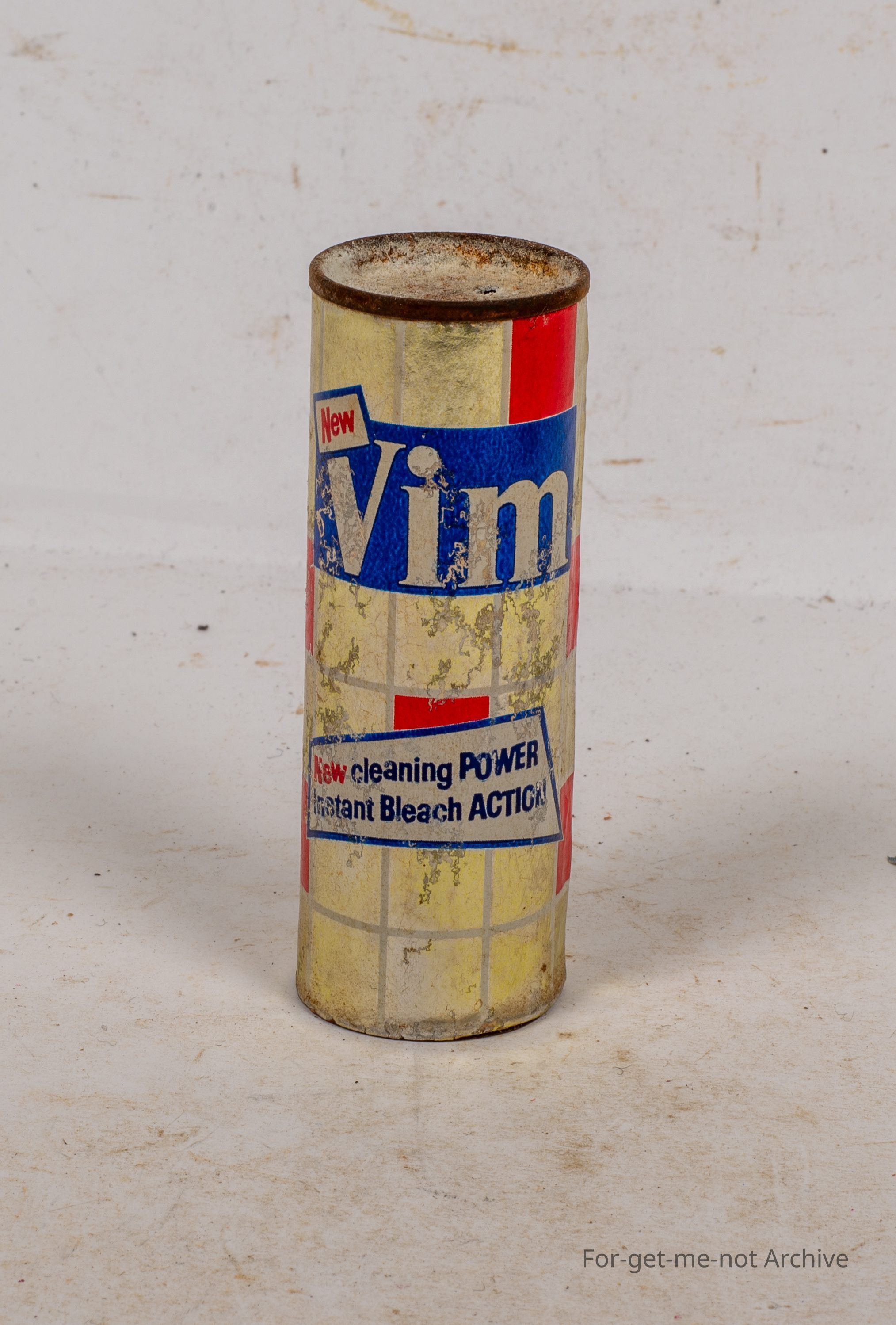 Is a small sample tin of VIM, washing powder, cleaning powder, instant bleach. Pretty good nick, probably pretty scarce.