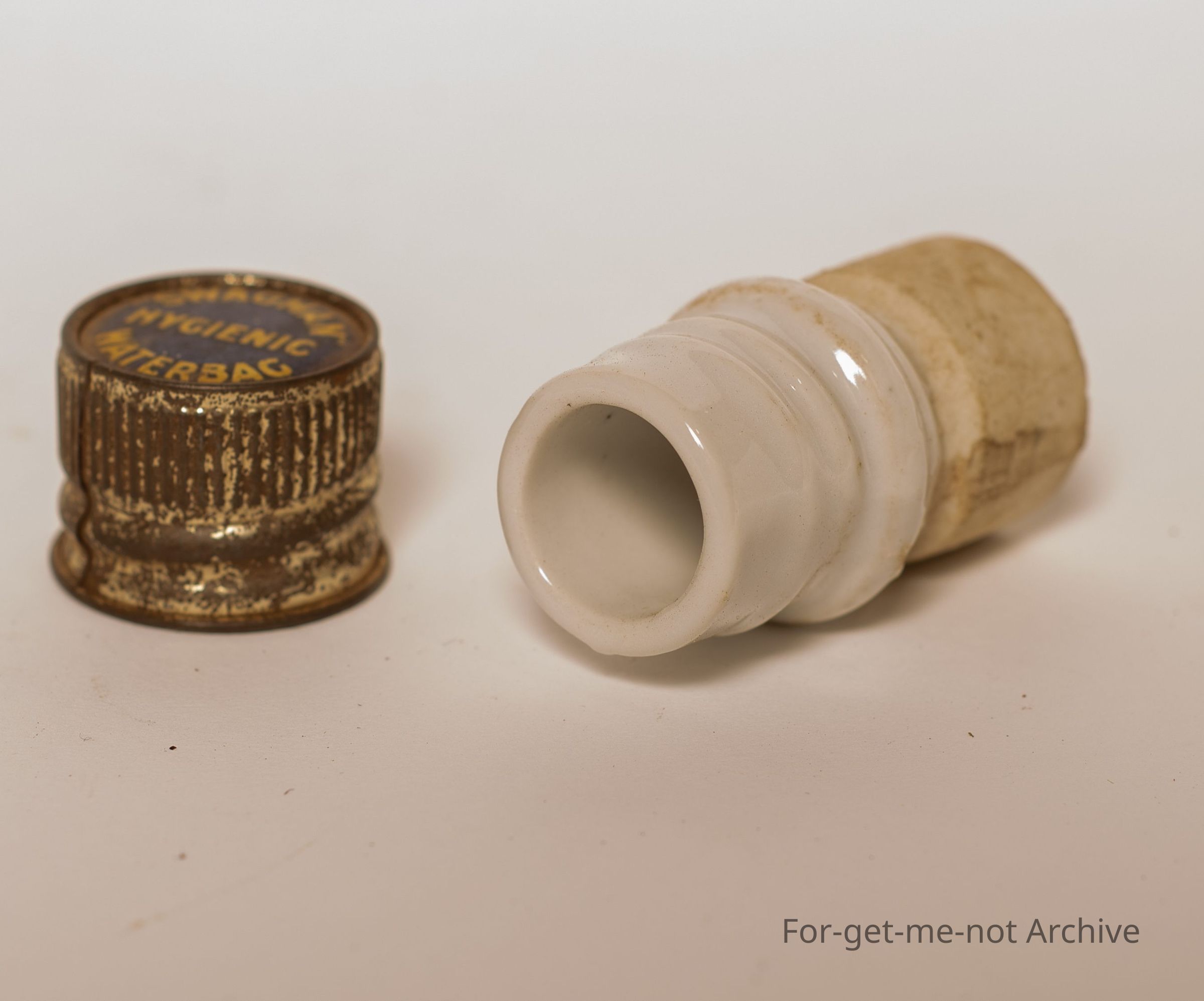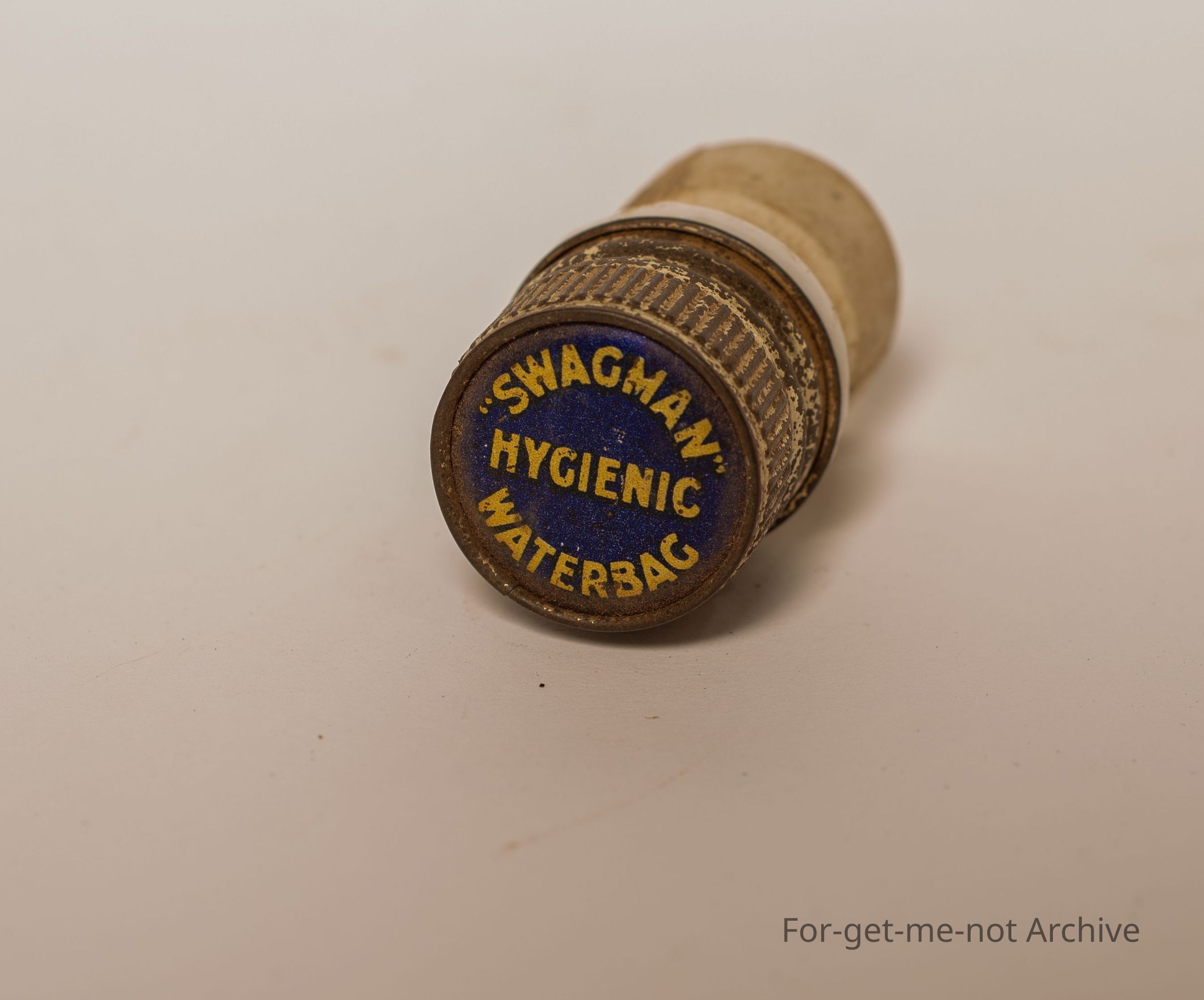 Is the ceramic neck from a canvas water bag. The lid advertising Swagman hygienic water bag.