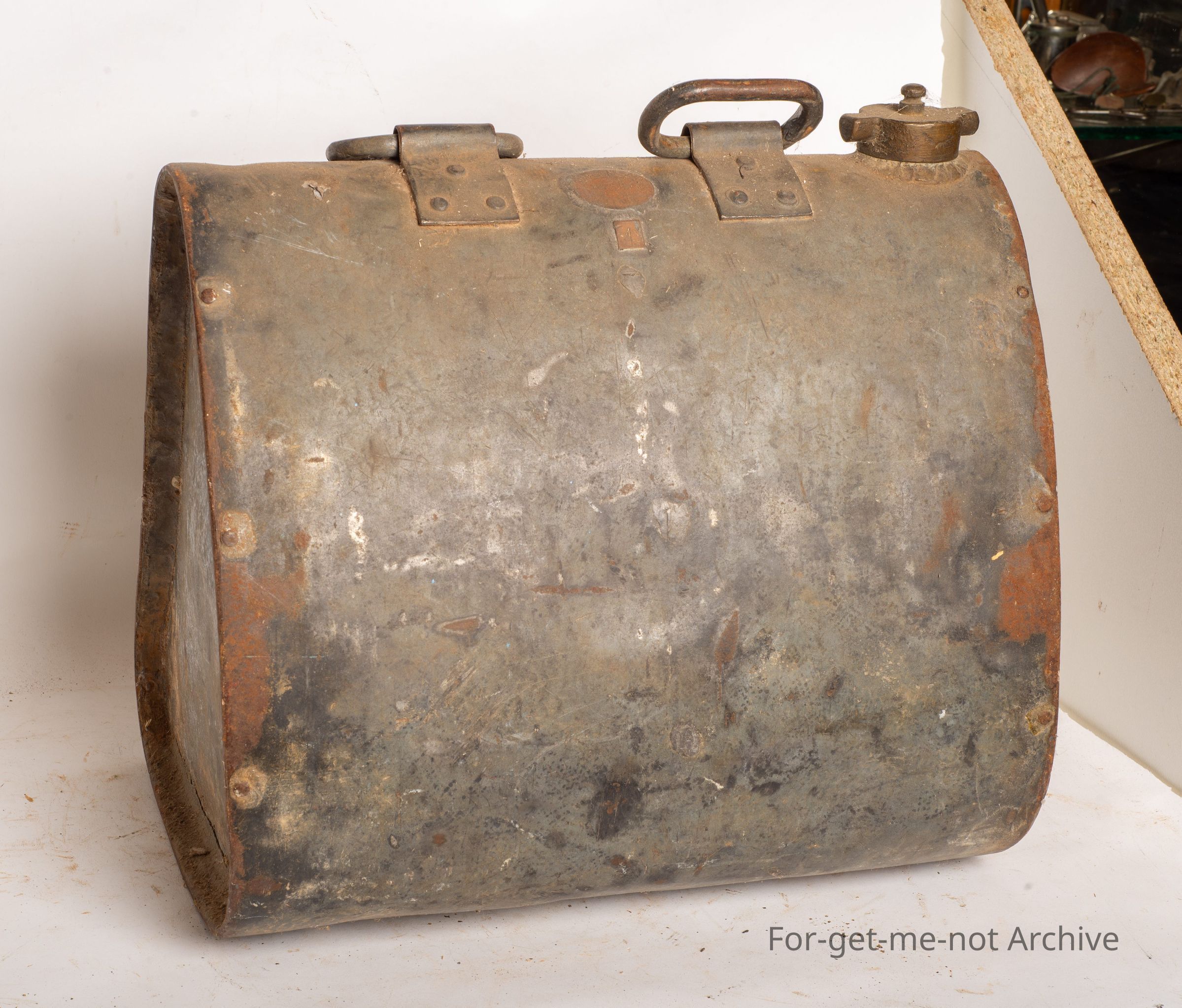 This is another horse water canteen, one of a pair that would have been on a packed saddle. This is a relatively small 4 gallon capacity. Very good order.