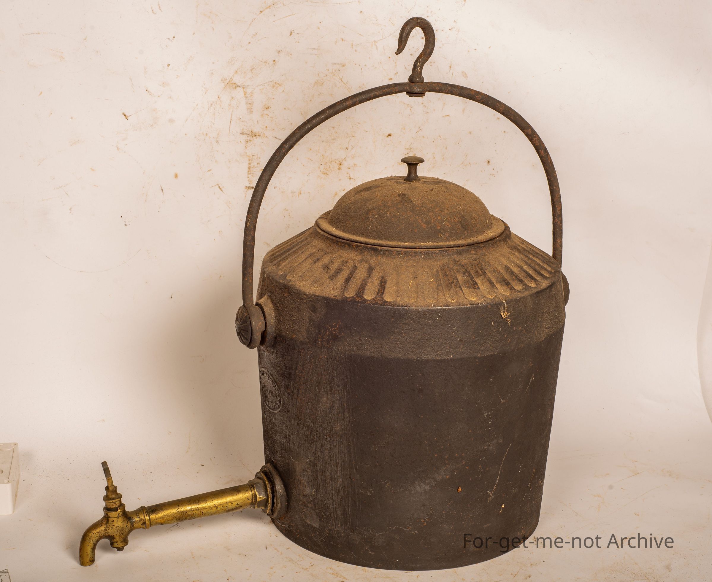 This would be a 5 gallon water fountain with a fluted top shoulder, English designed diamond on the base, an unidentifiable stamp of manufacture, but an important piece and very hard to find with original lid.Collection