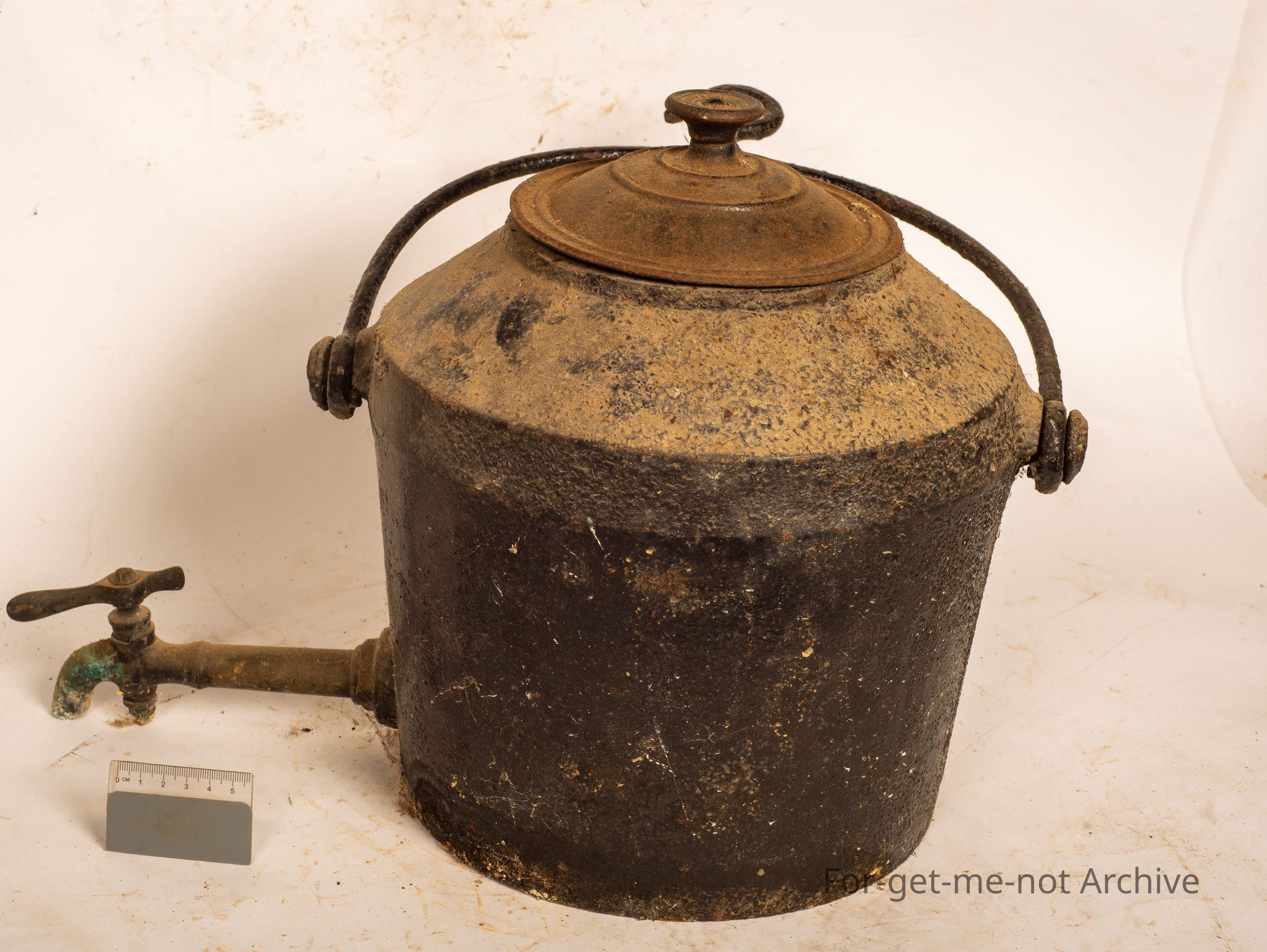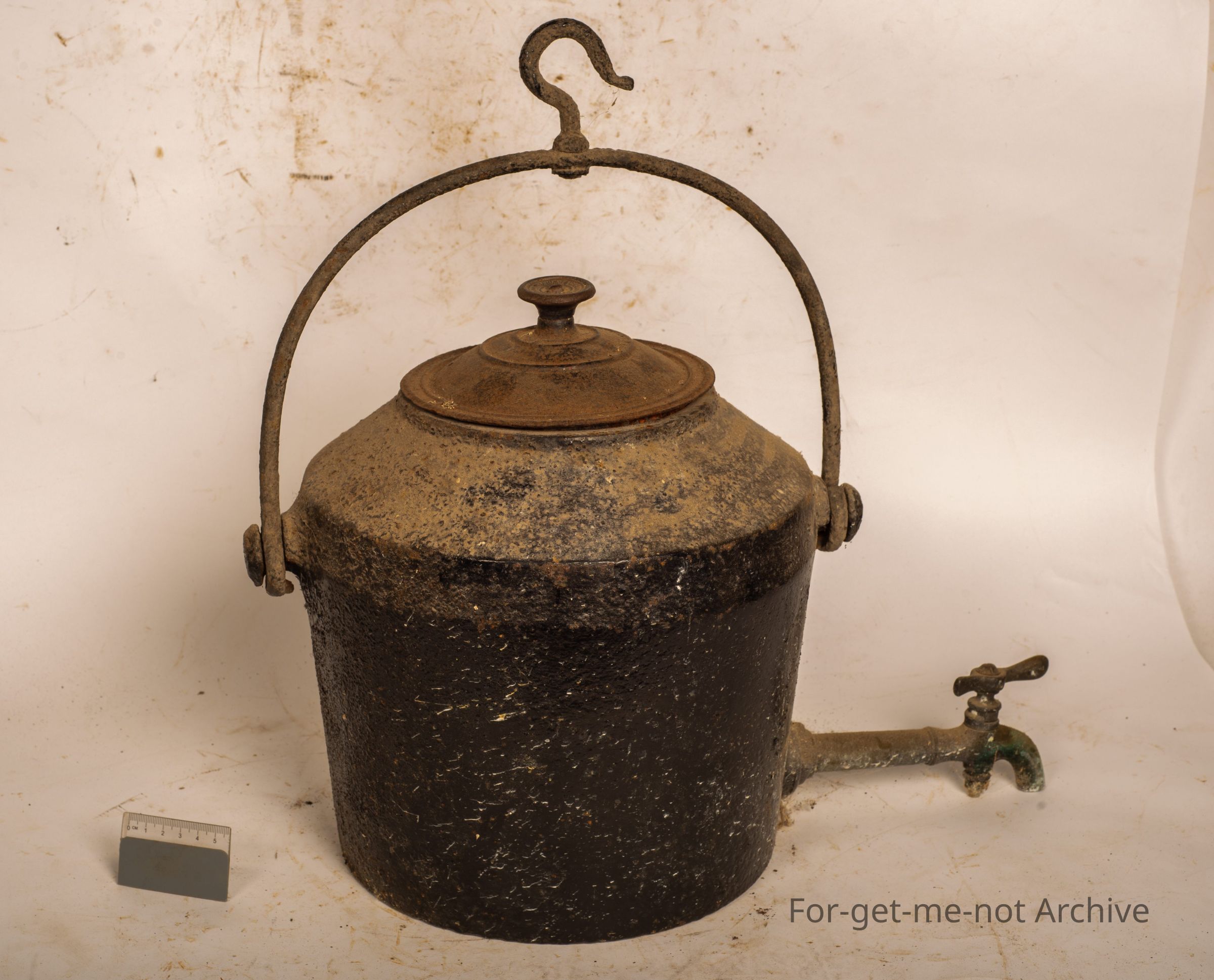 This is another cast iron water fountain, from Clark. Original hanger, the tap, the spout, and lid in pretty good order. Haven't cleaned it up as yet.