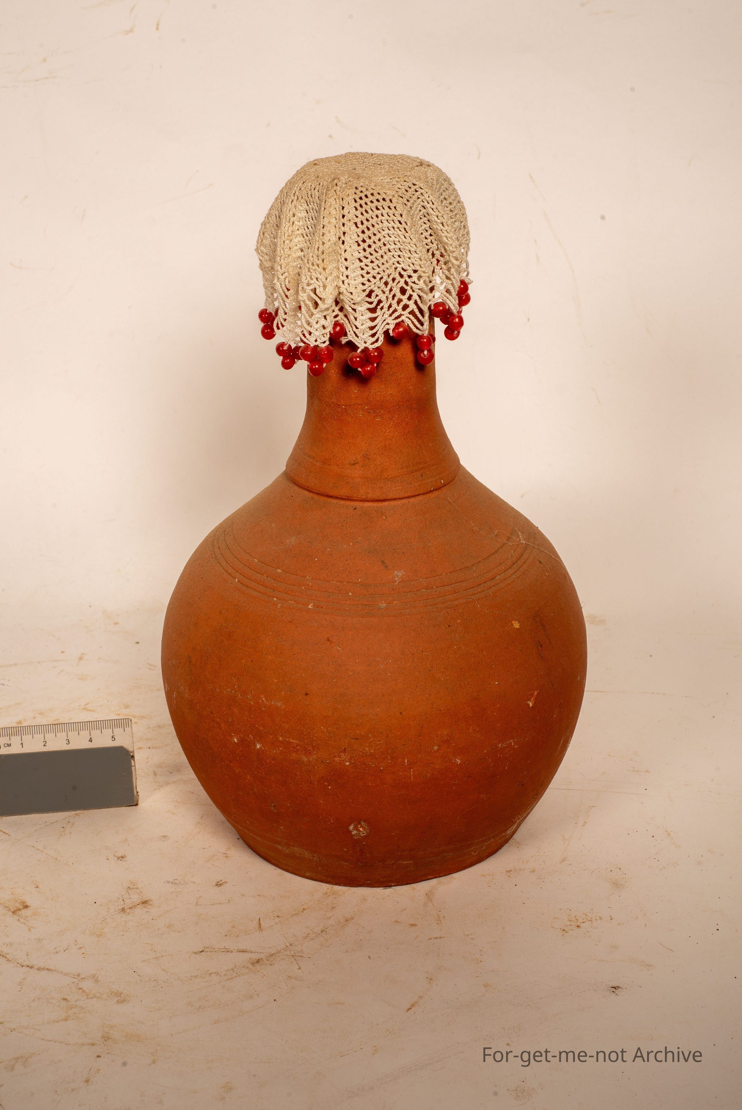 These are known as Water Monkeys. These date back to the early days of, the German potters that came into South Australia. No identification on them. Cog work to the shoulder. These had a saucer underneath, and they were kept in a breezeway so that the porous water kept the porous form of terracotta allowed the water to seep, which kept it cool in a breeze. Quite hard to find these days.Collection