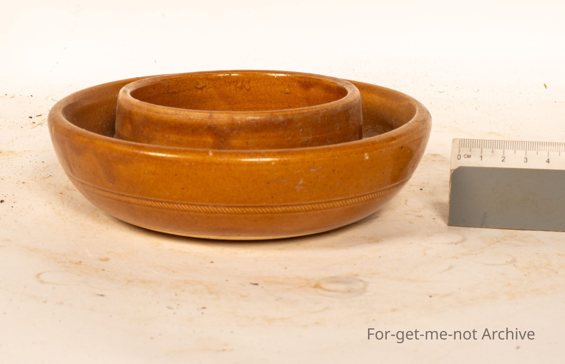 Stoneware Pottery, this is another of the, the water surrounds to put the leg of a table into to stop ants going up the table leg. This is an English origin, not Australian.