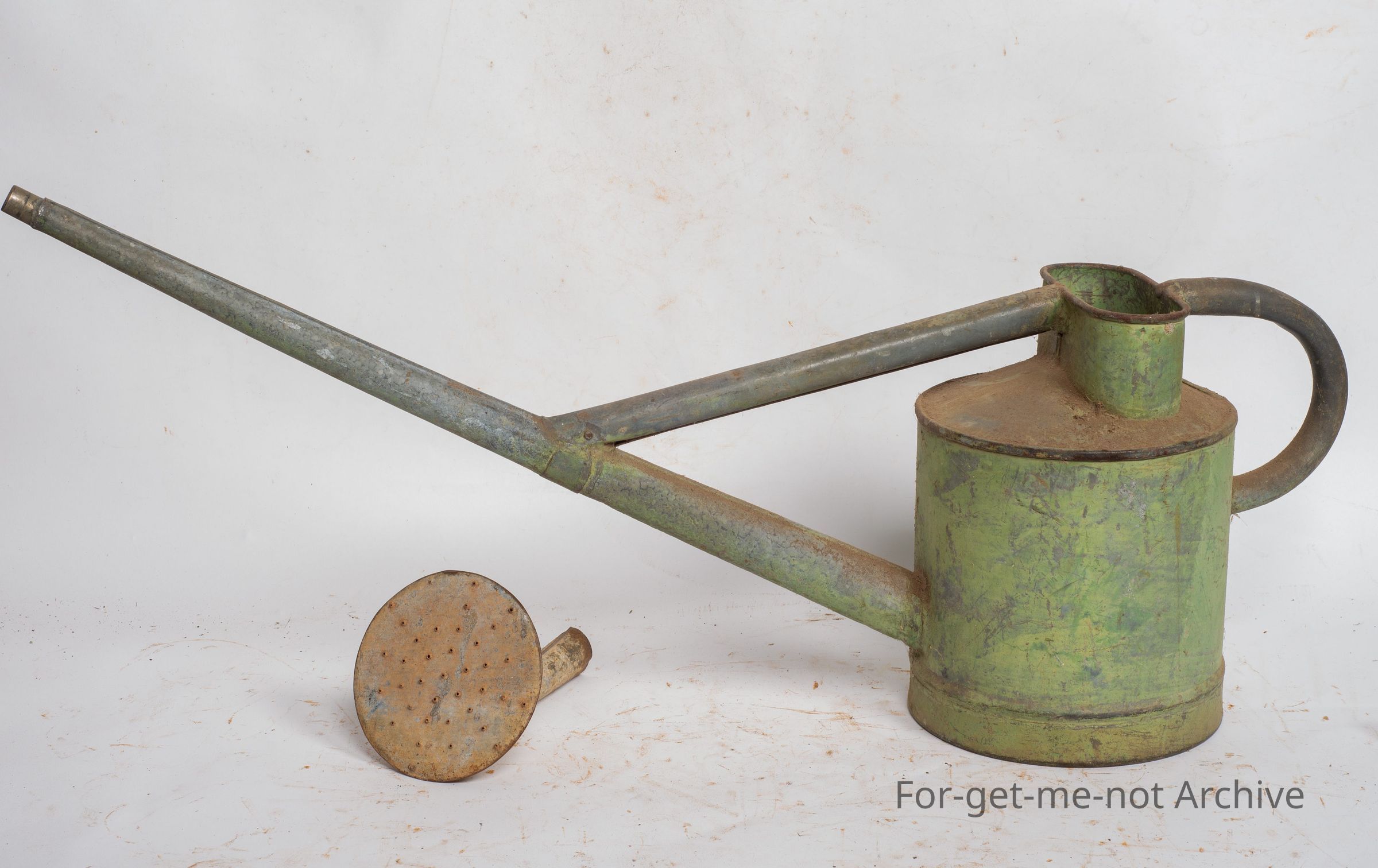 This is a handheld, watering can. Very possibly of French origin because of the design of it. Very long spout.