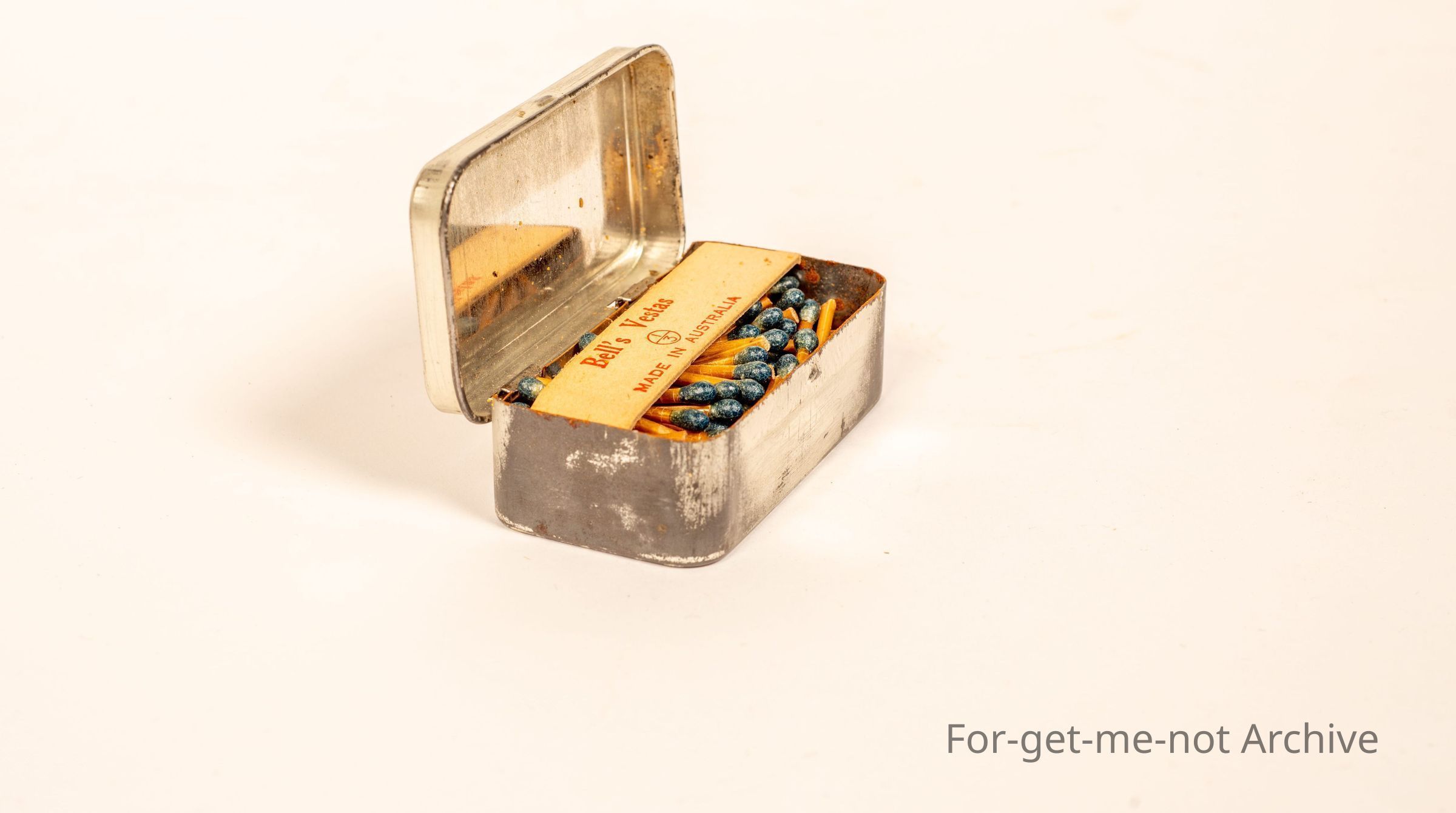 A tin of Bells waterproof Wax Vestas made in Australian as new condition. Striker on the bottom.