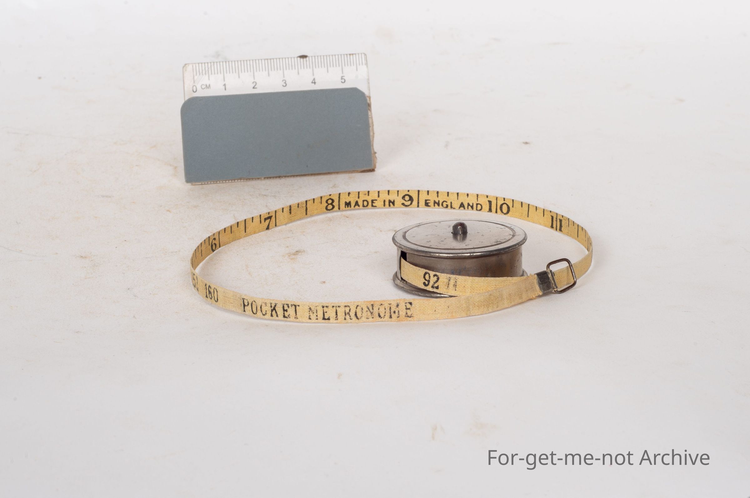 This is a Weekes Pocket Metronome. very good order. The tape gives you the timing along the tape, longer tape slower beat