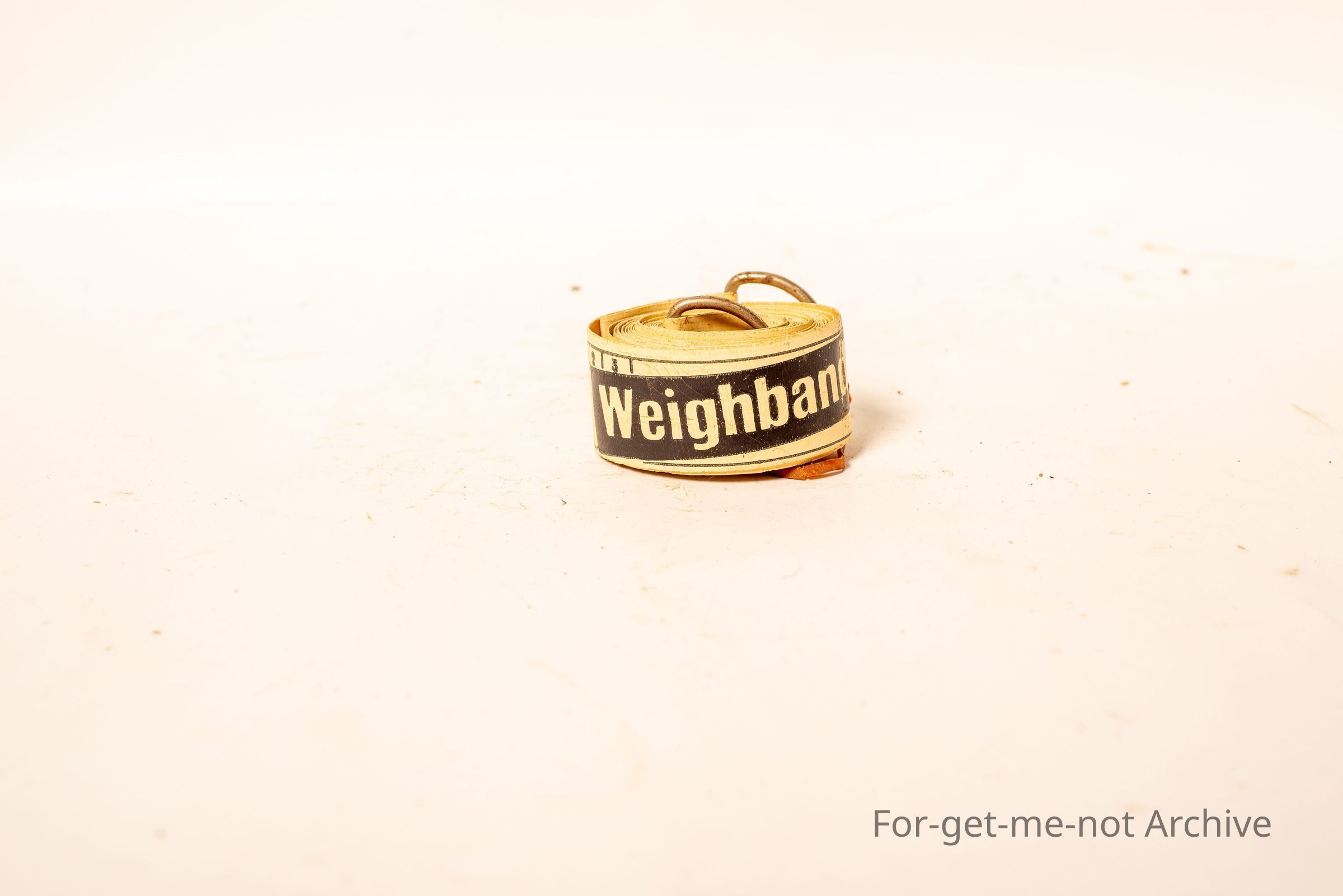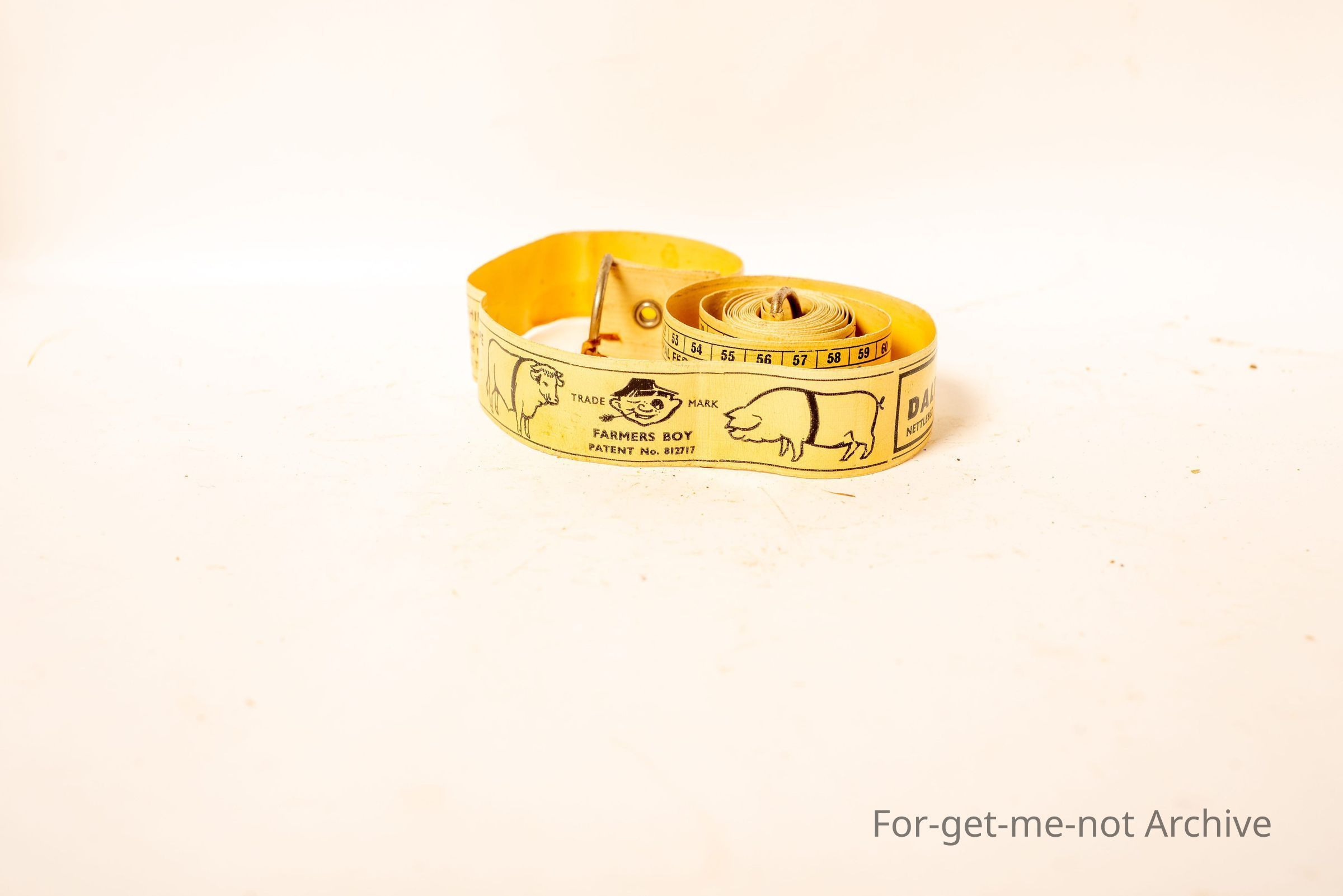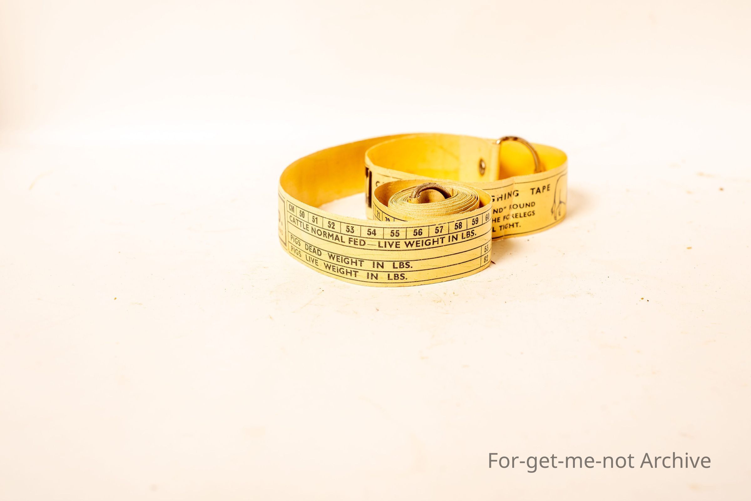 An animal Weight-band. These are strung around the cattle or pig, and the estimate on the measurements of the band, give you a rough weight of the animal.