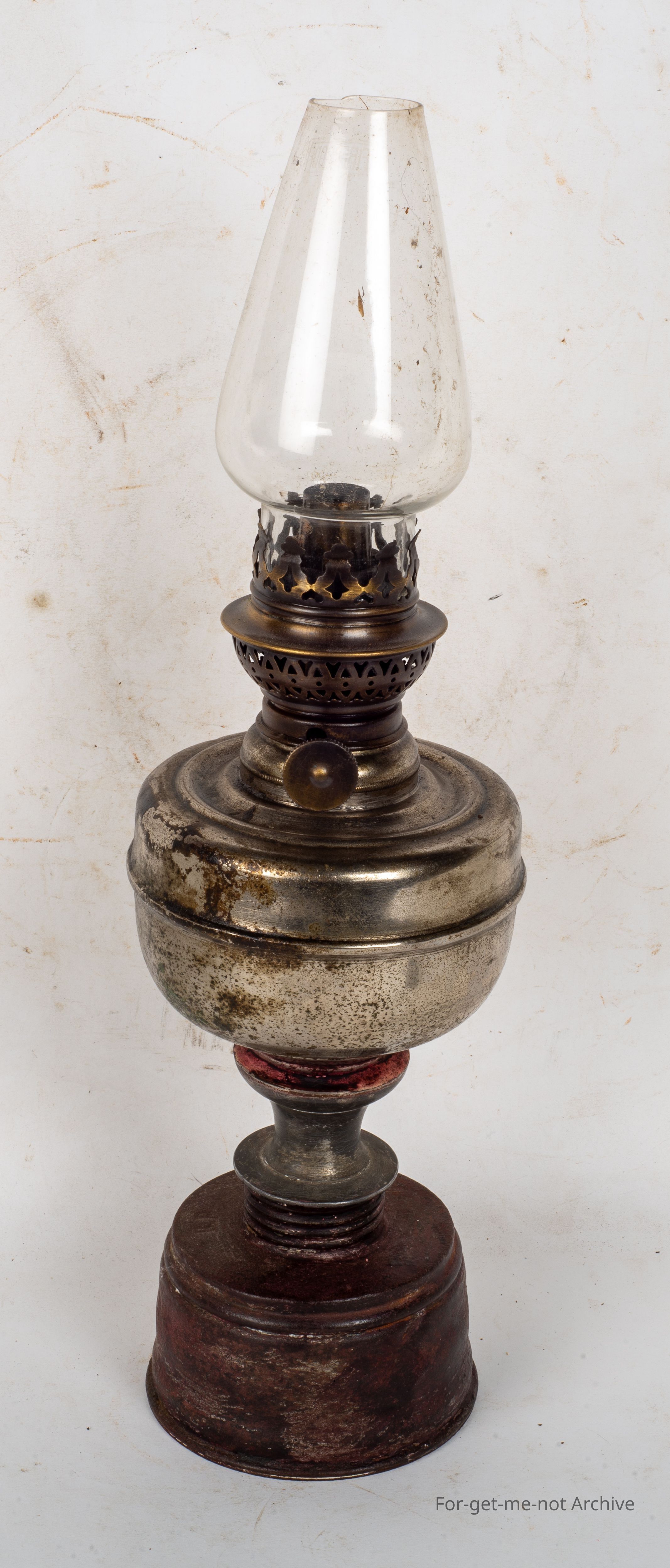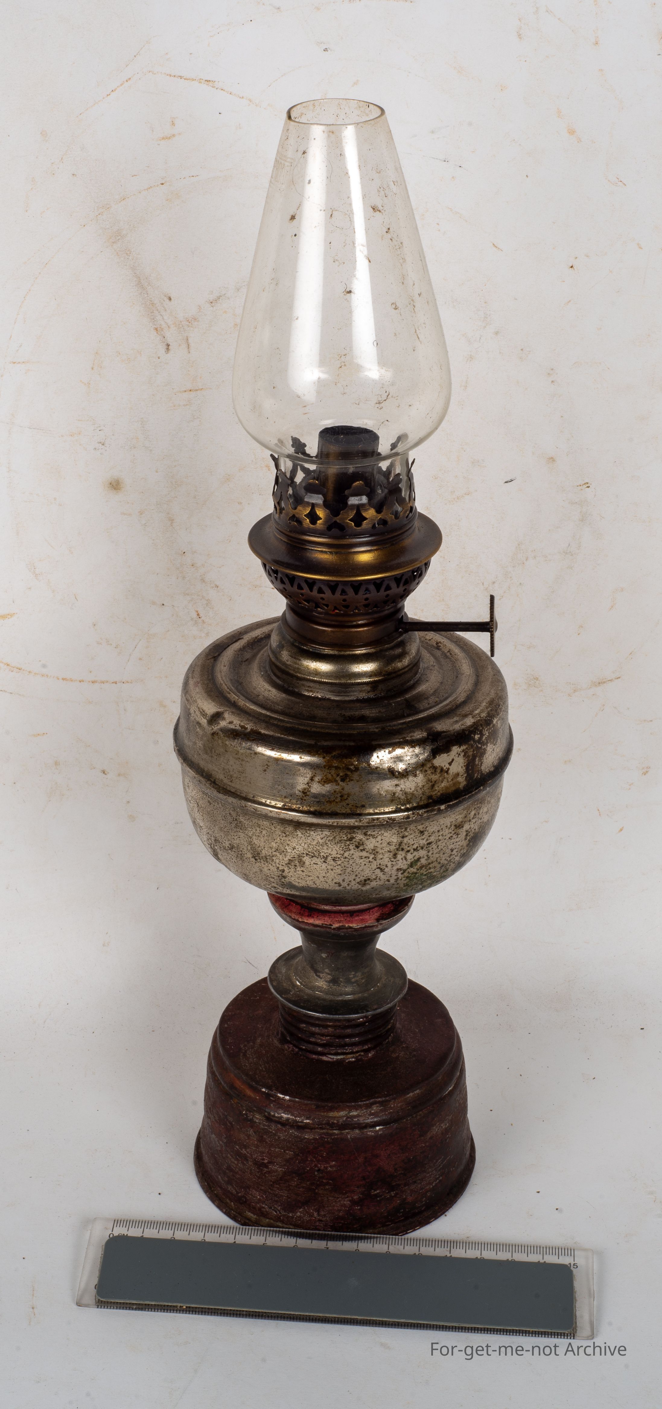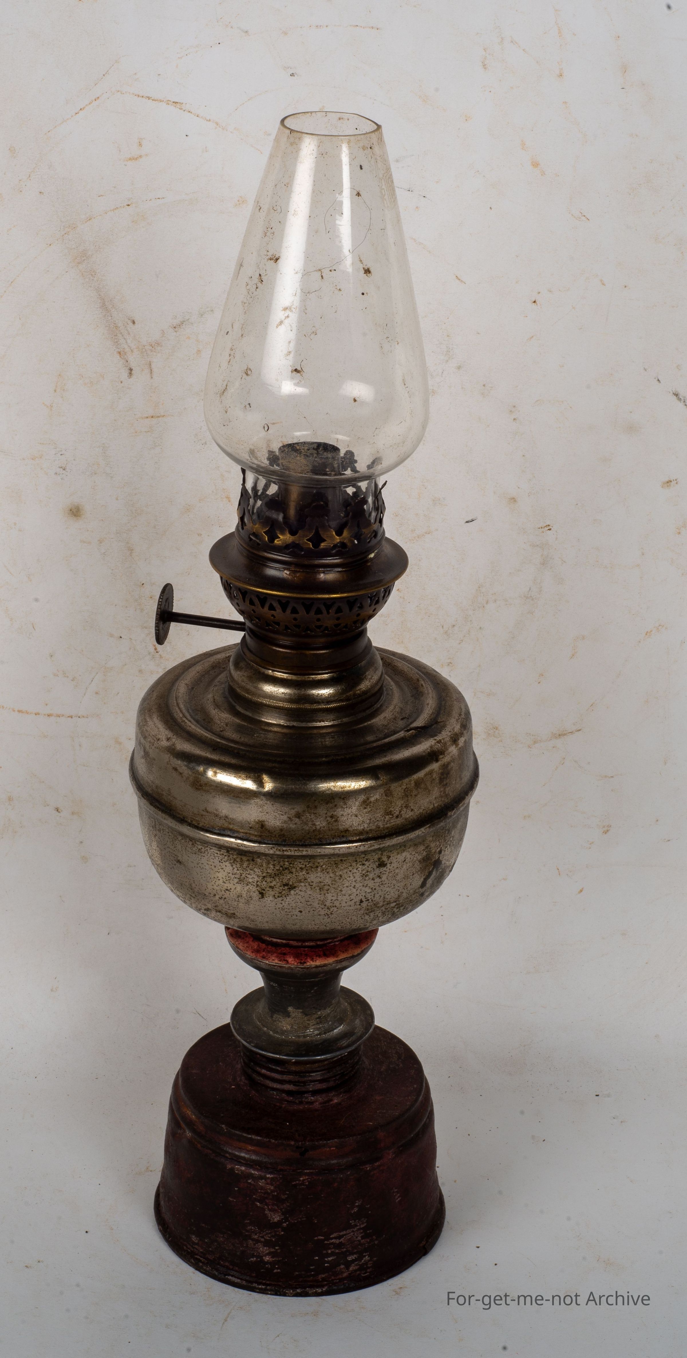 Desk oil lamp with a sand filled weighted base so that it is stable and less likely to fall over