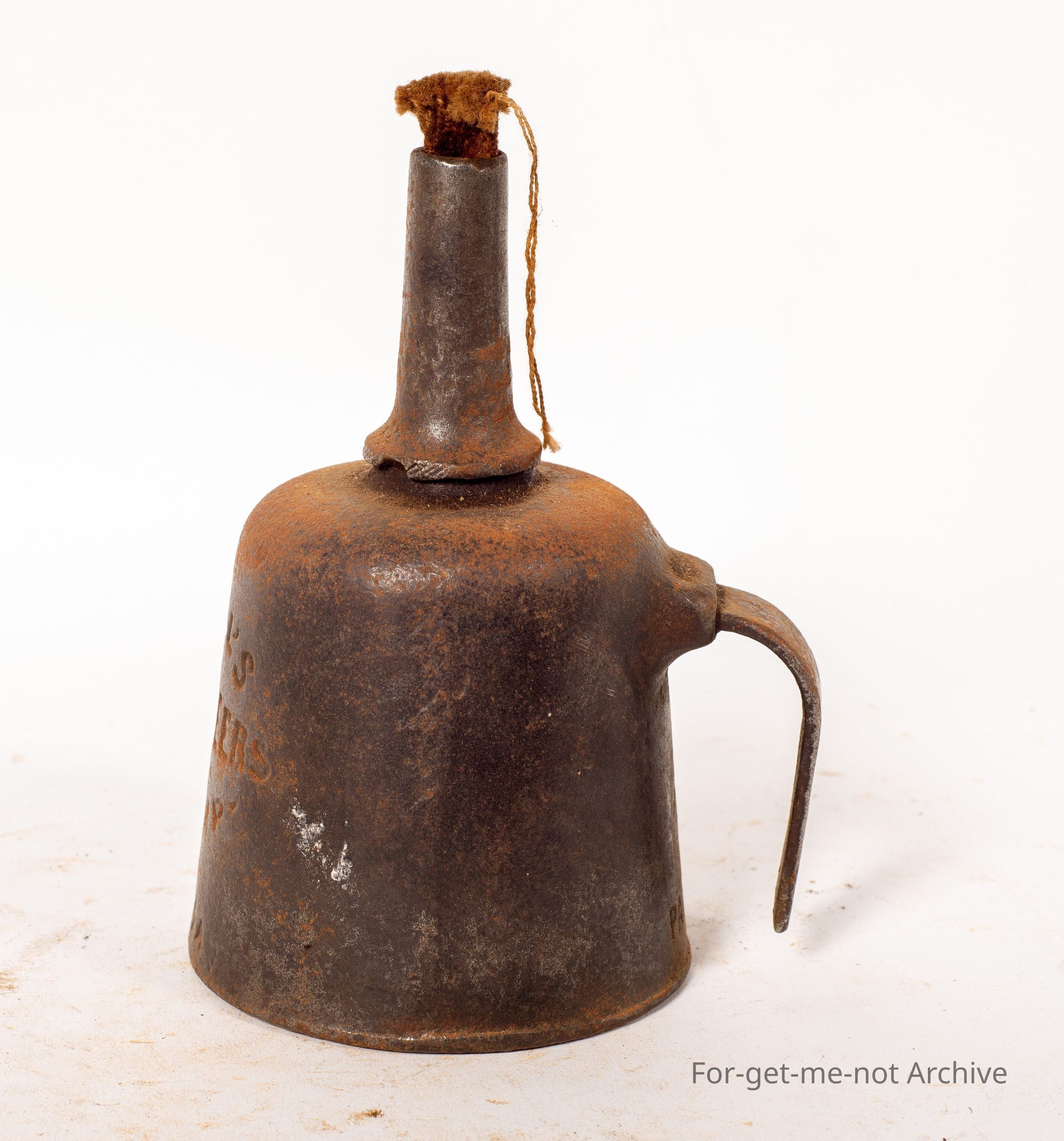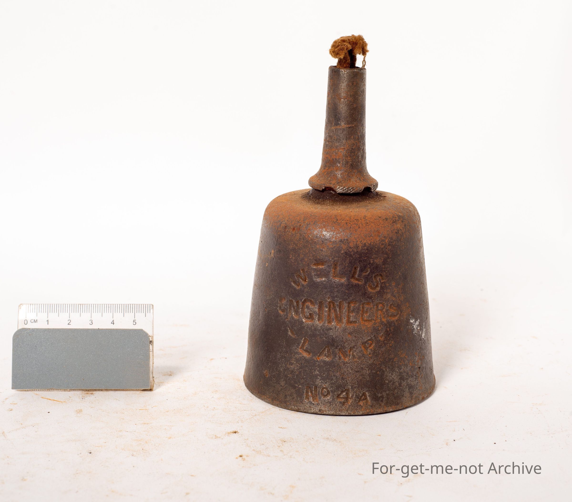 This is, another one of the Well's Engineer's Lamp. This one is numbered 4 a, original handle, the wick spout with a piece of wick in it. All in original, good condition. Very hard to find.Collection