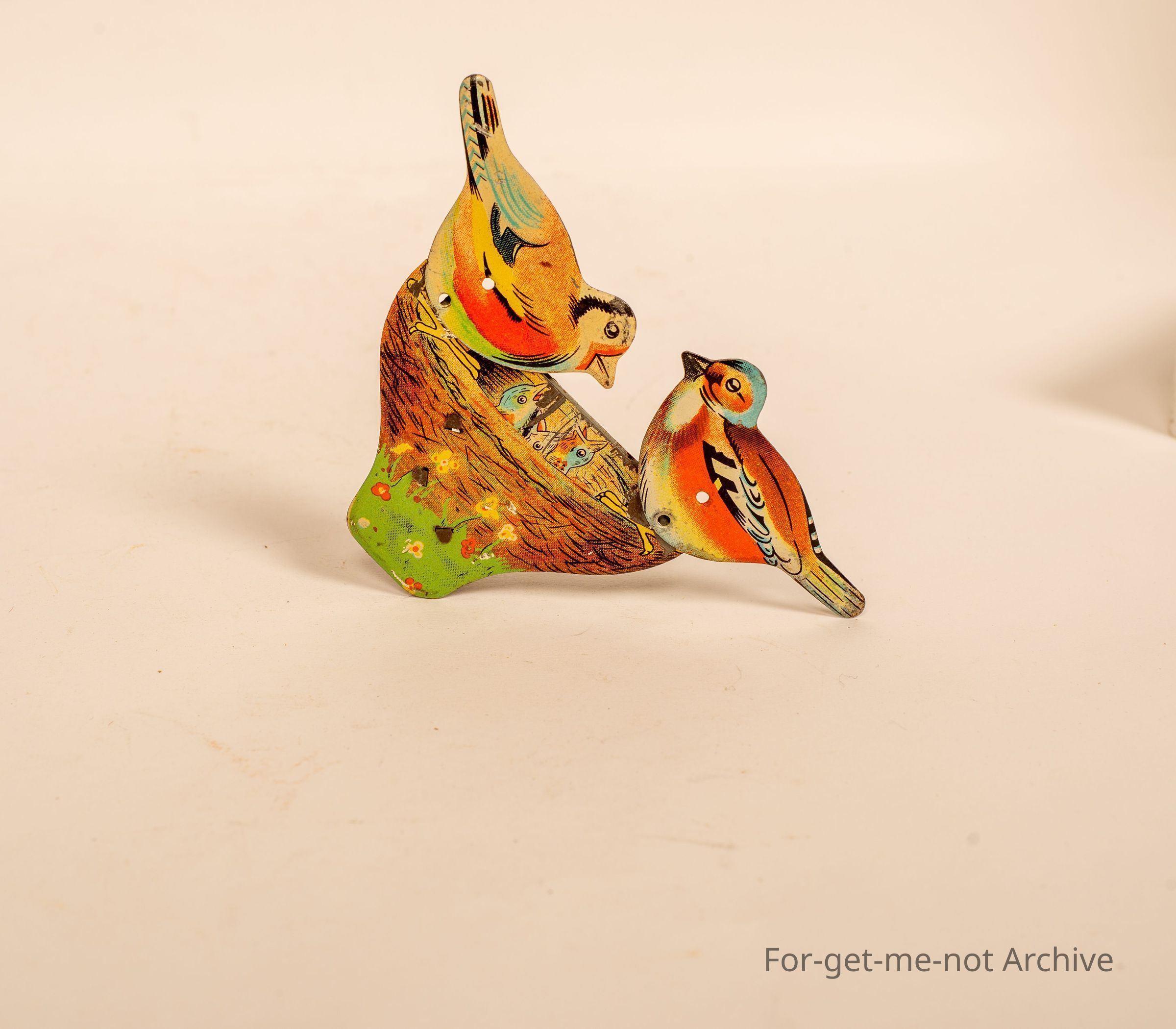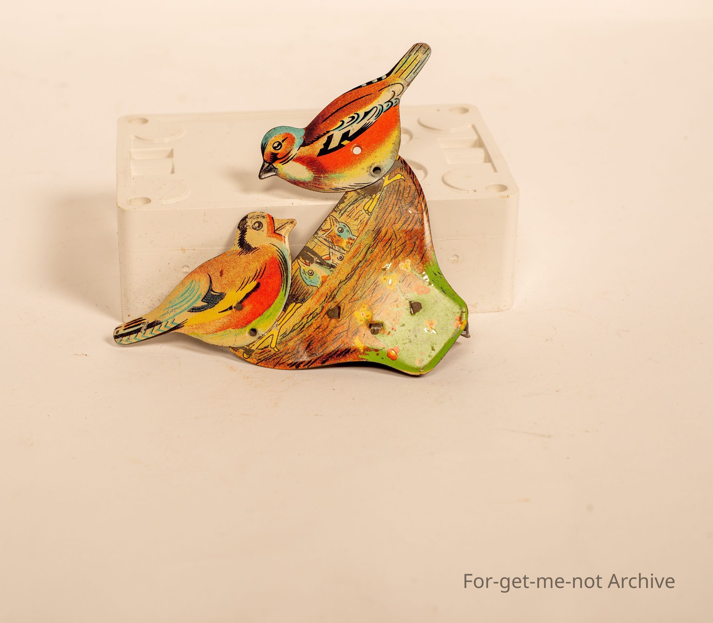 Is a tin whistle, or it's a clicker. And when you press the clicker, the birds click in alternate fashion. Lovely piece.