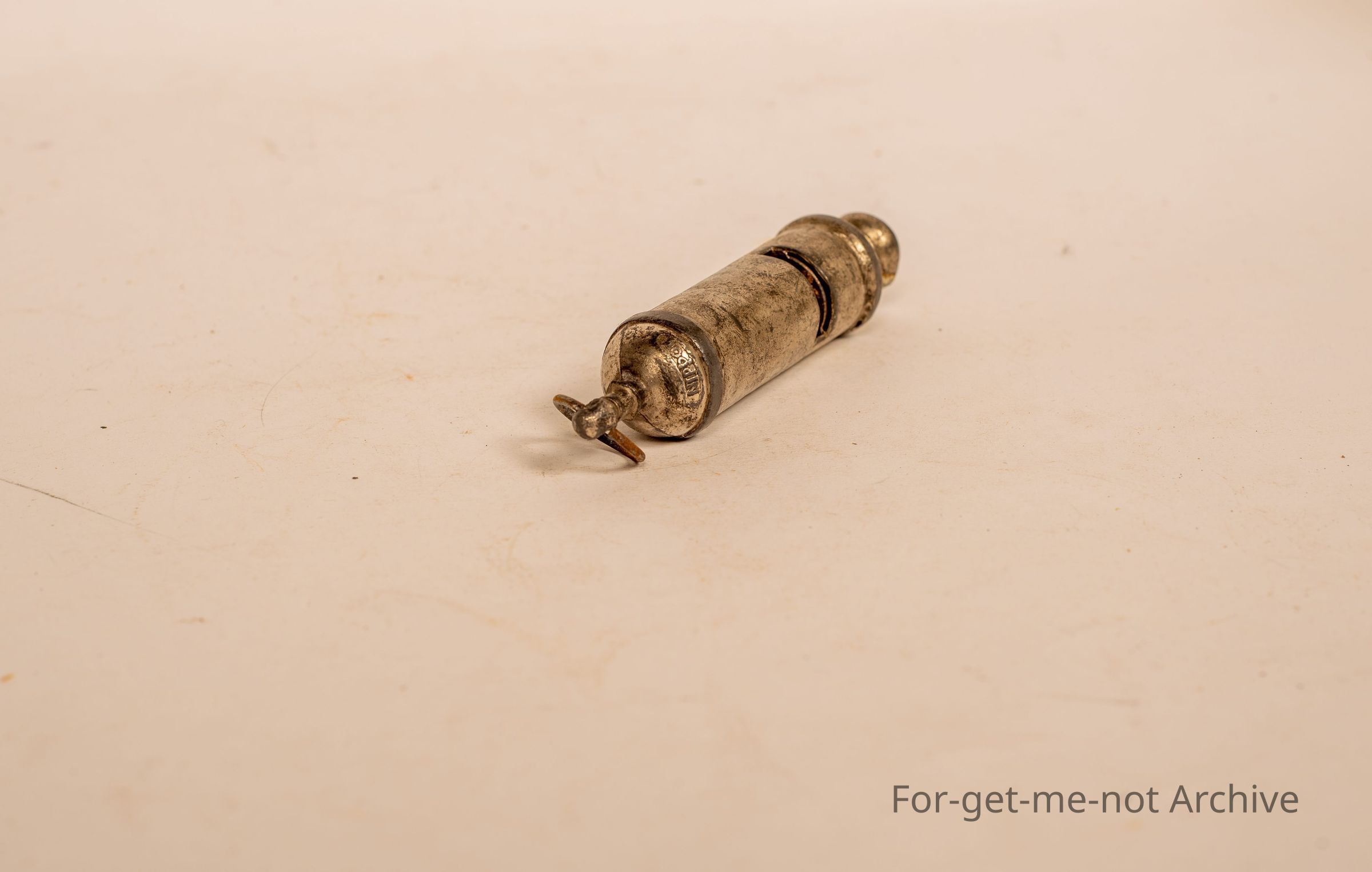 An interesting metal whistle. Obviously, after the war Japanese production, stamped Nippon.