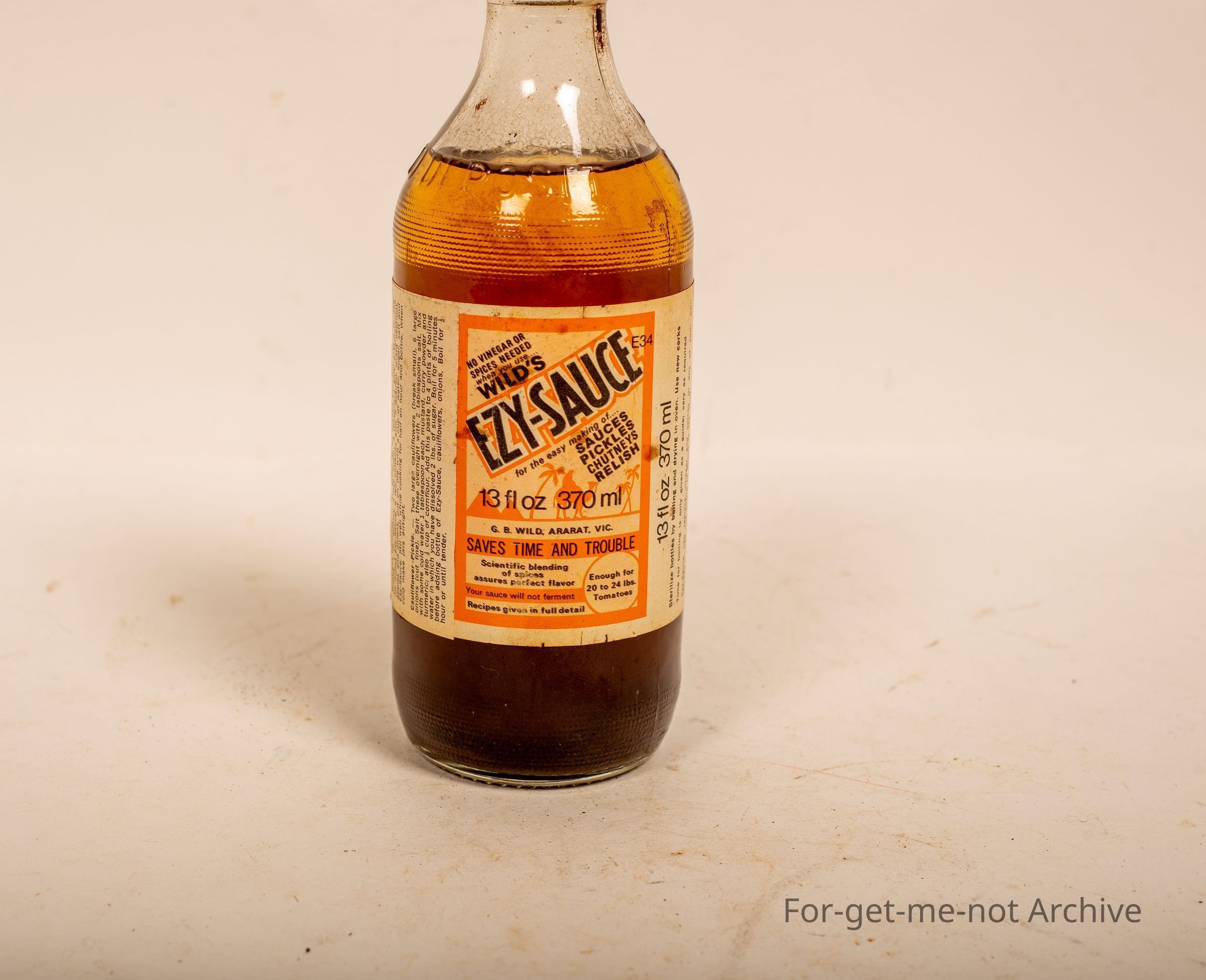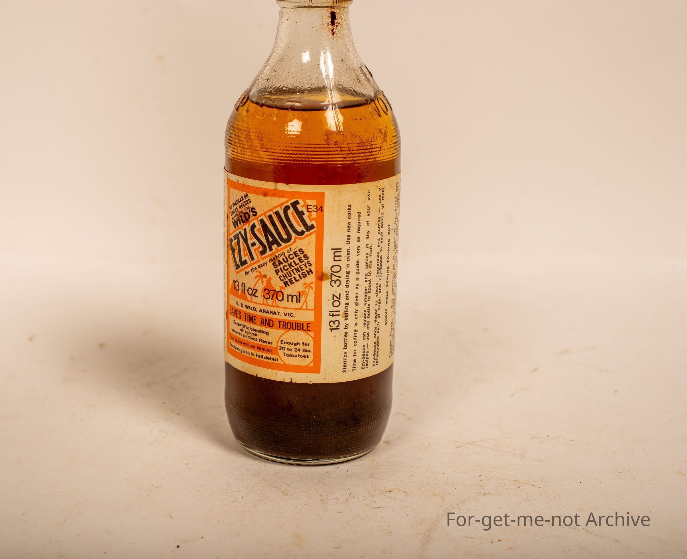 Unopened, original contents 13 fluid ounces and 370ml. Very popular product for sauce makers used for making sauces, pickles, chutney and relishes. Made by "Wilds" at Ararat in Victoria. Right at the end of fluid ounces and the beginning of the metric system for fluids in Australian use.Collection