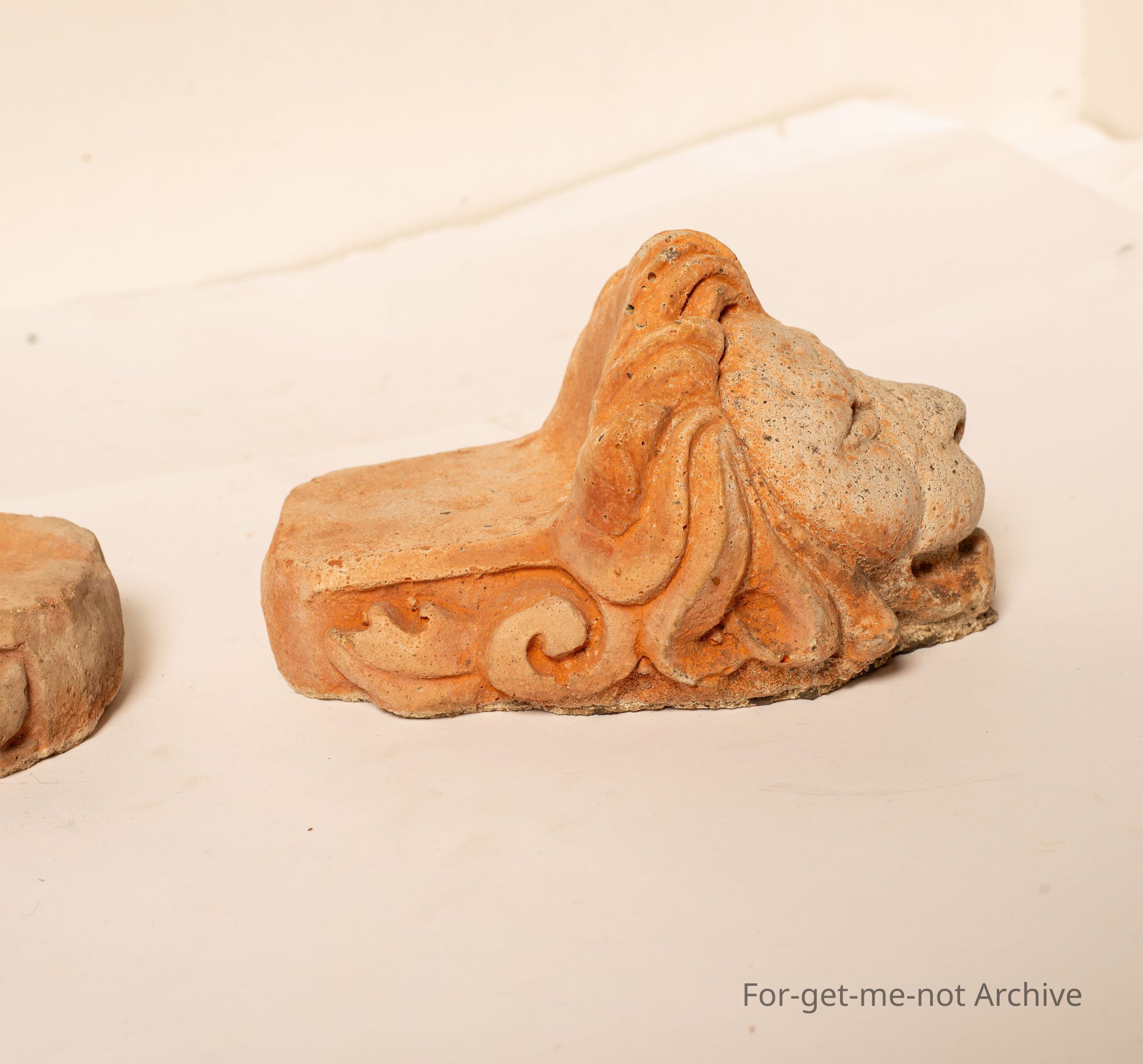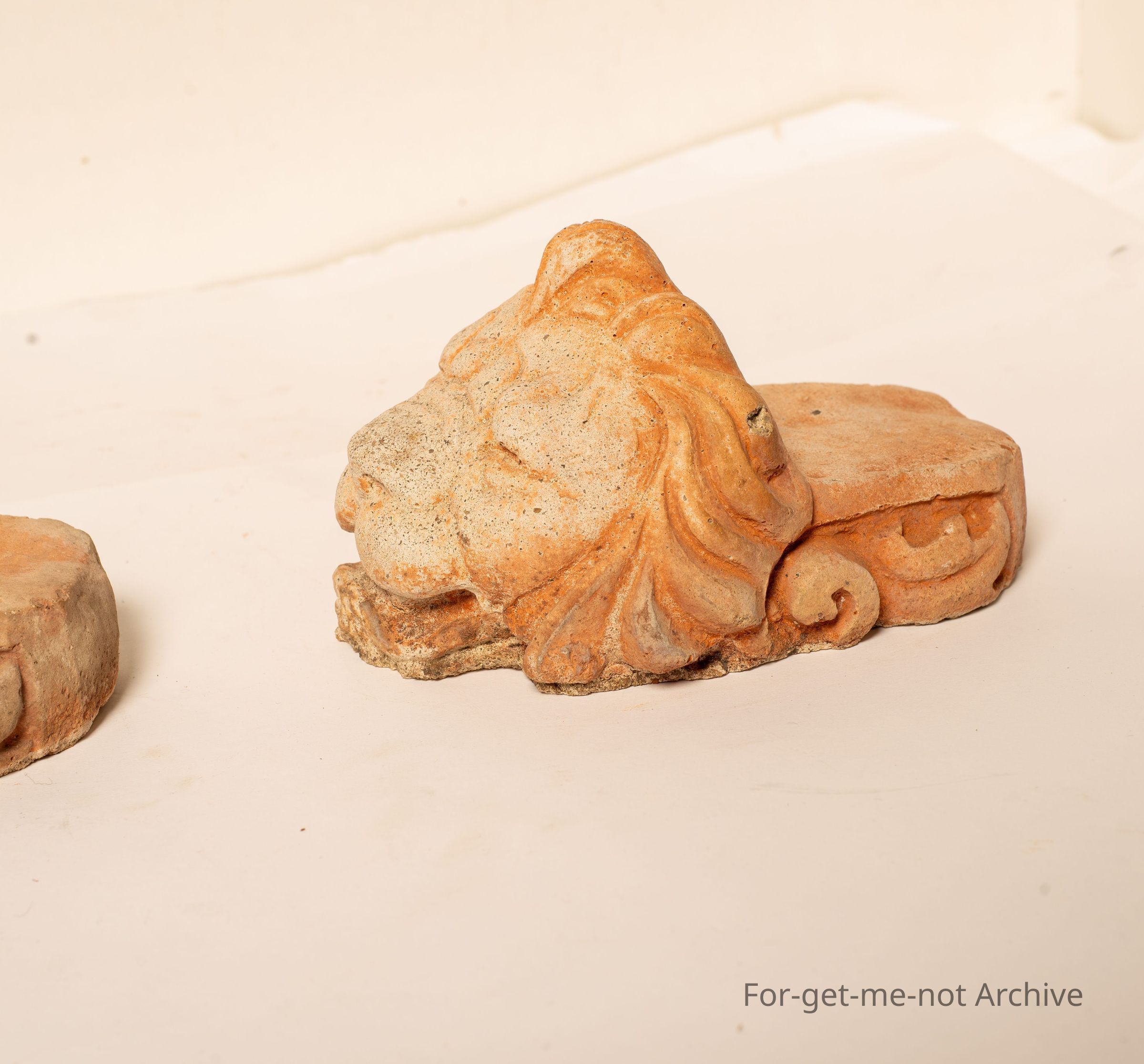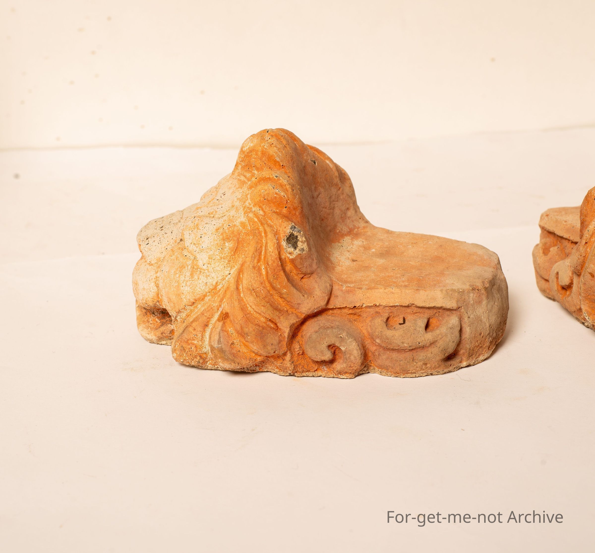 2 x stoneware fired pieces of lions heads with a platform at the back. These are known to be window chocks. Some people disguise them describe them as stands for the legs of furniture. Whichever way, they're quite old, quite rare, Quite likely, made in an Australian pottery early.Collection
