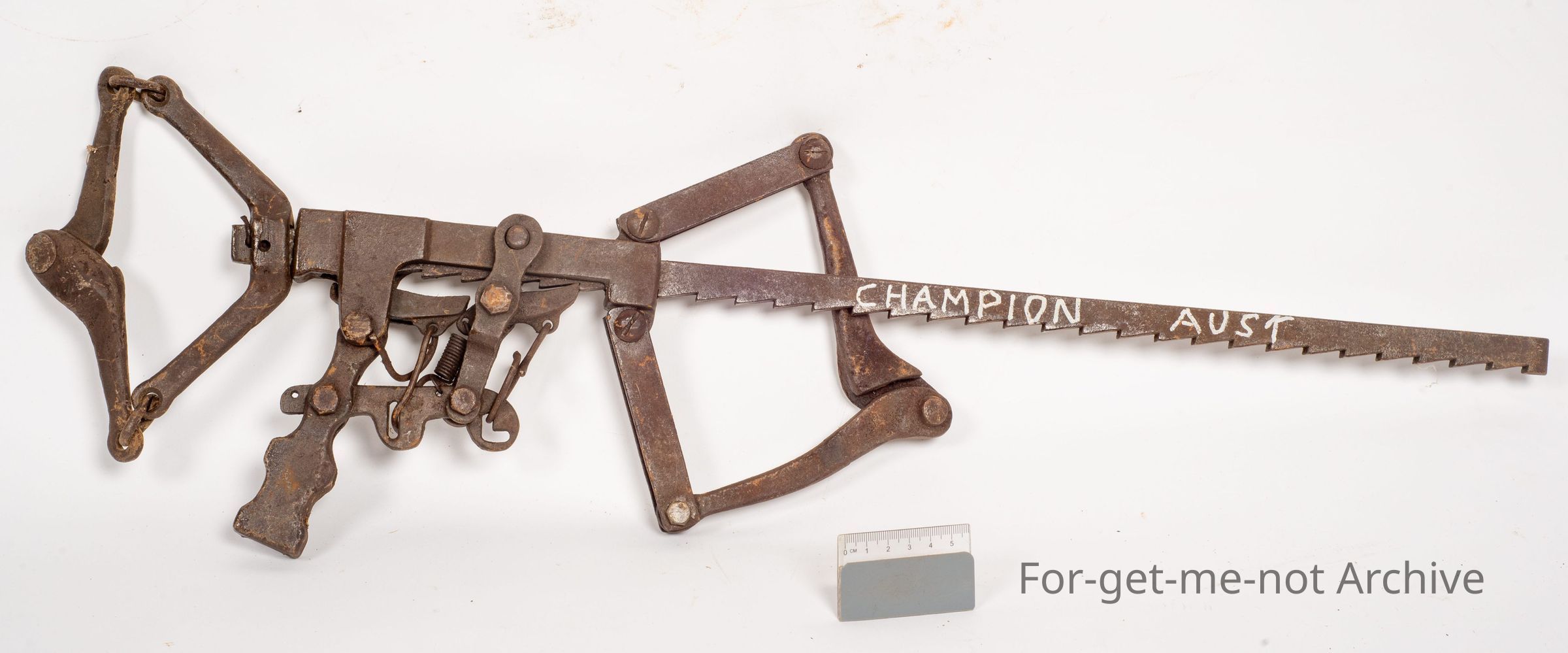 This is a Champion Australian wire strainer. Quite a cumbersome one again. Reasonably complex mechanism. Would have been awkward to use at a collectible one.