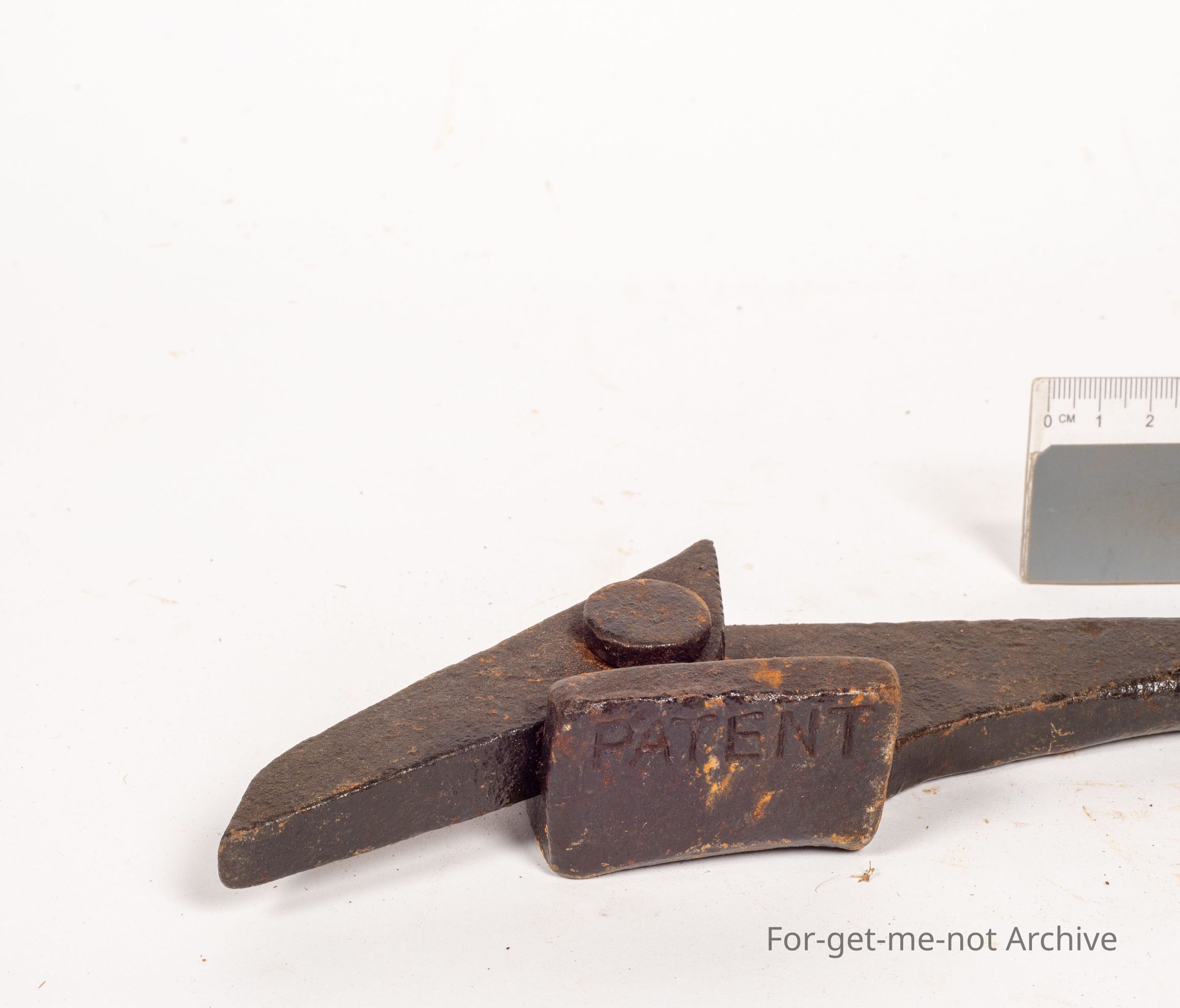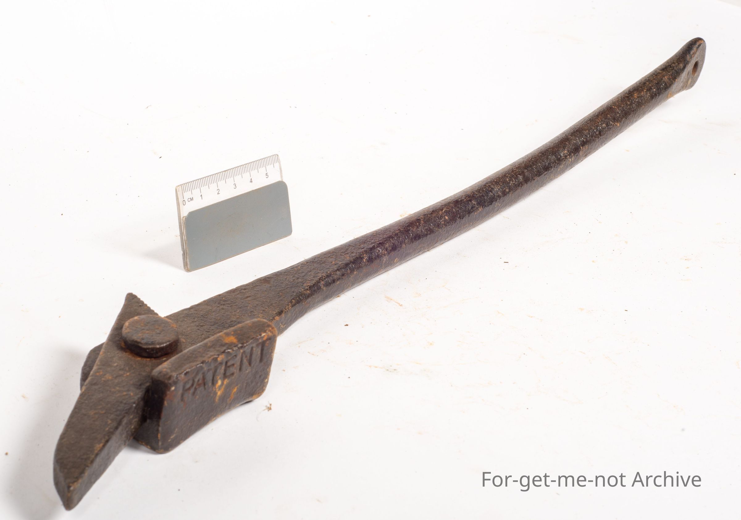 . This is a very early primitive wire strainer, long metal handle, with possibly the wire keyhole flattened off in the end of it. It is stamped patent, no further information.