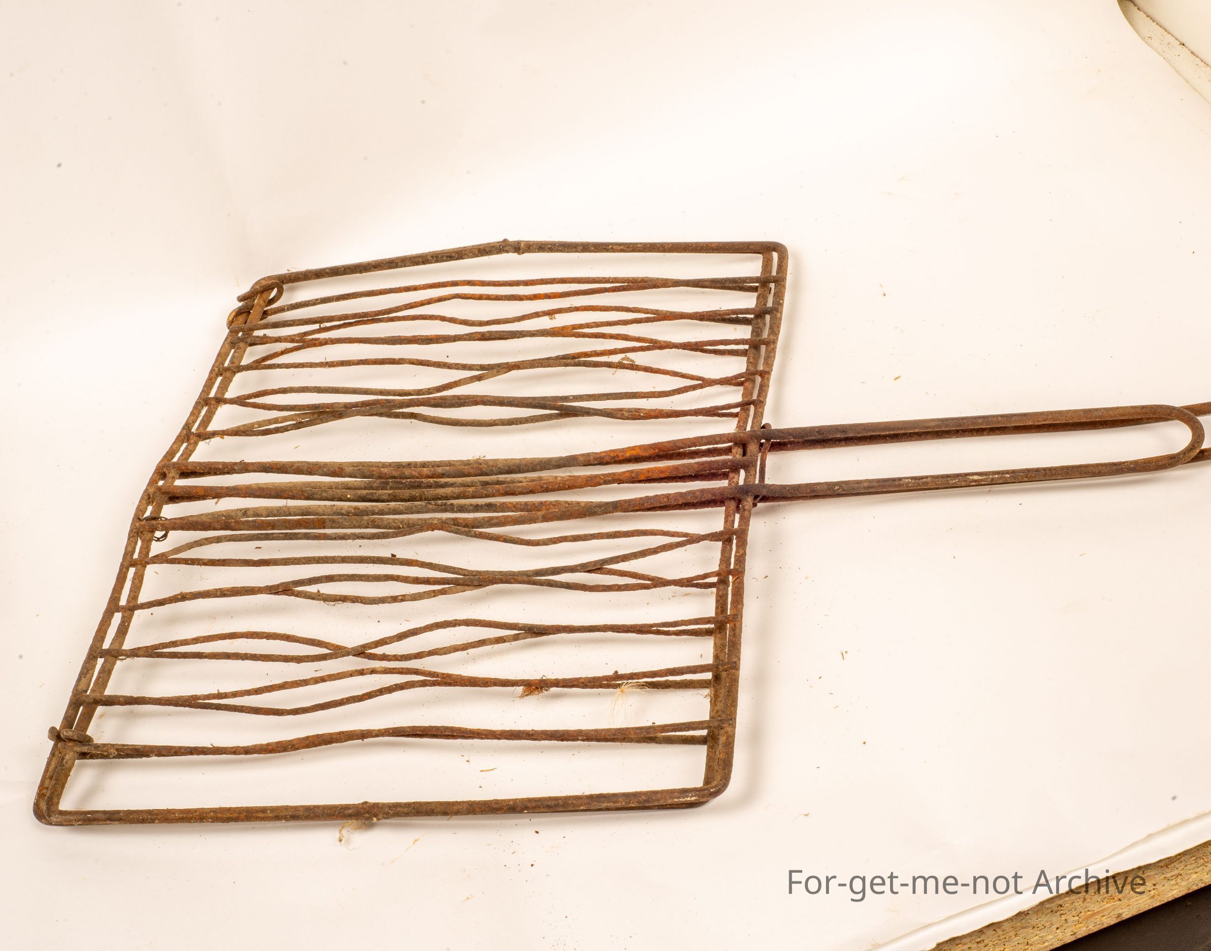 This is a very elderly, well worn grill used for cooking steak, sausages, or what have you over a campfire. This one has seen quite a lot of campfires. Not in good condition. But a nice old relic,Collection