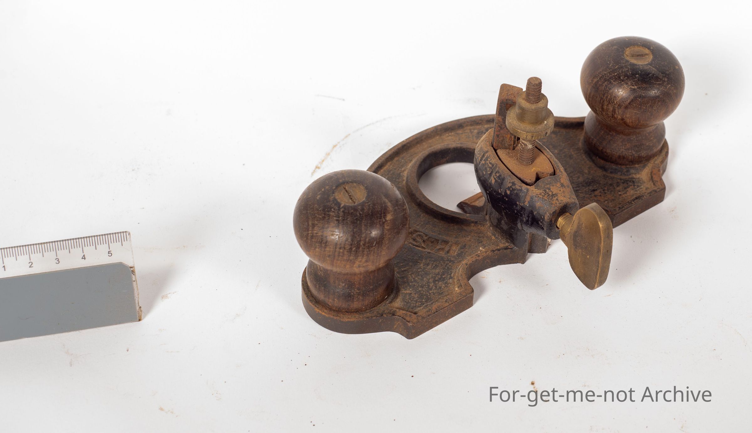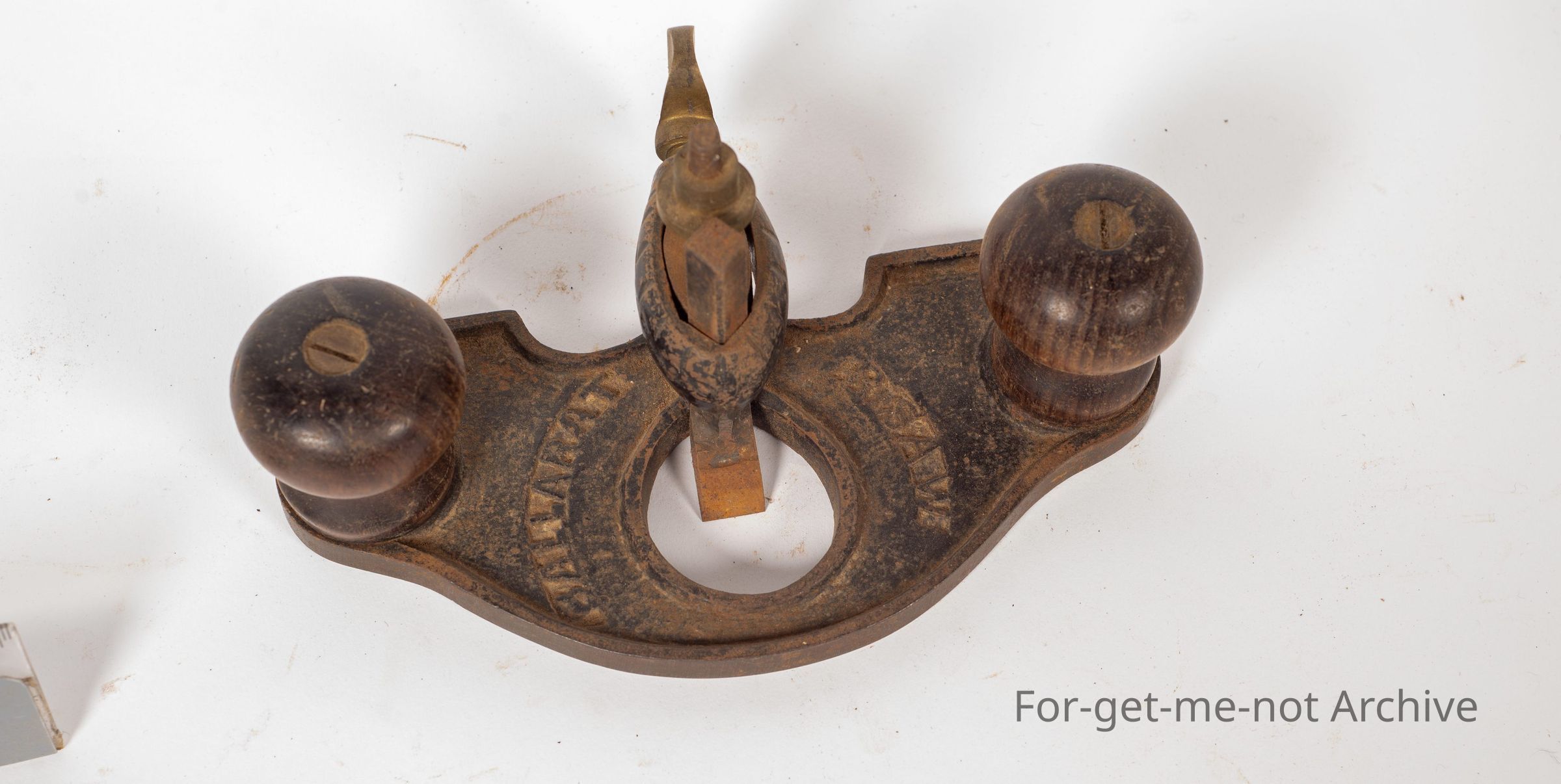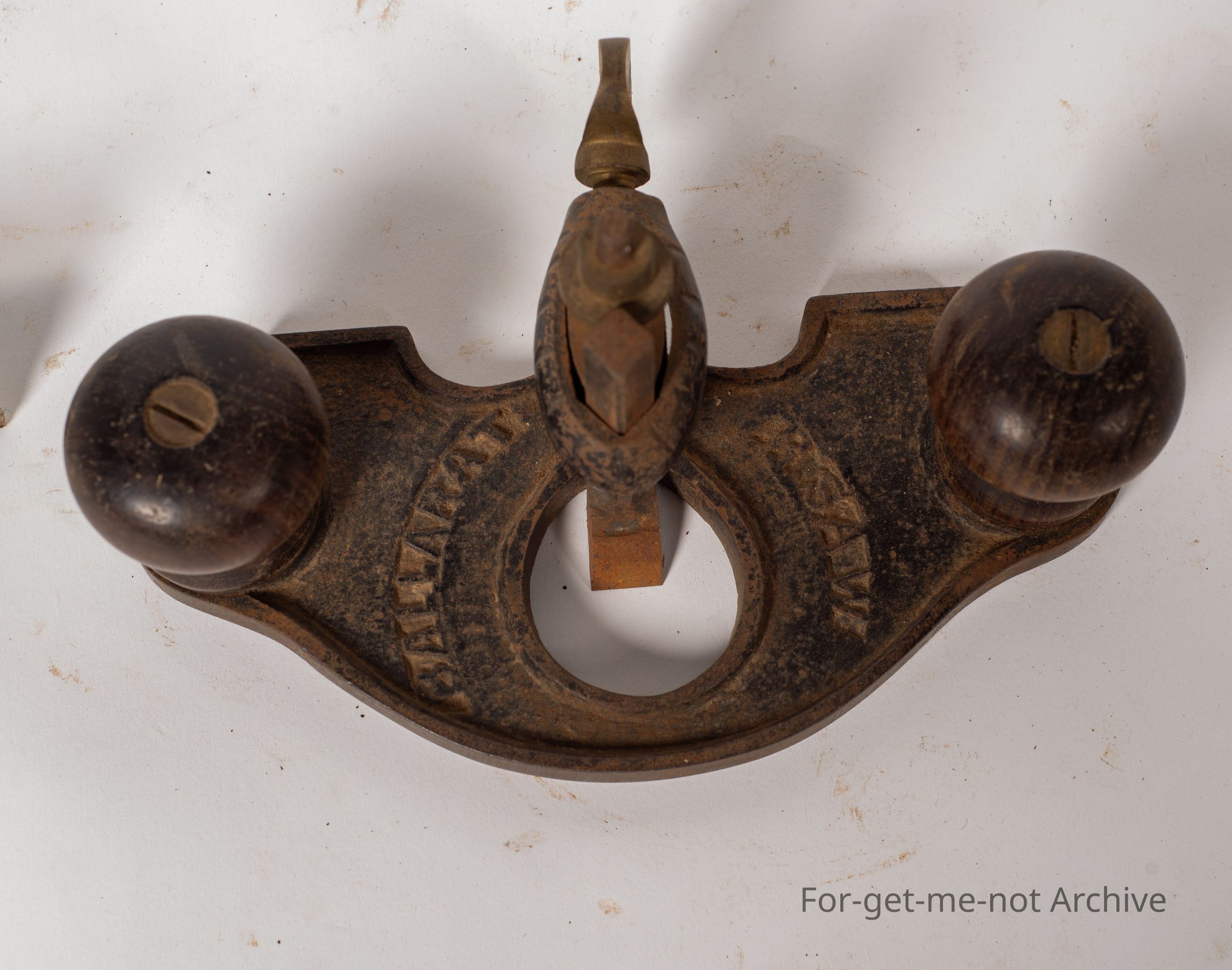 This is a small router plane, wooden handles, well made, Made in Ballarat, embossed, B. Saw, Ballarat