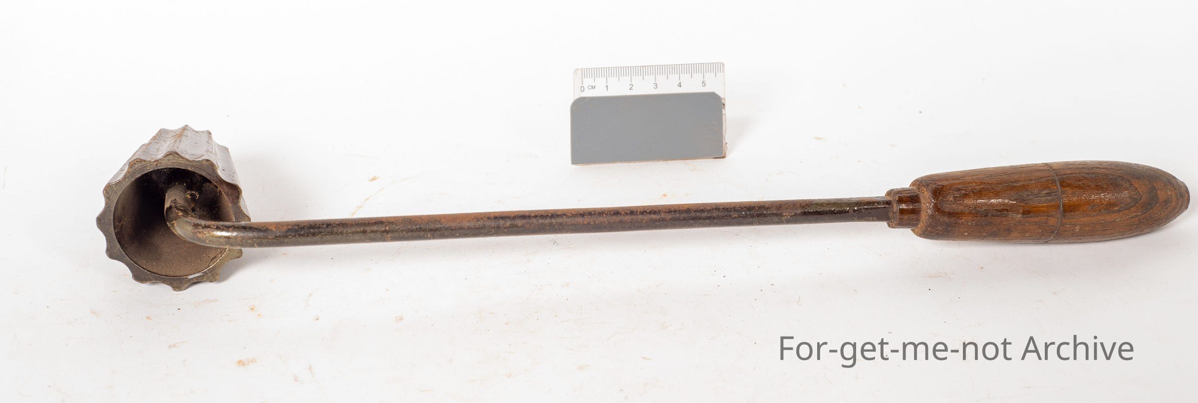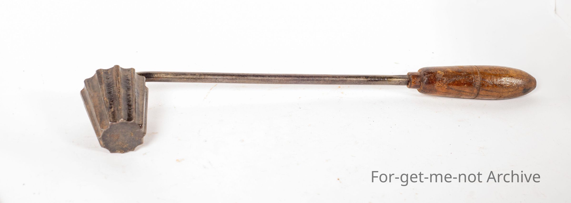This is a wooden handle with a rod that turned at 90 degrees, a tapered fluted end, that is actually on a thread, so you can only turn it in one direction without it undoing.Collection