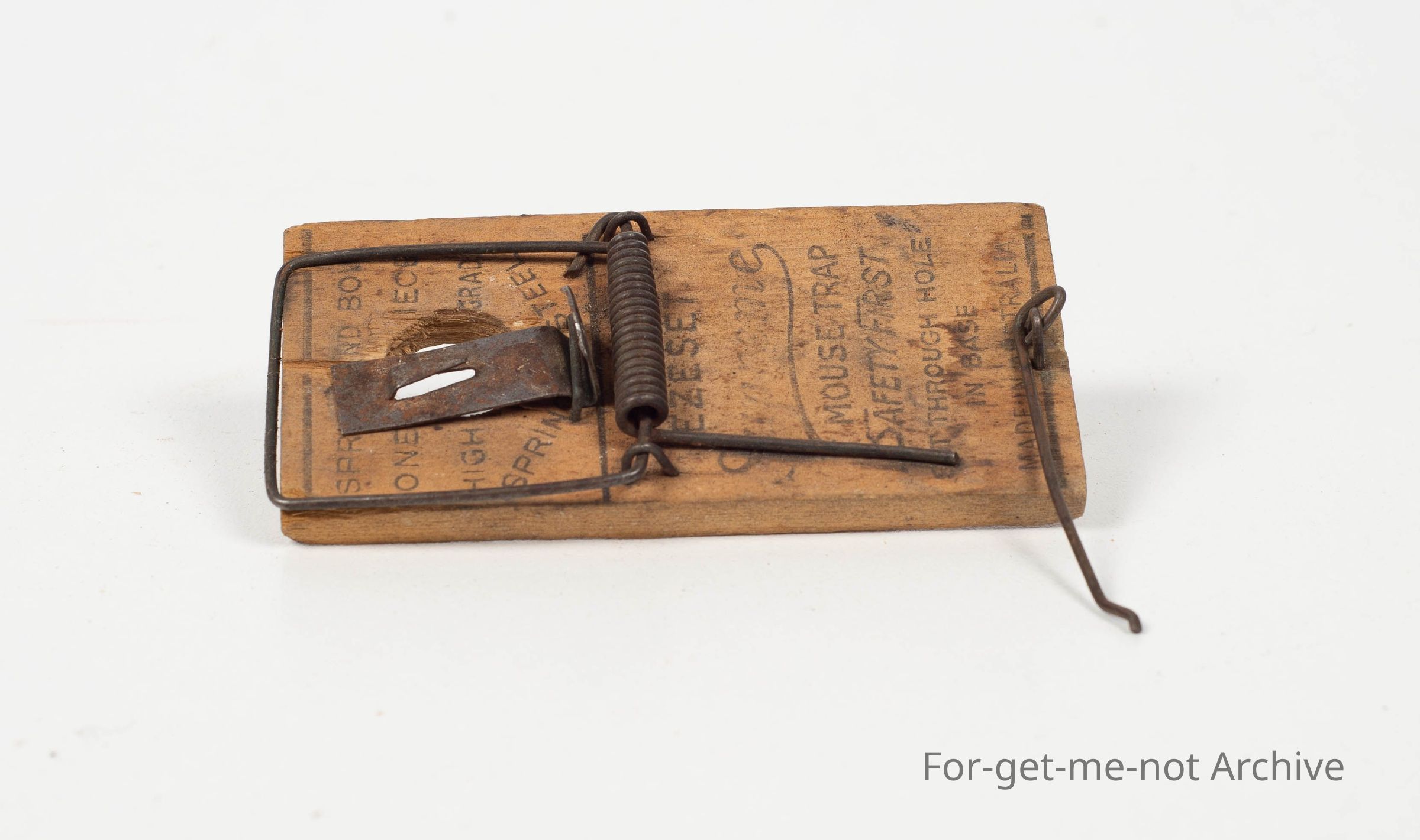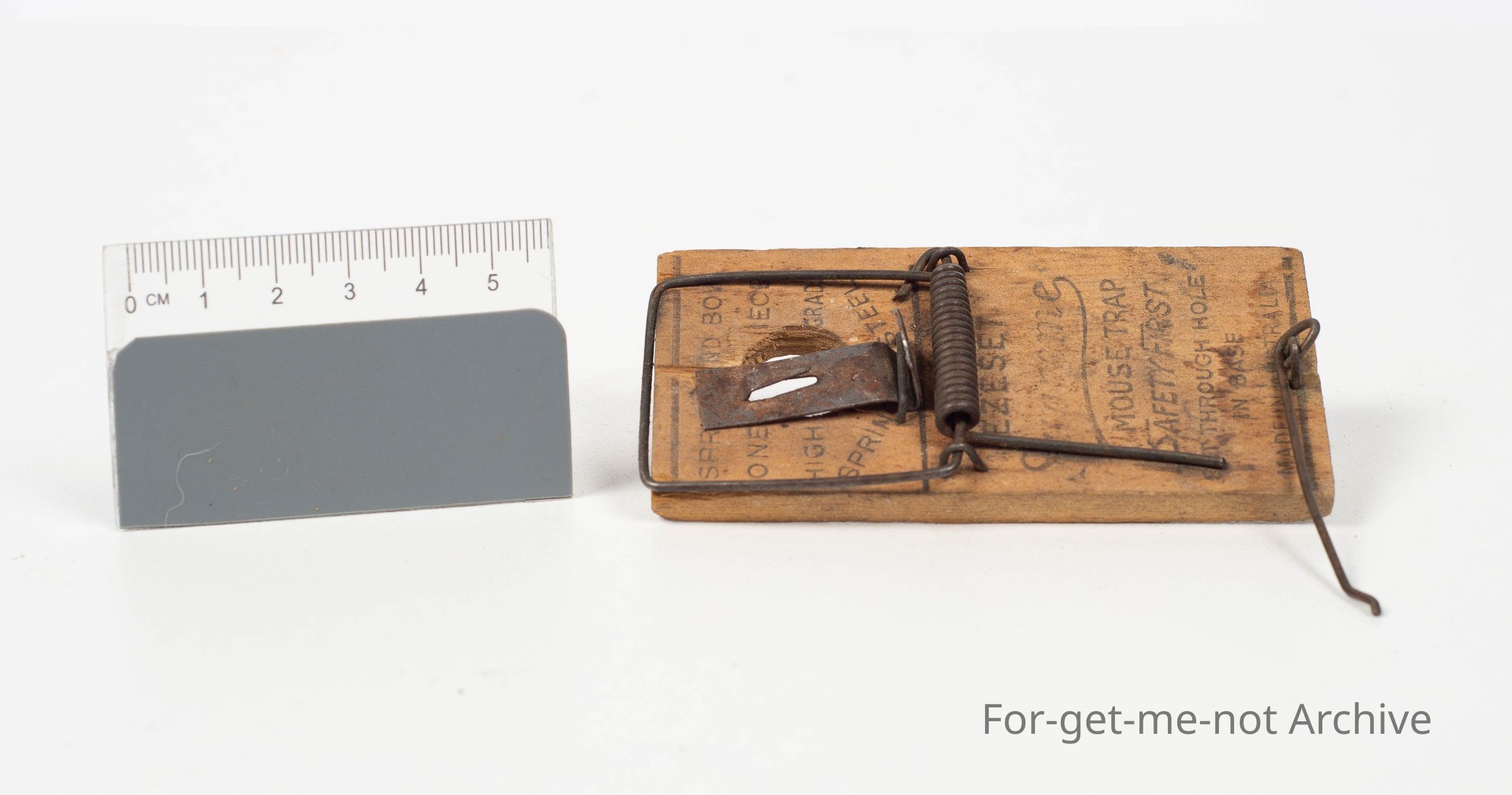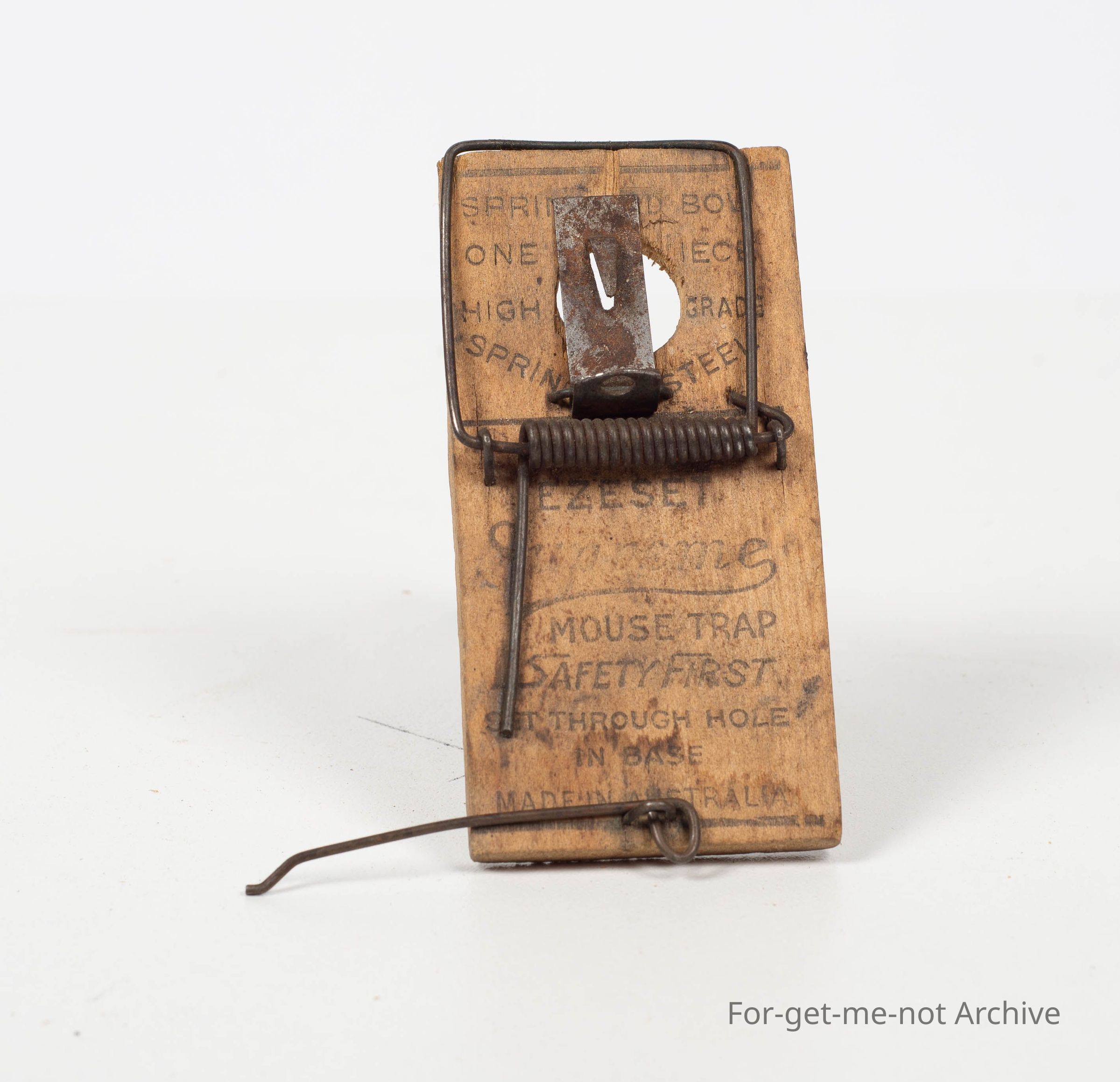 Wooden base mousetrap. Stamped: 'Supreme Easy Set. Safety First'. Made in Australia.