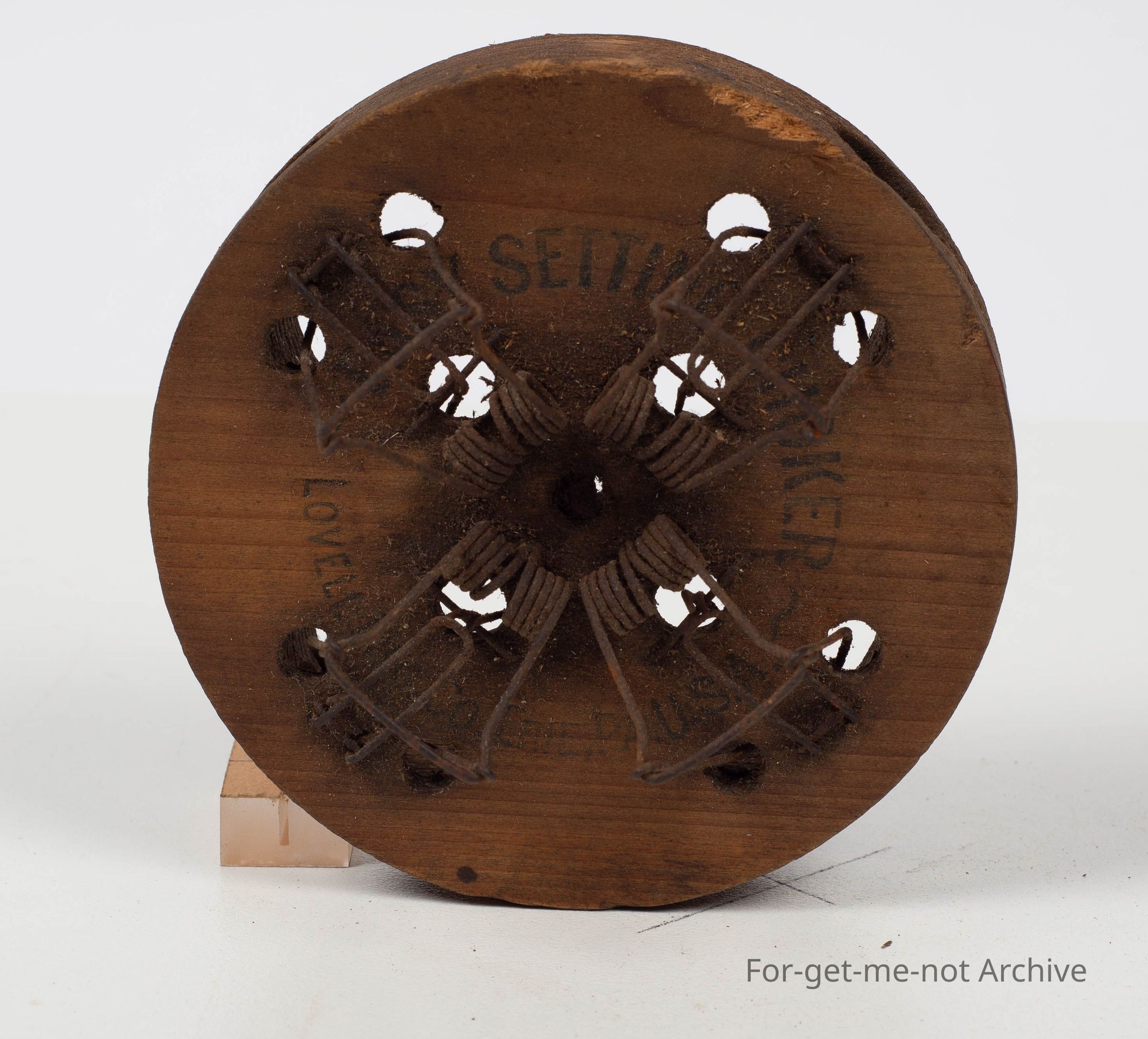 Self-setting choker type trap. Catches 4 mice at once. Possibly American.