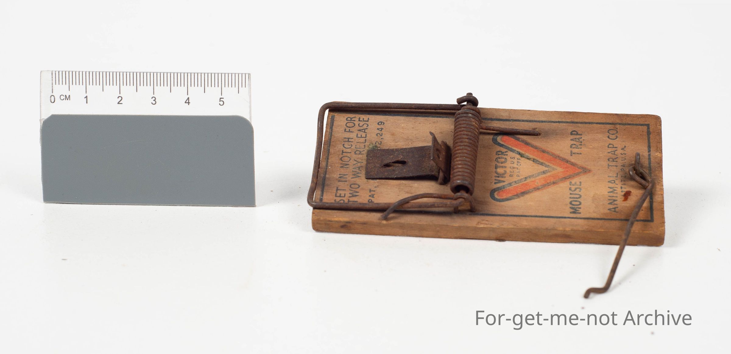 Small wooden base. Made by the Victor Mousetrap Animal Trap Company, USA.