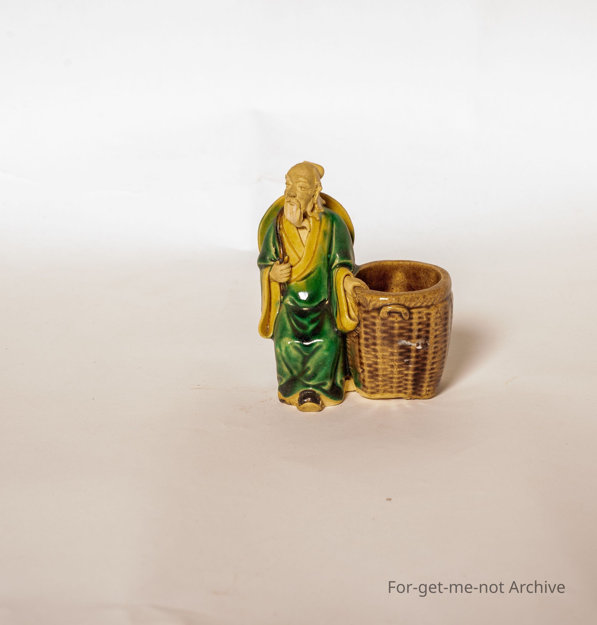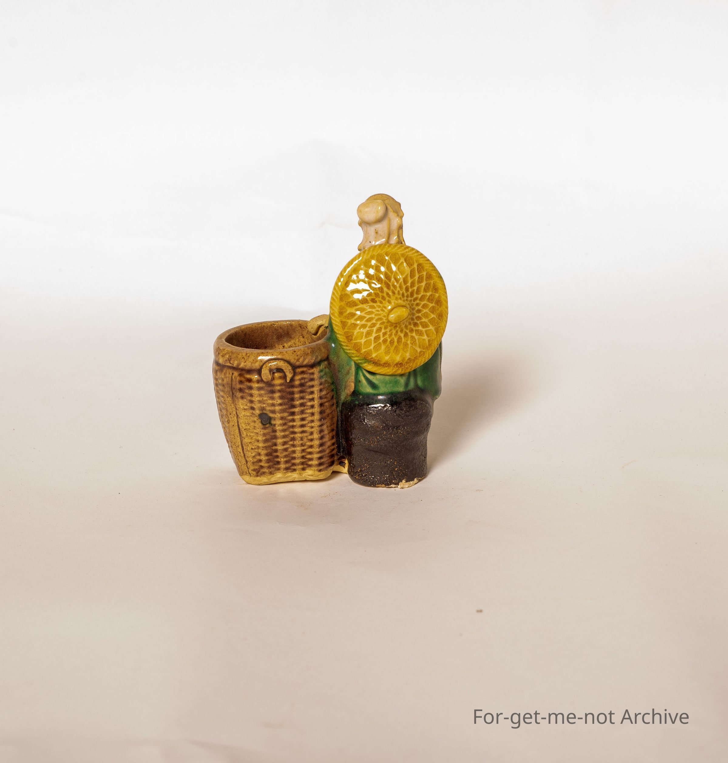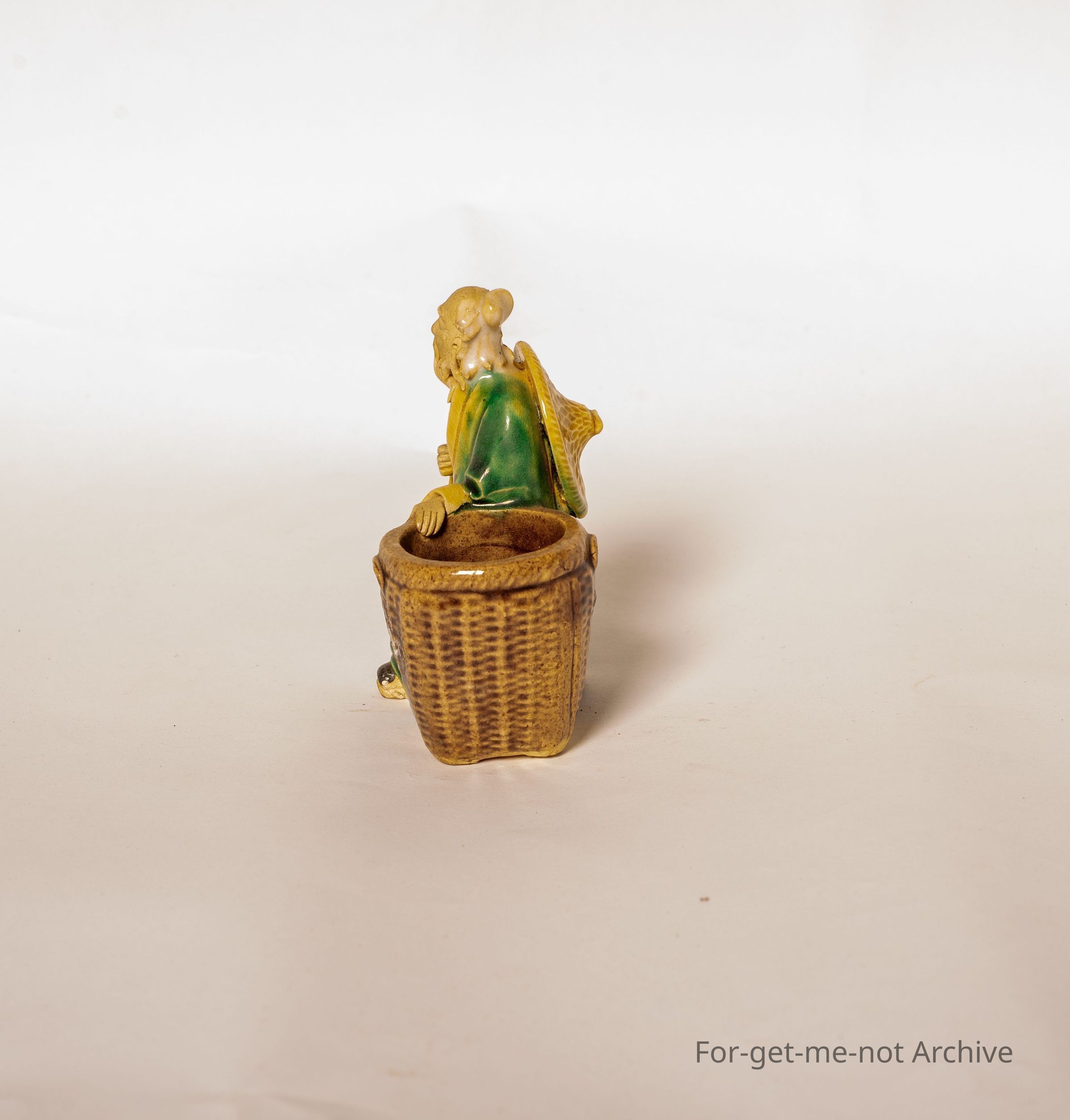Another in the series of Chinese figures from the Chinese collection. This one is sitting down next to a heavy, woven basket, colourful, in good nick,