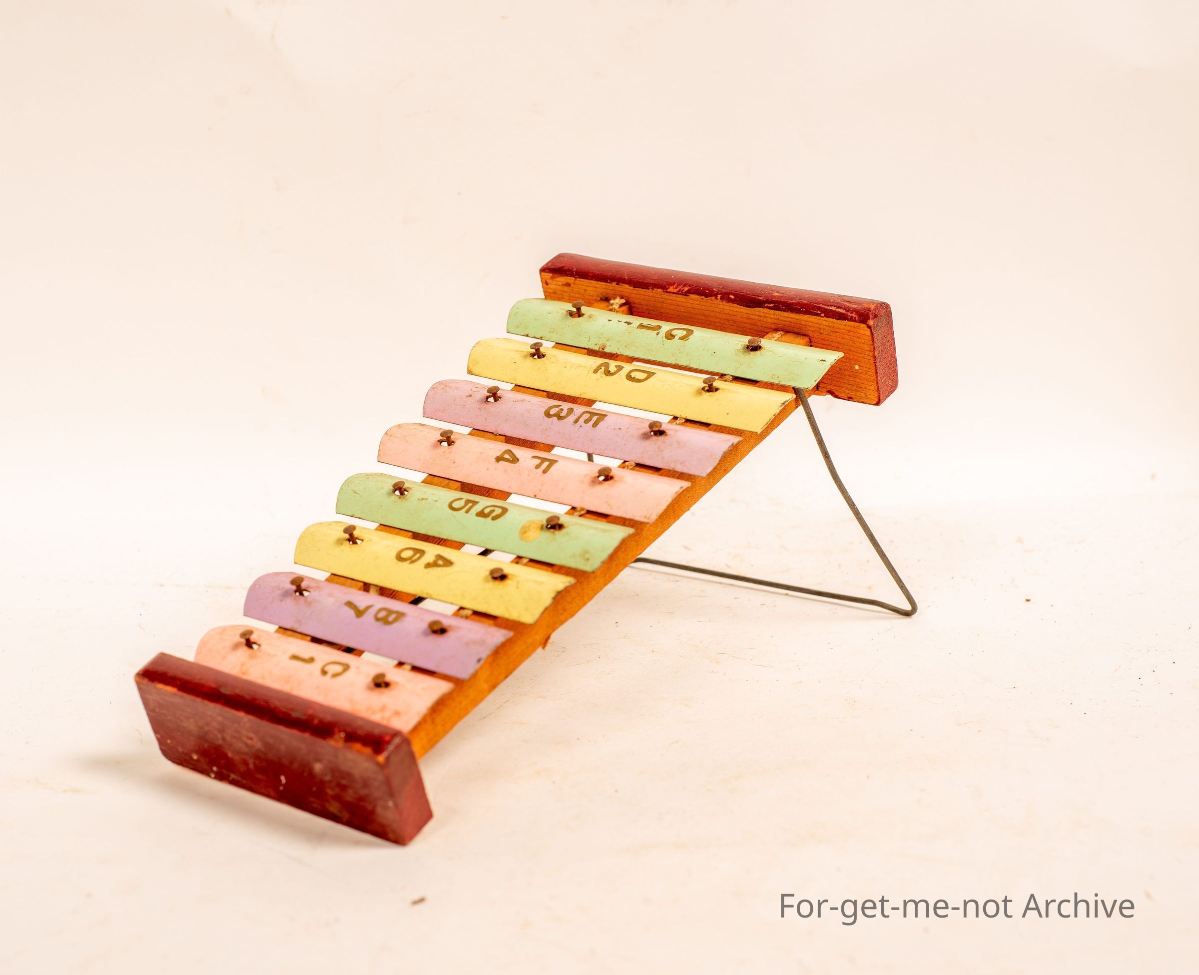 kids this is what they call a xylophone, isn't it? Yeah. Kids Islay phone with all the musical breakdown of numbers and tunes would have had a small handled piece with a knob on it to play it.Collection