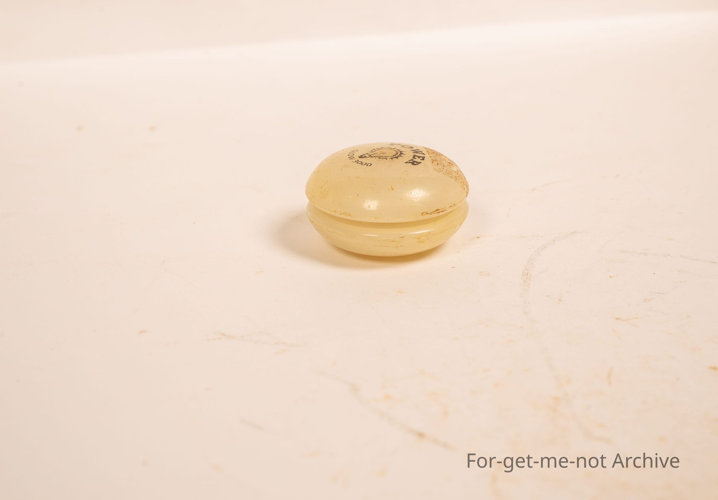 is a yoyo. Called Globe with advertising for a light bulb. Glow Power, Very light wishy washy colour.