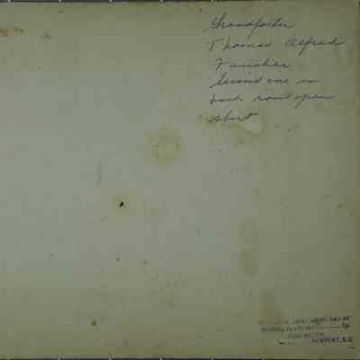 "Grandfather Thomas Alfred Faucher second one in back row open shirt" Studio stamp John Ruger, Newport, RI
