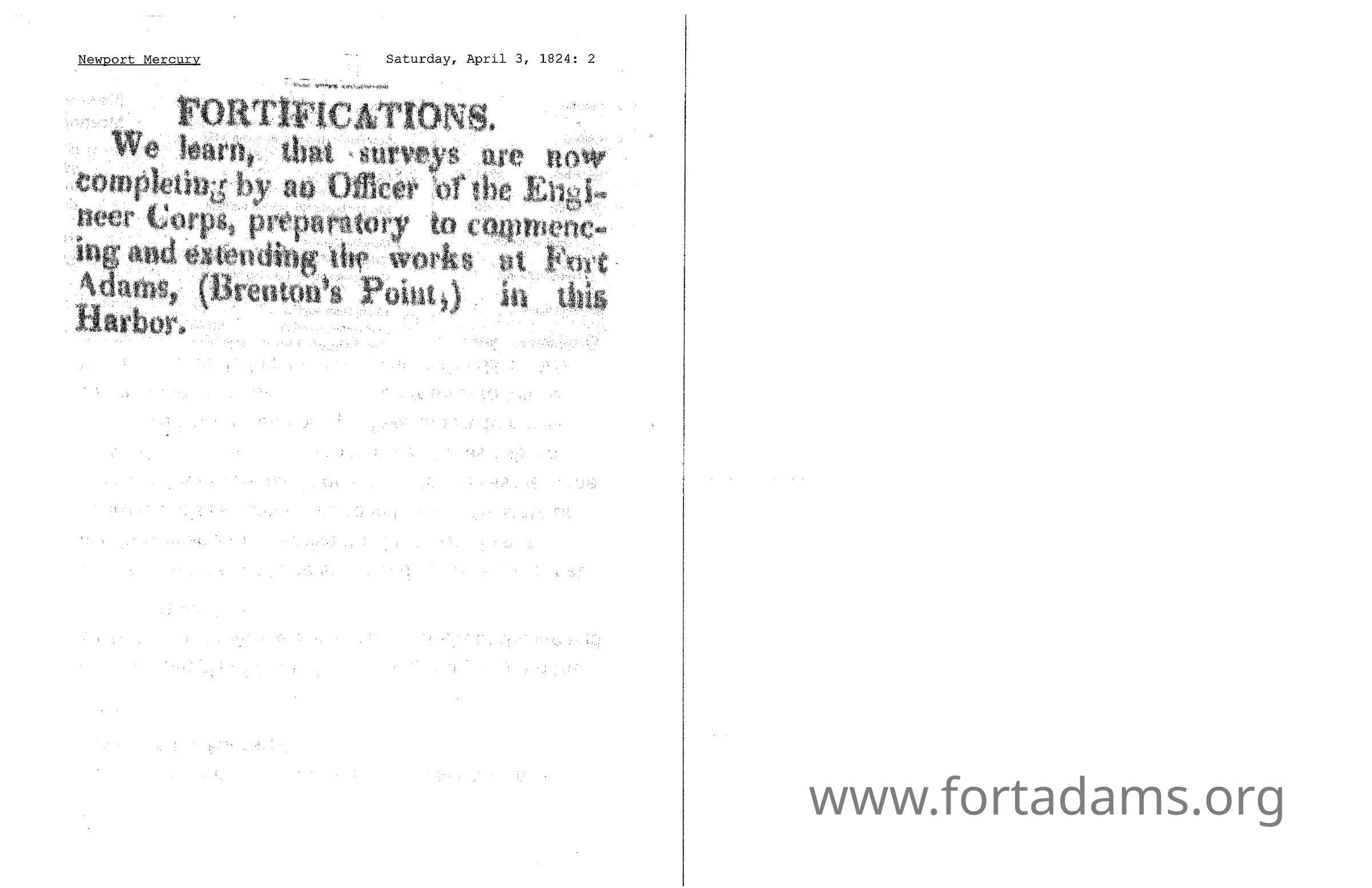 1824 Newport Mercury Surveys at Brenton Point