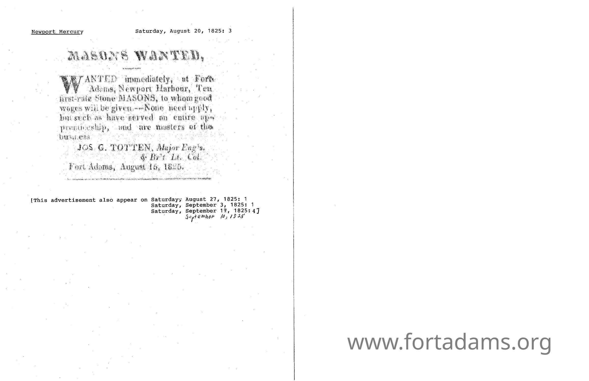 1825 NM Masons Wanted