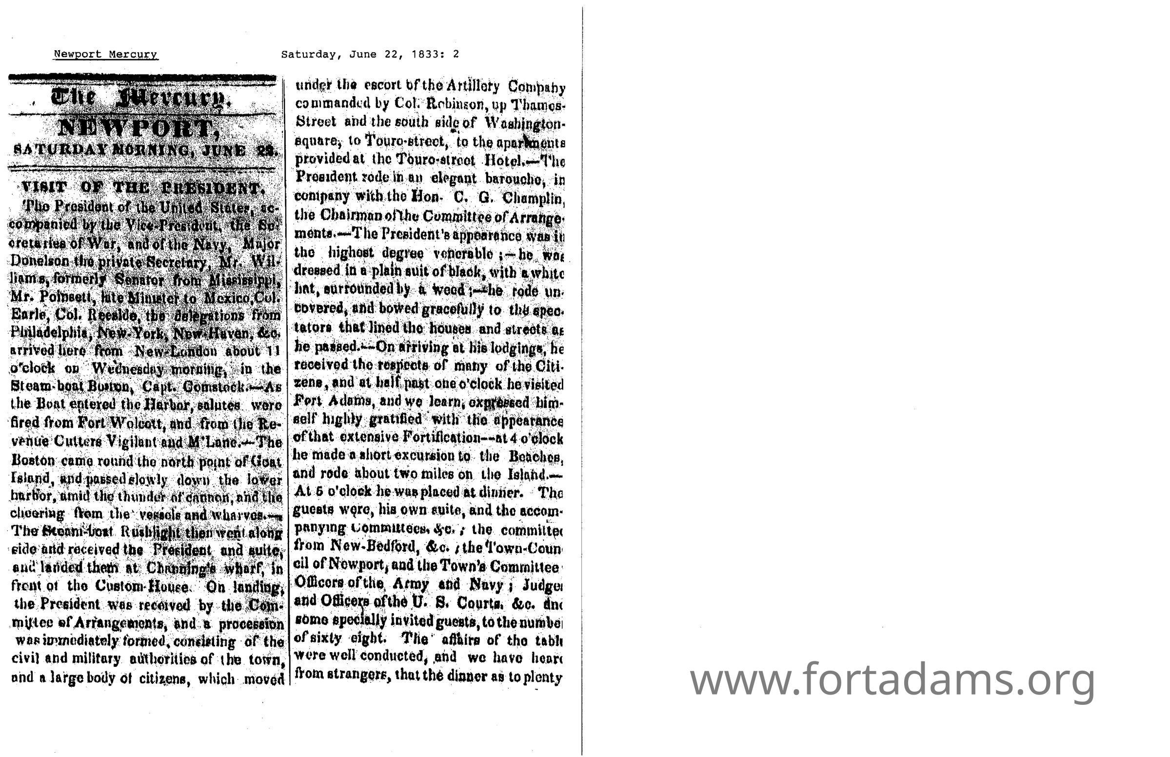 1833 NM Visit of President Jackson
