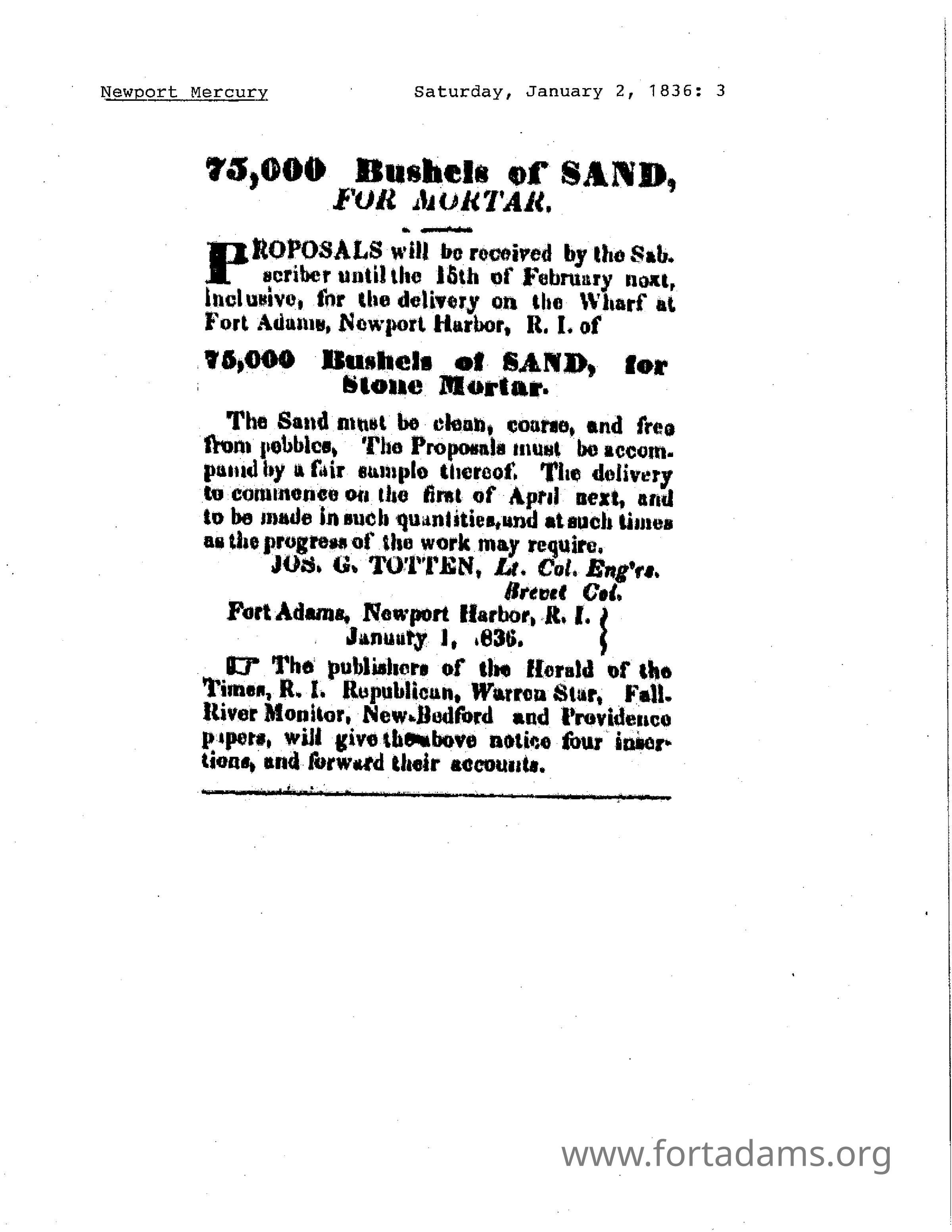 1836 NM 75,000 Bushels of Sand