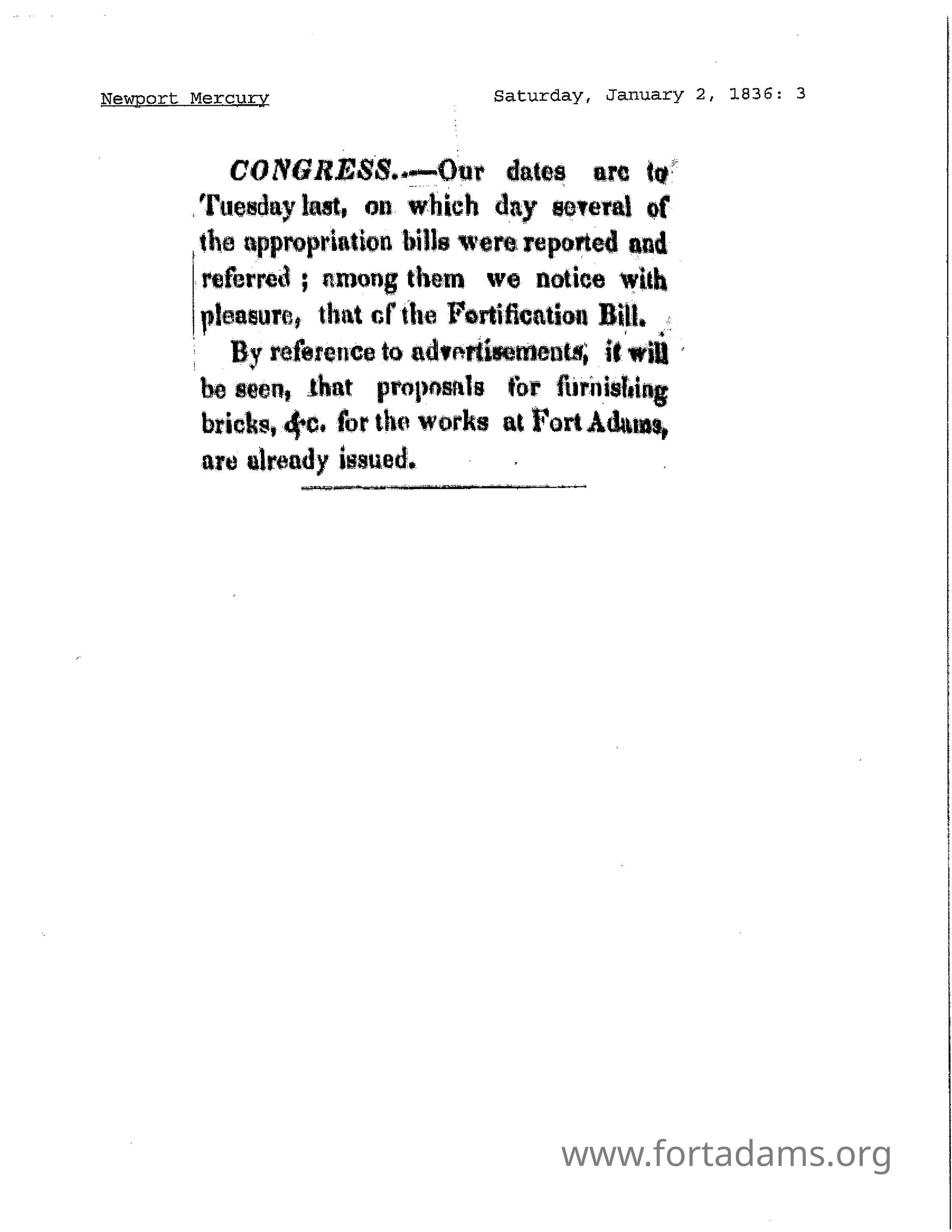 1836 NM Fortification Bill Appropriations