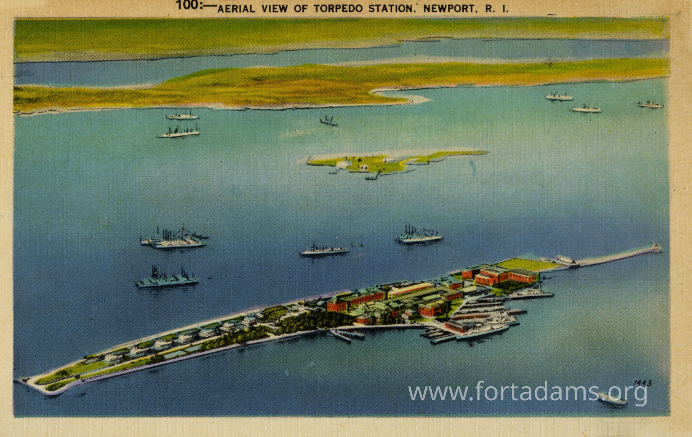 The Torpedo Station was established on Goat Island, in the Harbor of Newport, in the summer of 1869, occupation of the island by the Navy Department being authorized by the Secretary of War on July 29th of that year. Between 1871 and 1874, the Station experienced its greatest material expansion, the storehouse, the machine shop, the cottages for officers, the chemical laboratory and the electrical laboratory being erected, and the old barracks rebuilt into quarters and officers for the Inspector in charge. Its fame, importance and contributions made during its 83 years are legendary in the Rhode Island area. A major economic and military installation in Rhode Island from the day of its establishment, the Torpedo Station reached its peak importance in World War II when more than 13,000 employees worked around the clock to manufacture 80 percent of the torpedoes used by the United States during the war. The station was the largest single industry ever operated in Rhode Island. In 1951, the Torpedo Station was permanently disestablished.