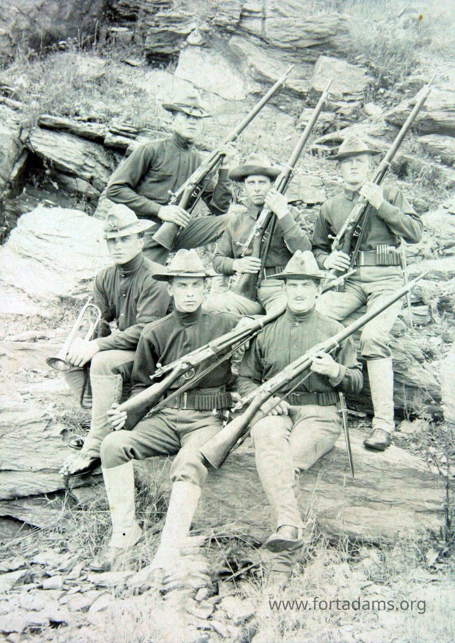 6 men; 5 with rifles and 1 with bugle