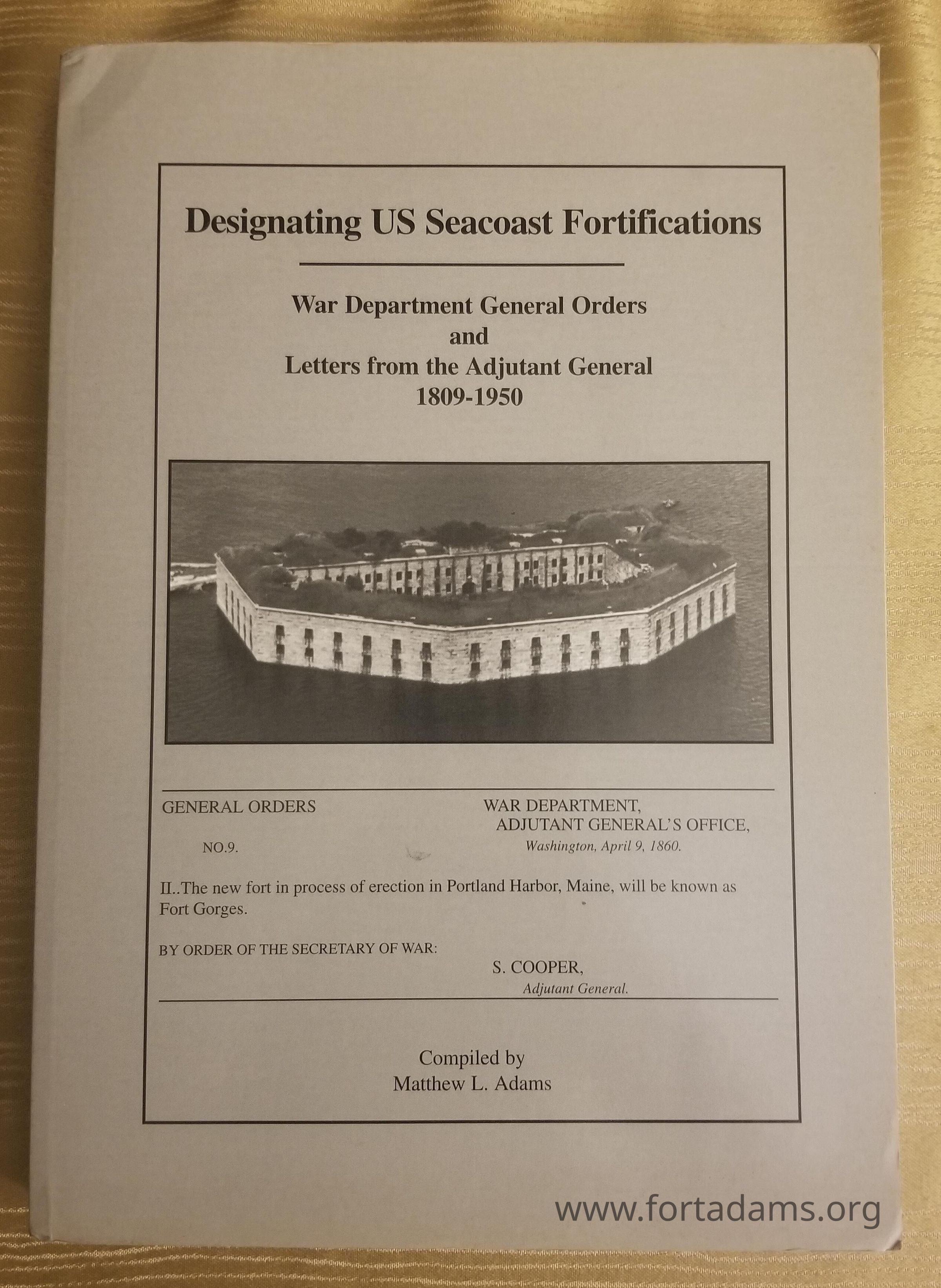 Designating US Seacoast Fortifications War Department General Orders and Letters from the Adutant General 1809-1950
