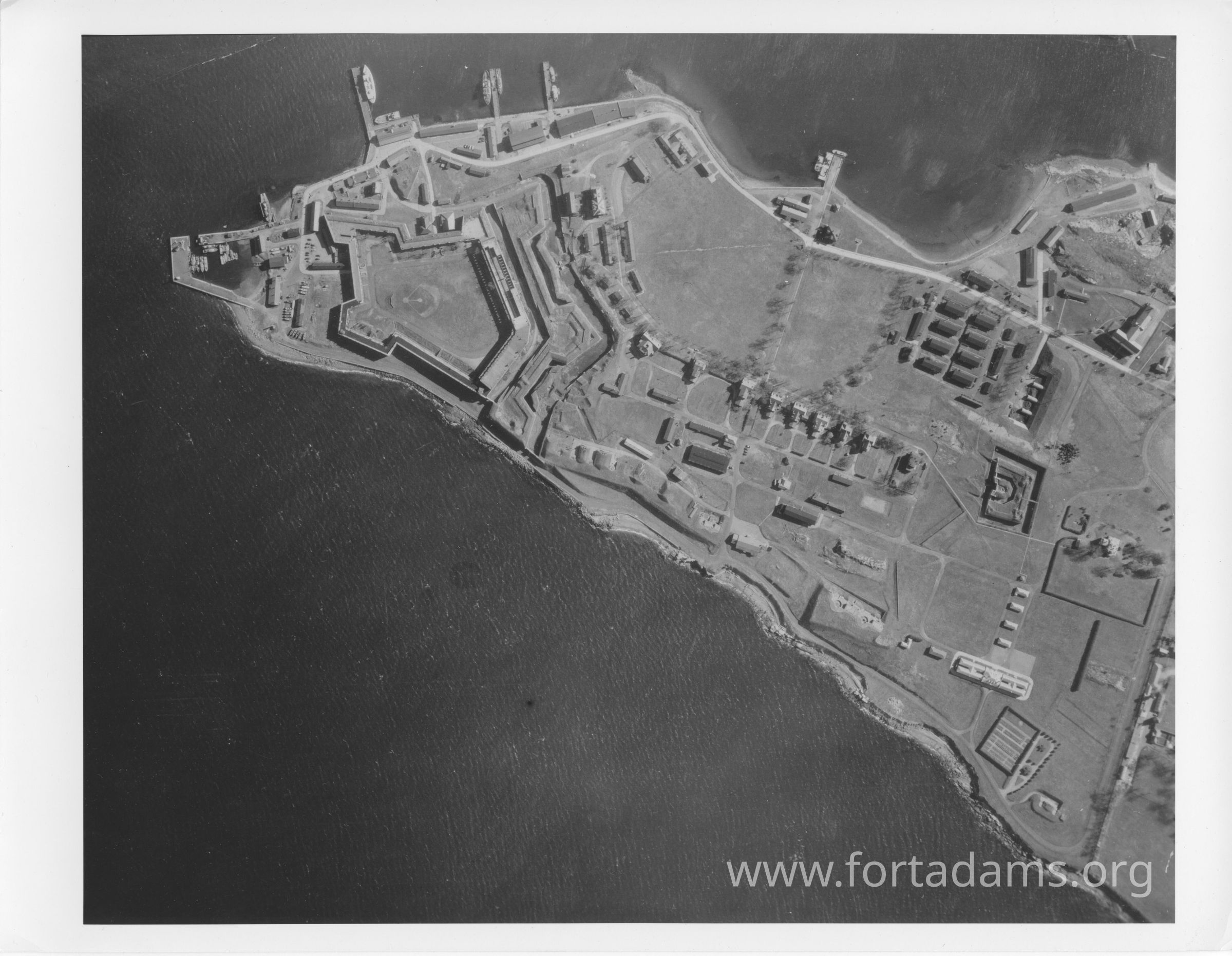 Aerial view of peninsula from Fort (left) to Cemetery (right)